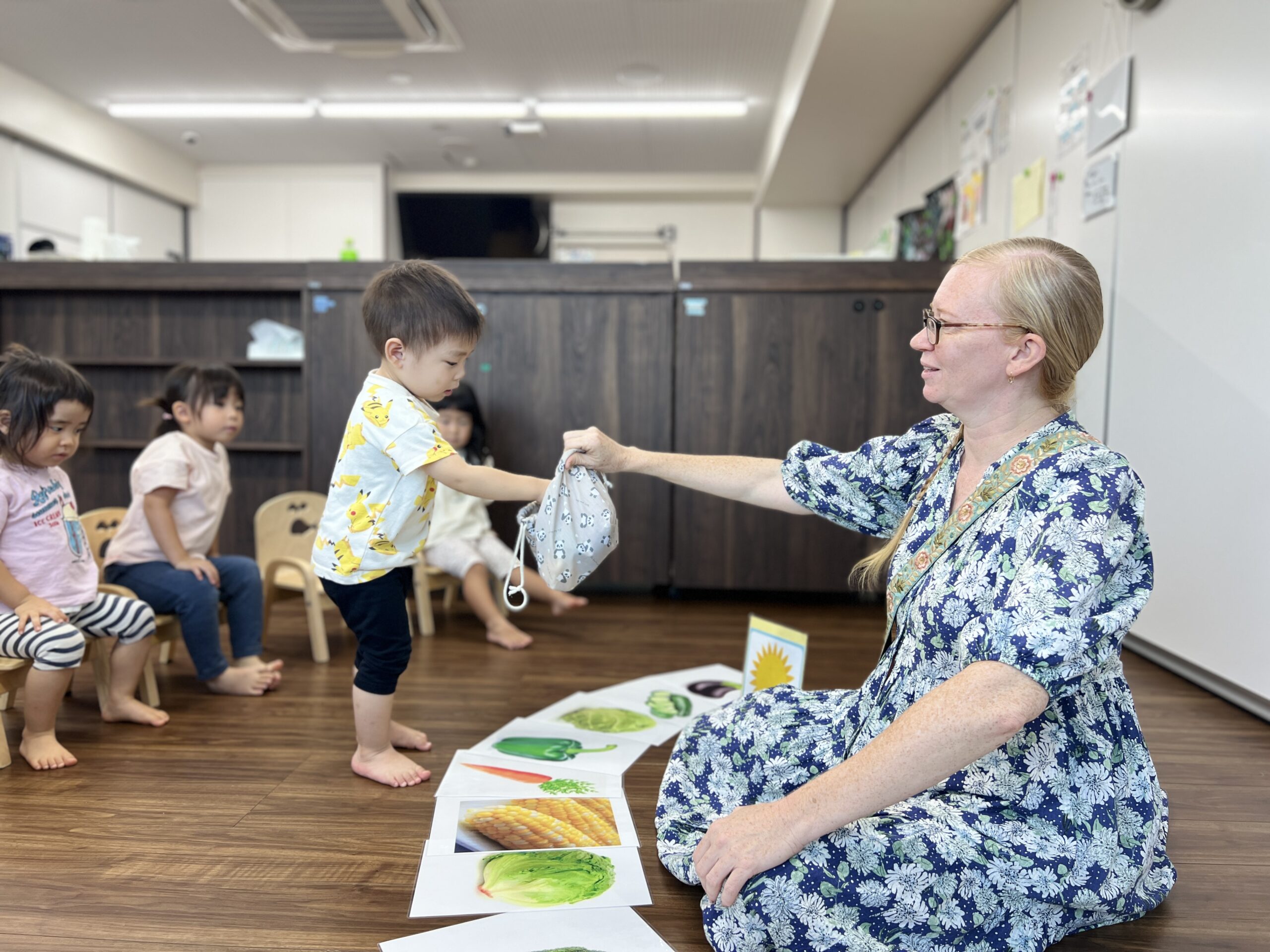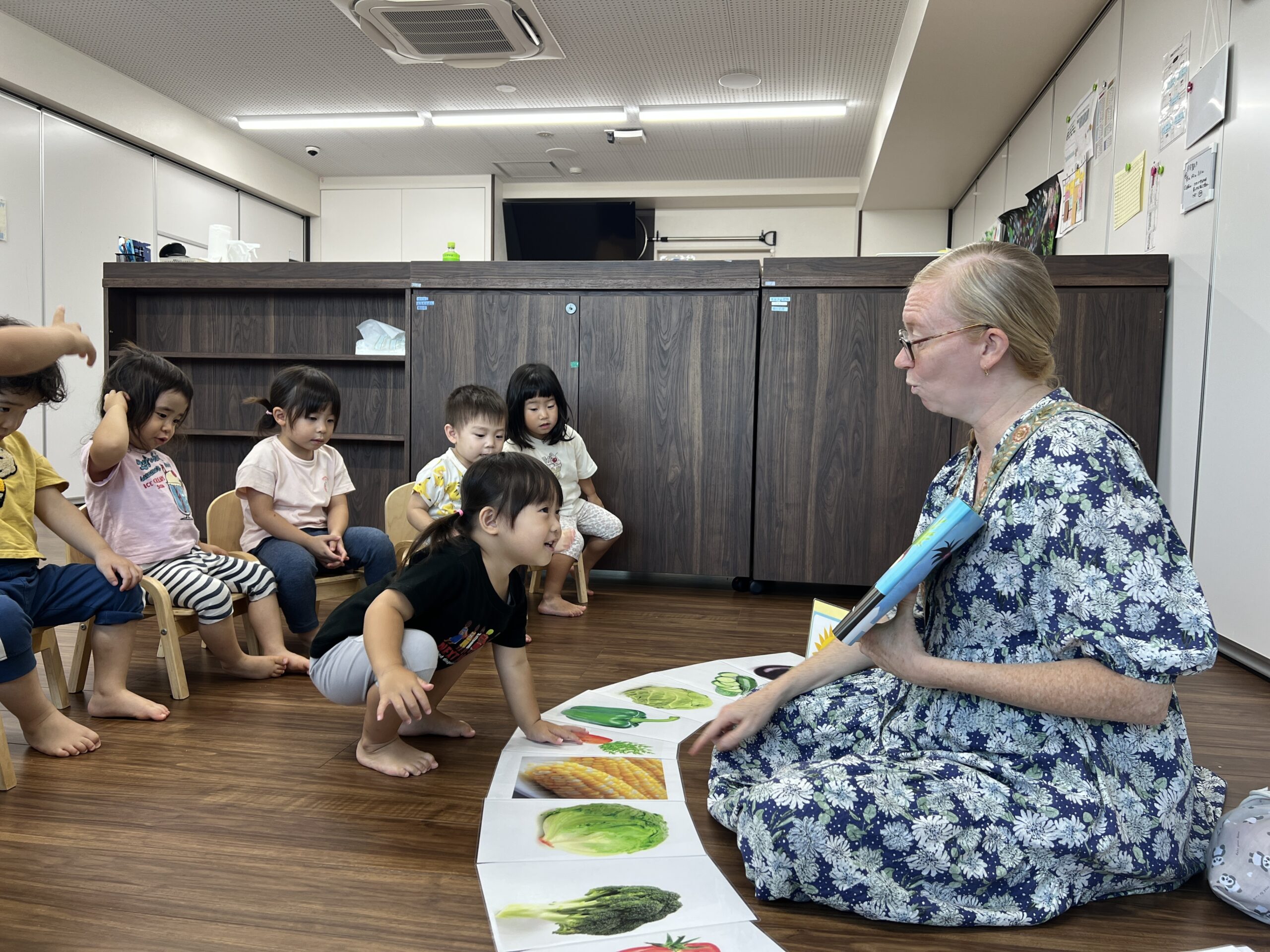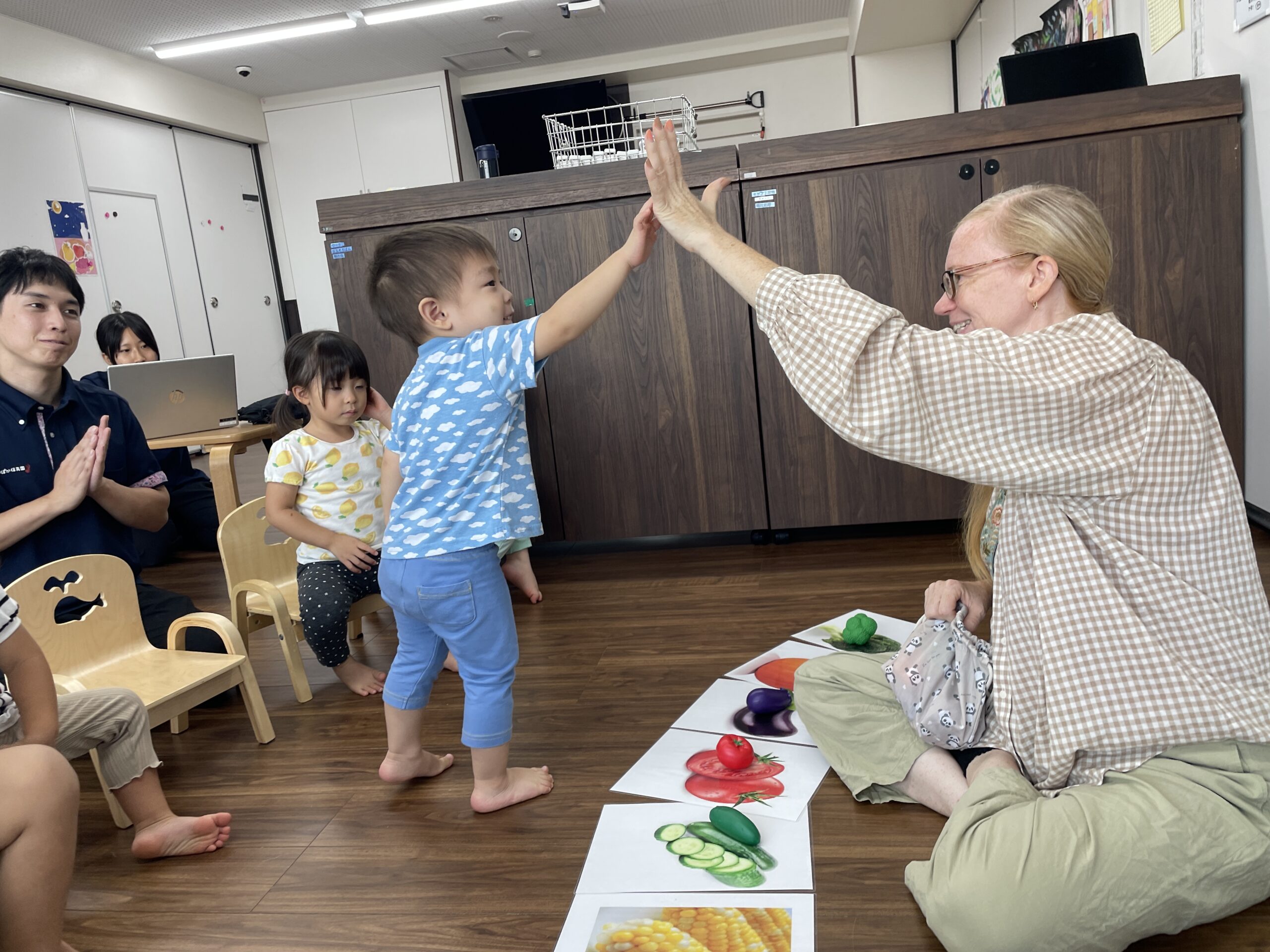 野菜の名前を英語で話せて、先生とハイタッチ☆