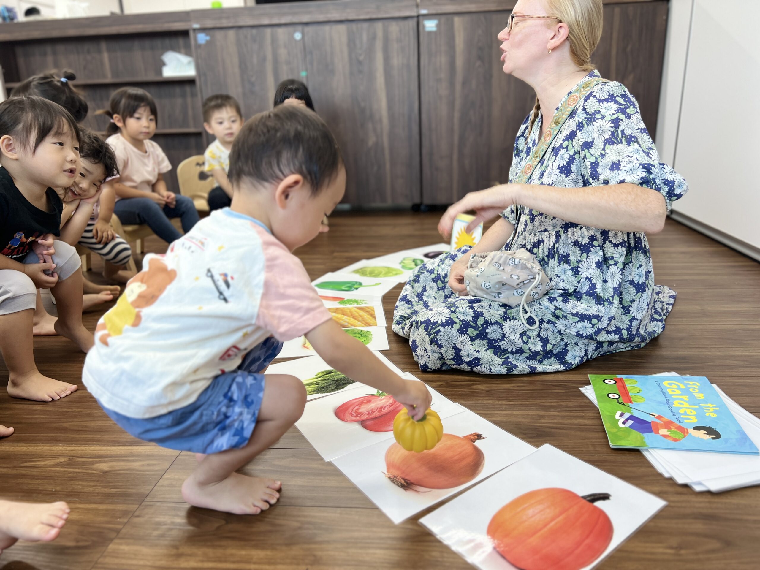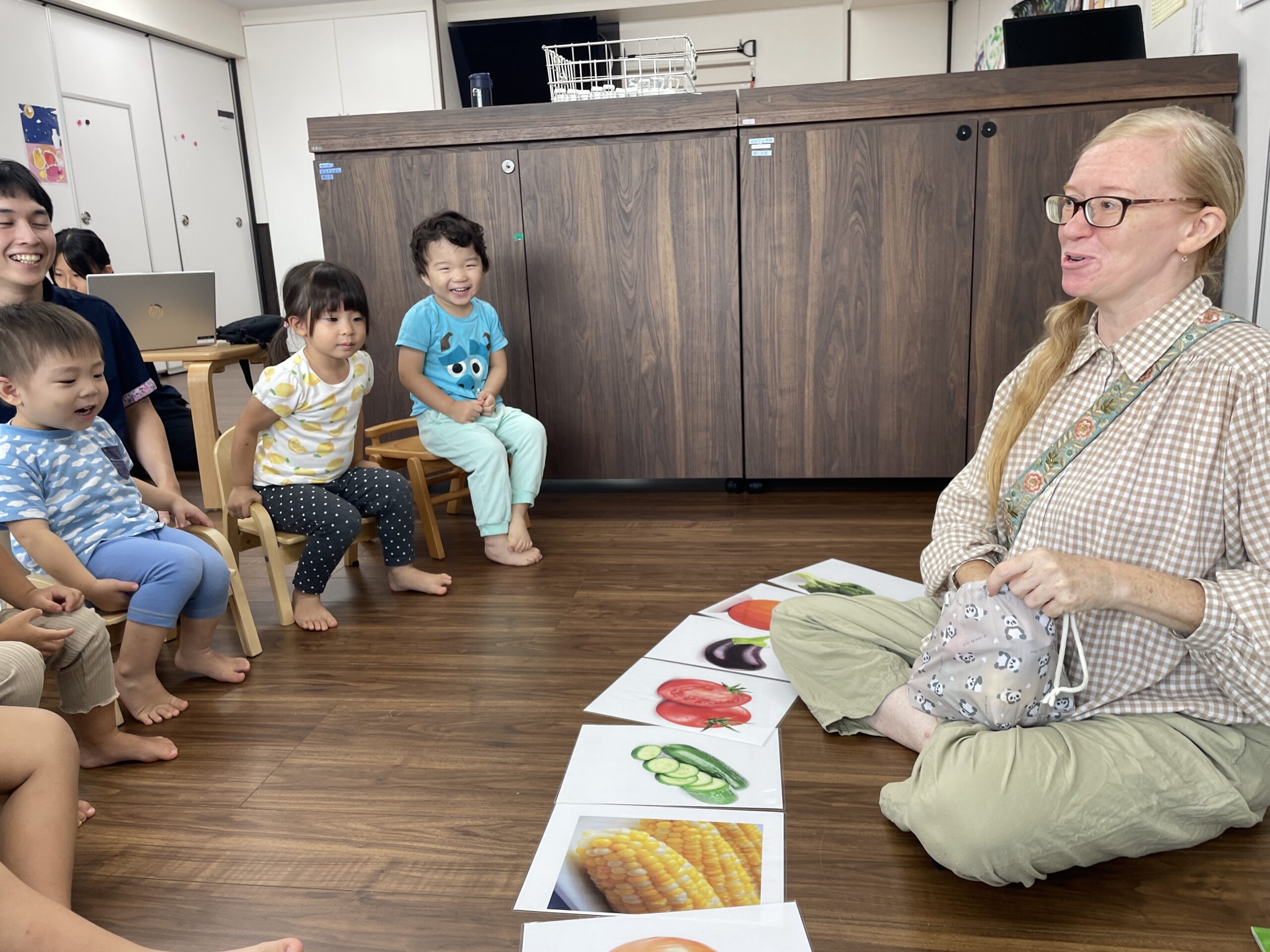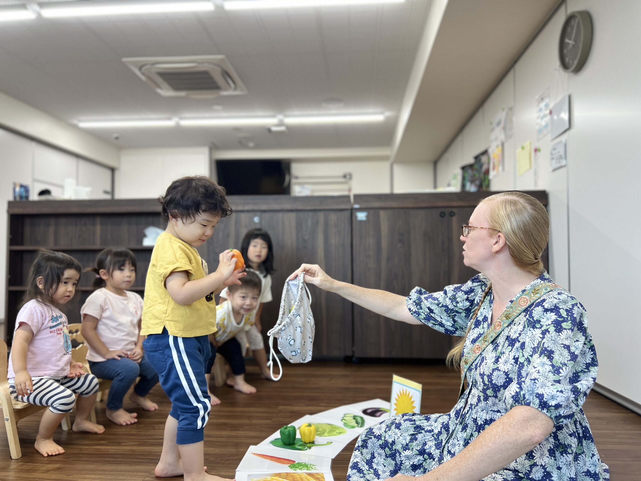 野菜の名前を英語で話せて、先生とハイタッチ☆