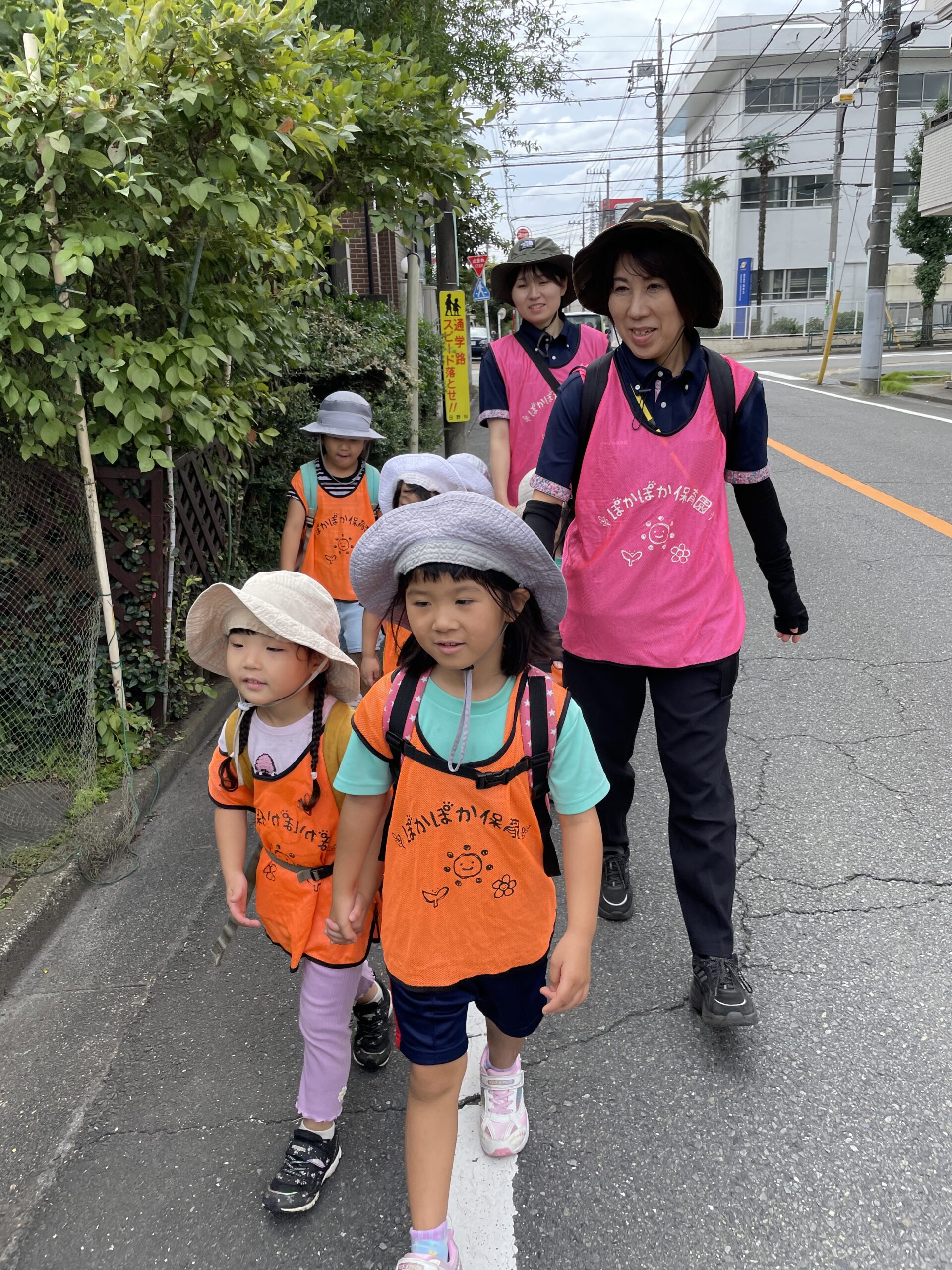 公園へ行く途中は何をして遊ぼうか、お話しに夢中です♪