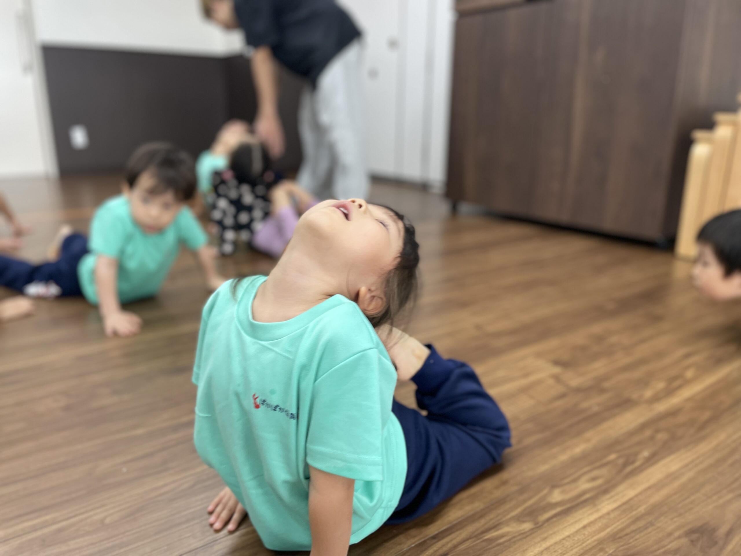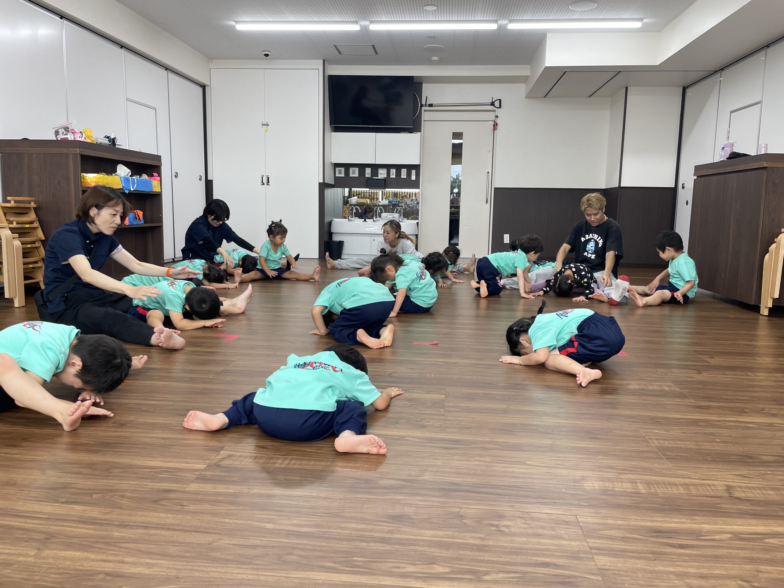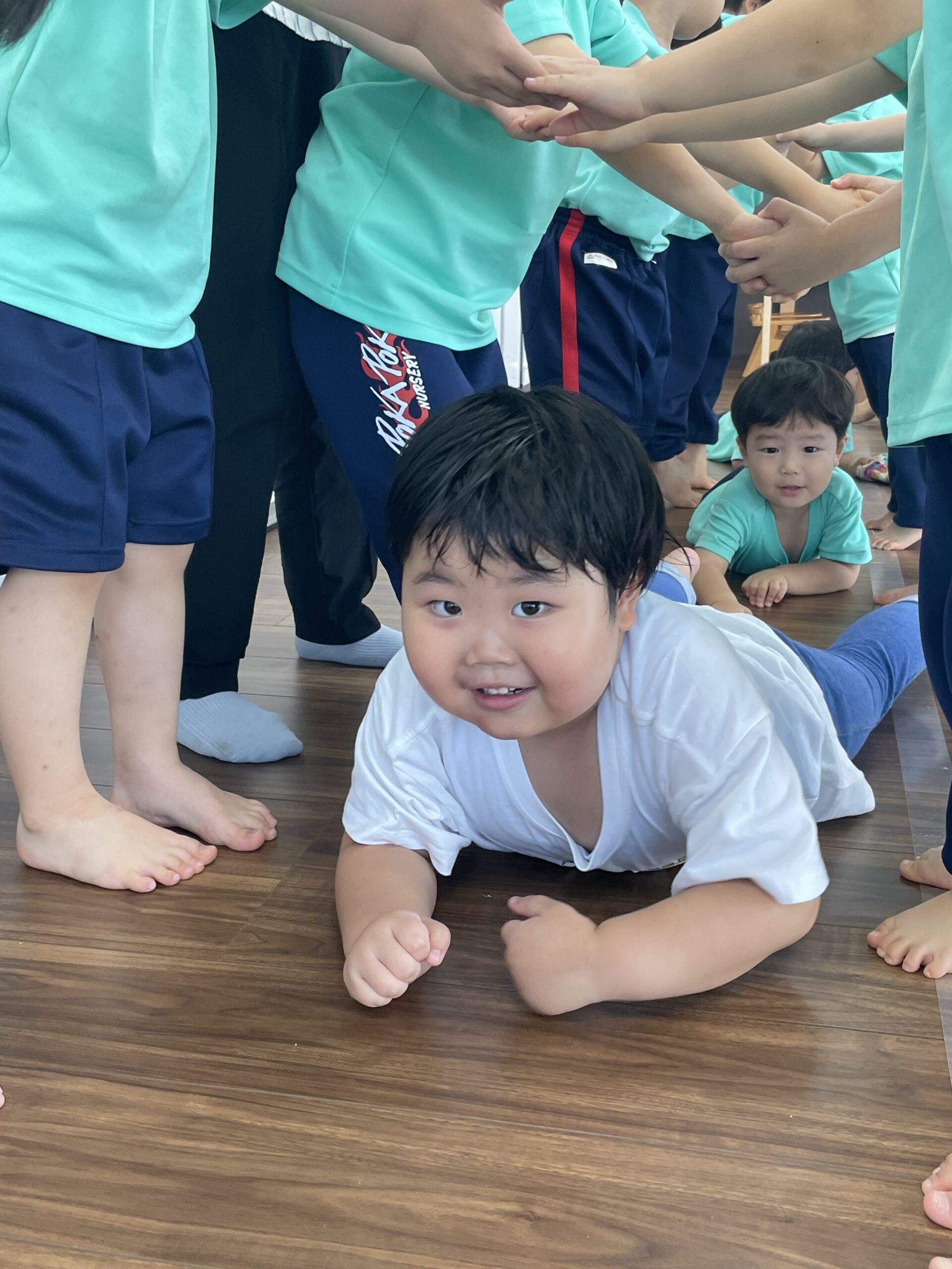 ここでのペアーは先生に言われなくても自分でお友達を探して動いていました。さすが3歳さん♡自分から動くことが出来ているのはきっと安田式運動から学んでいることなんだろうなーと感心していた先生でした(笑)