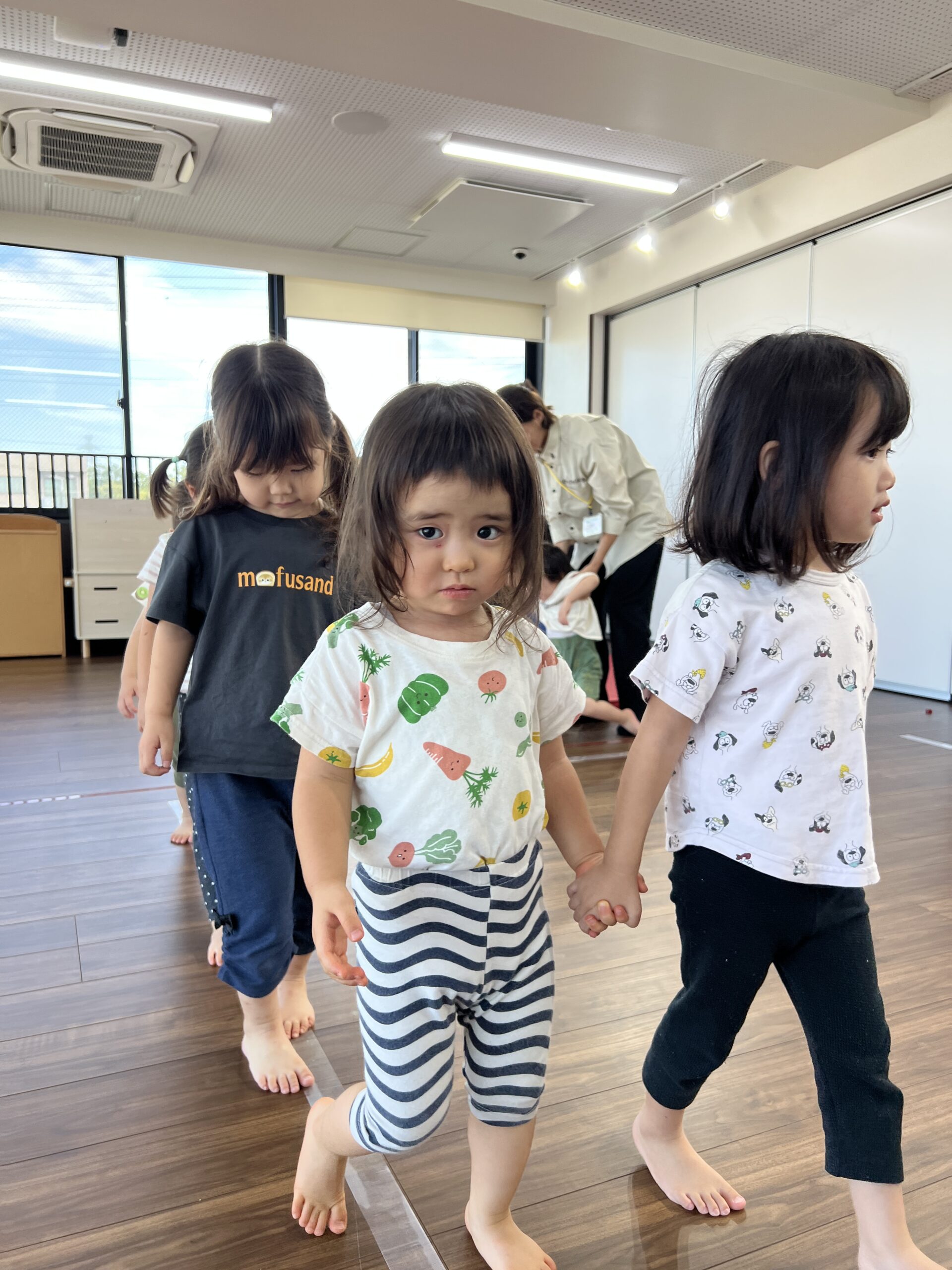 リトミックでは、仲良くおさんぽに出かけると・・・