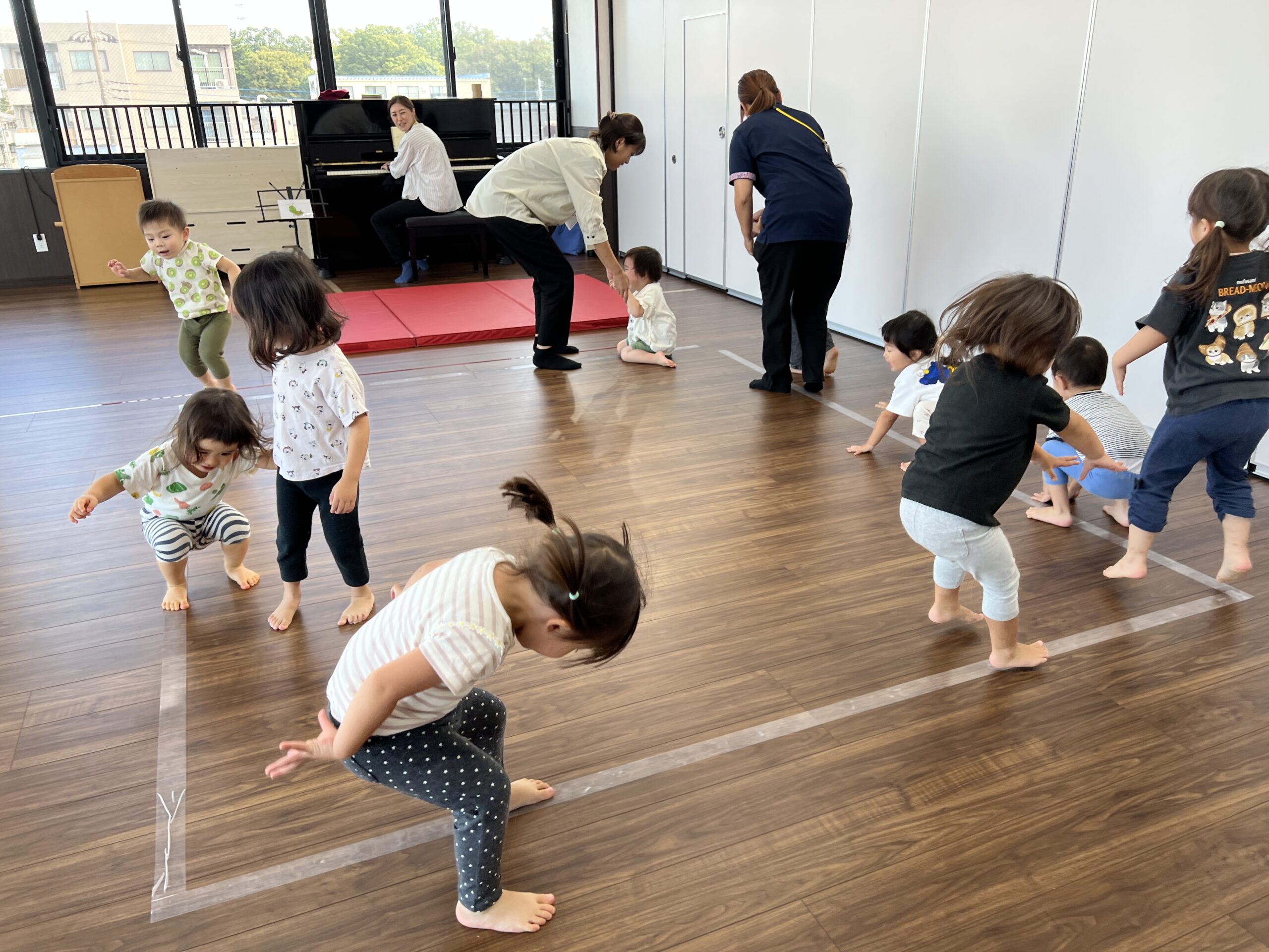 リトミックでは、みんなが「音楽」というわくの中で自由に様々に身体を動かすことで、