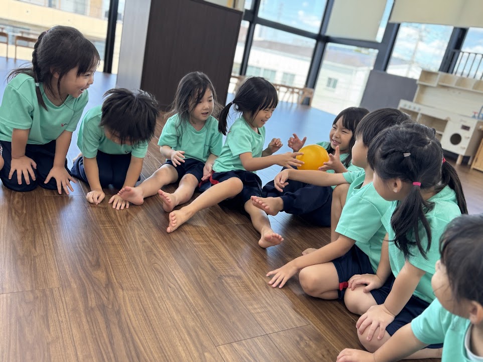 4、5歳児クラスでは曲に合わせてボール回しを行いました。
