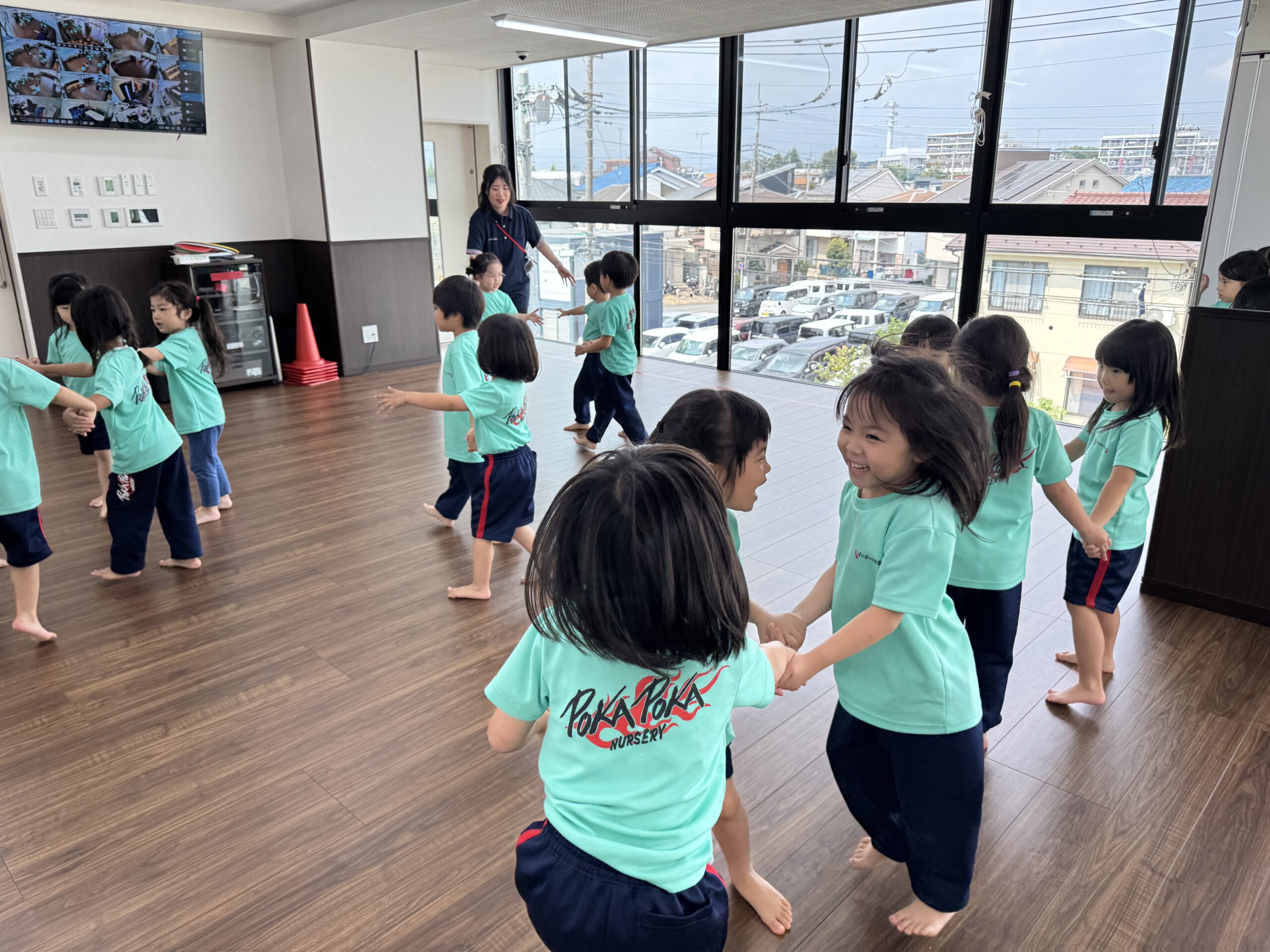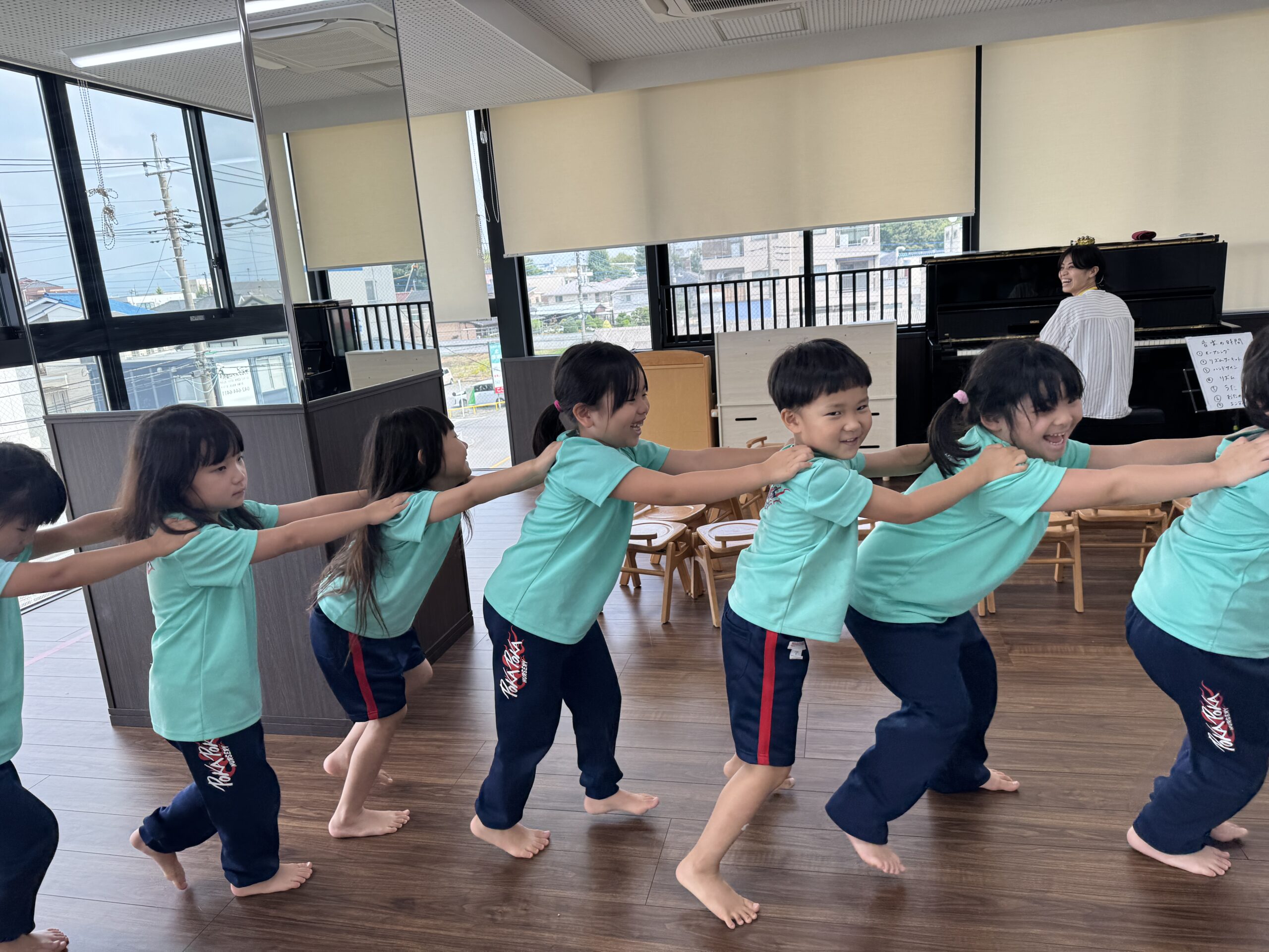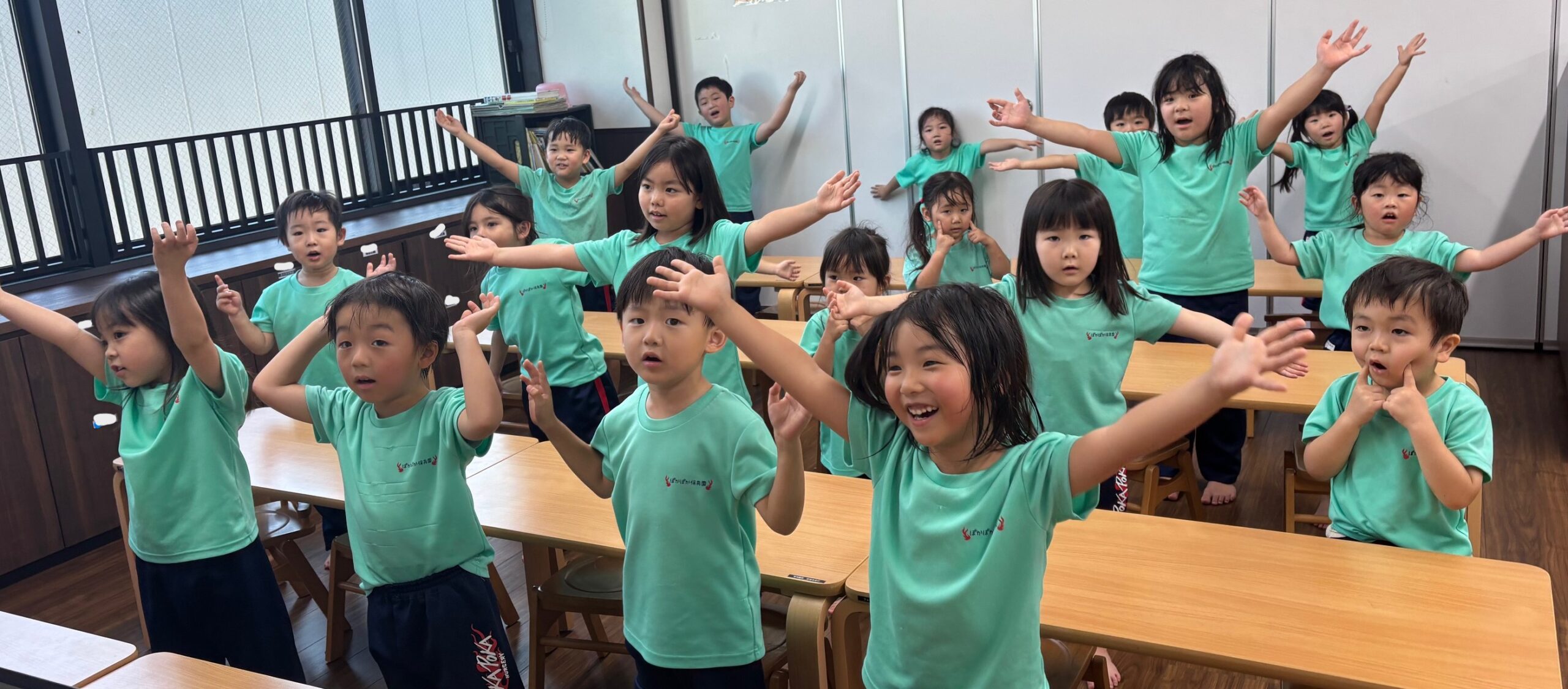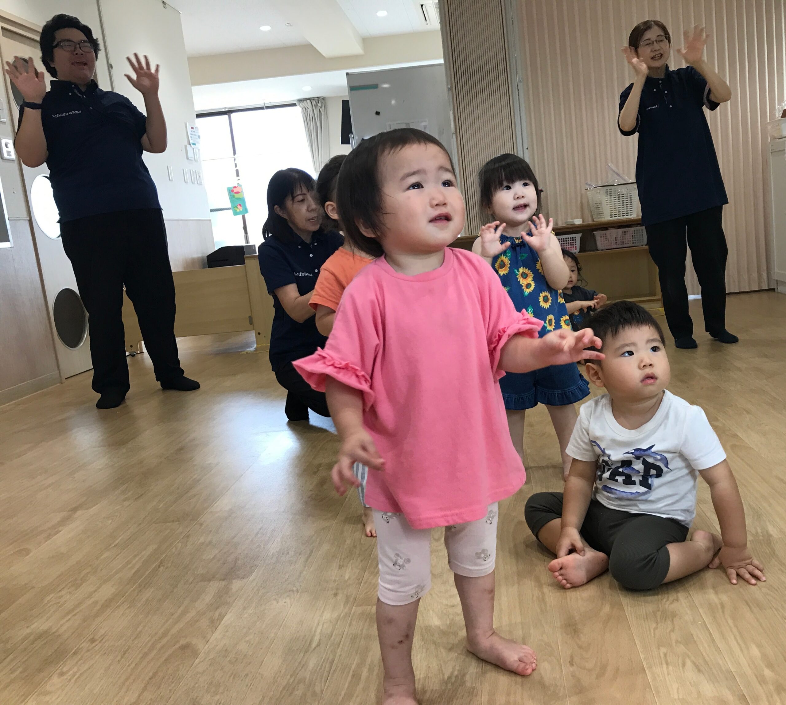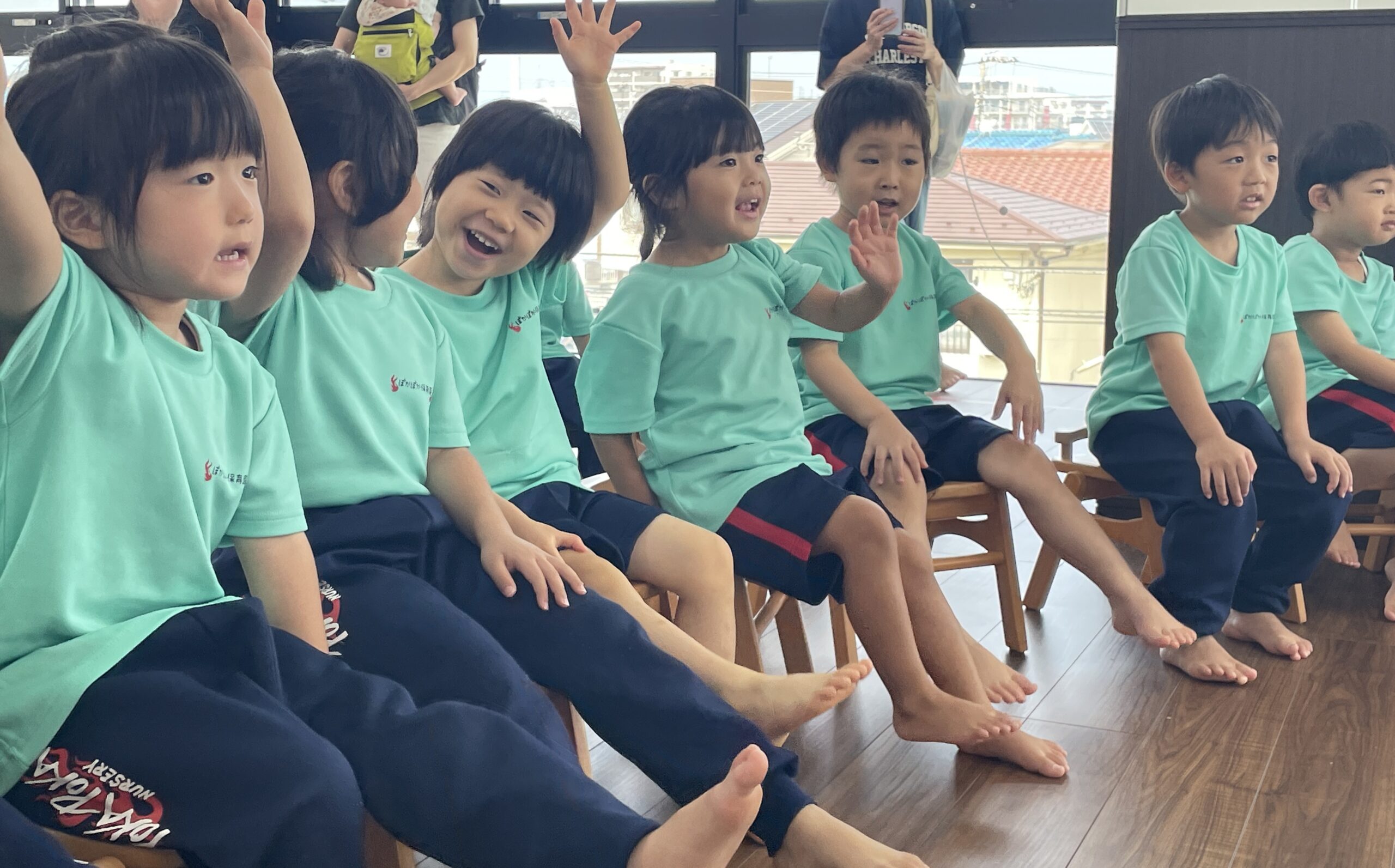 ぽかぽか保育園の子ども達を表現するような歌を、全身で歌っていきました!