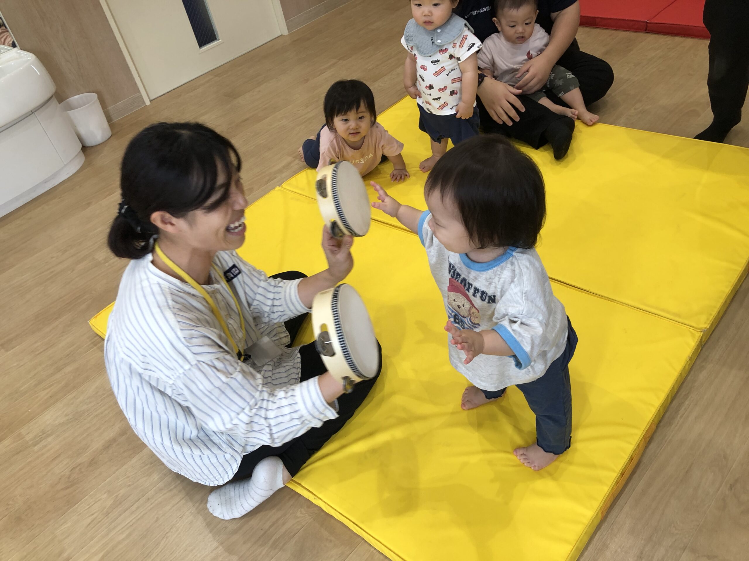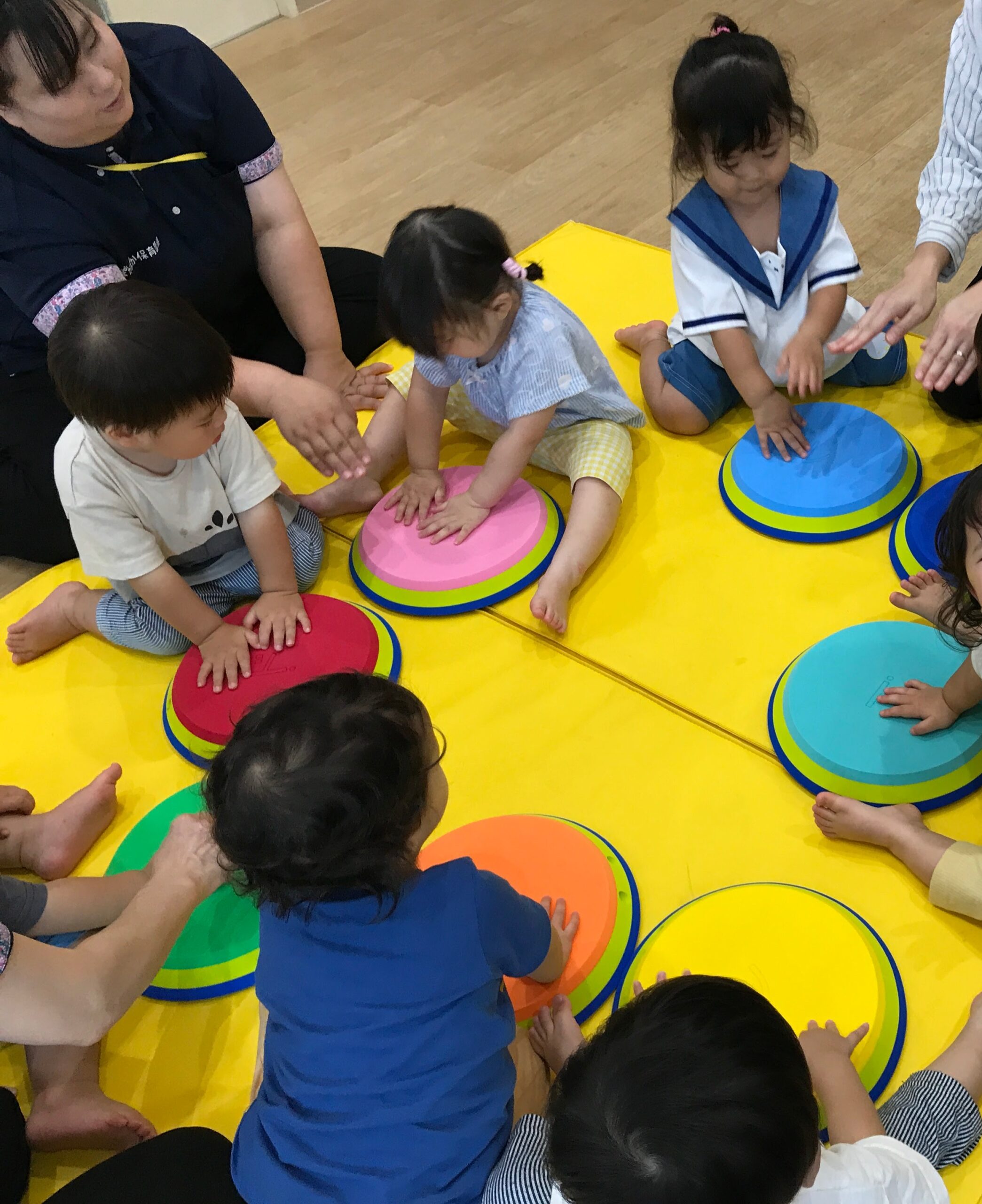 虹組さんでは、ドレミマットを使って、《おおきなたいこ》の合奏に挑戦!
