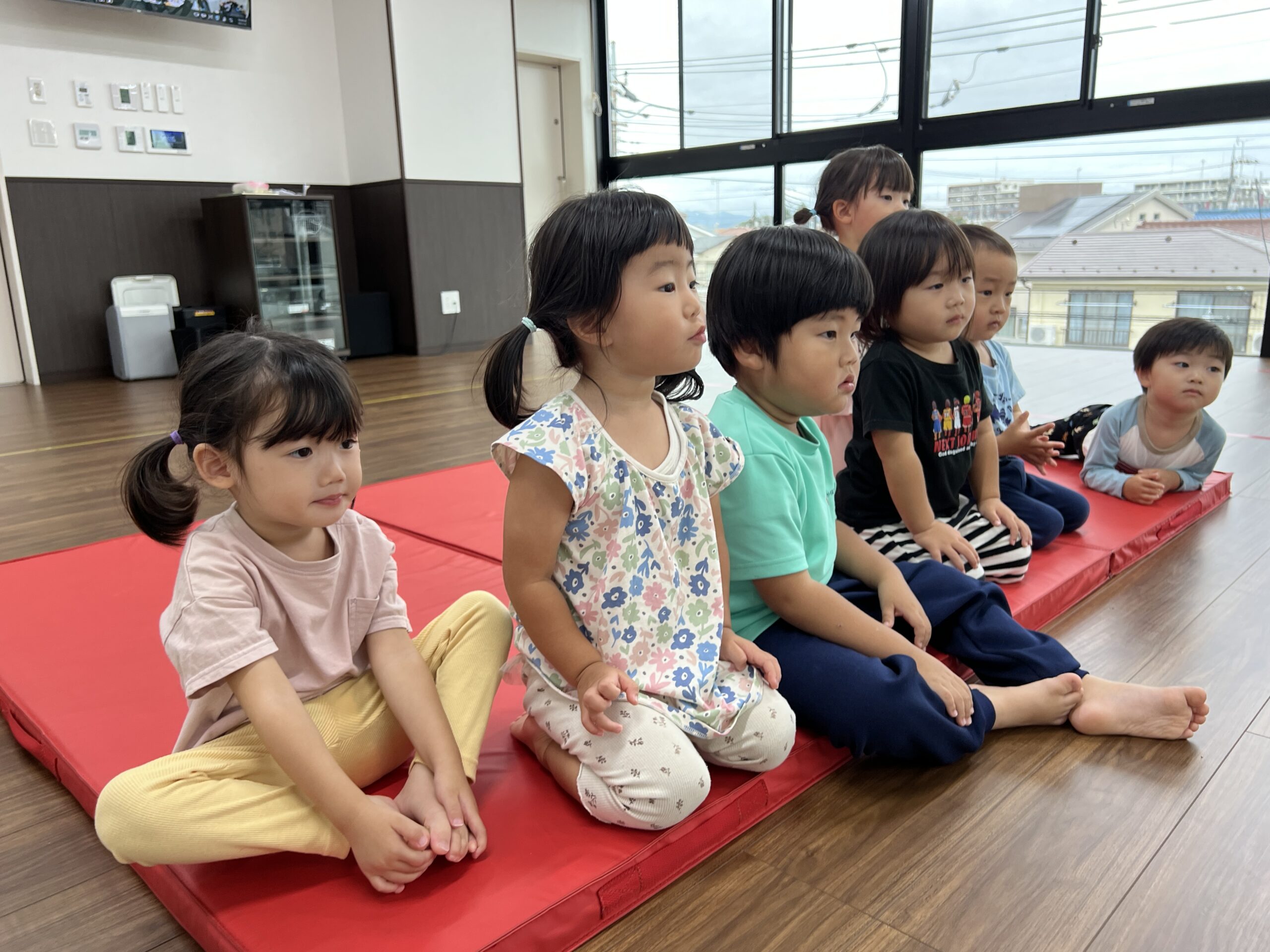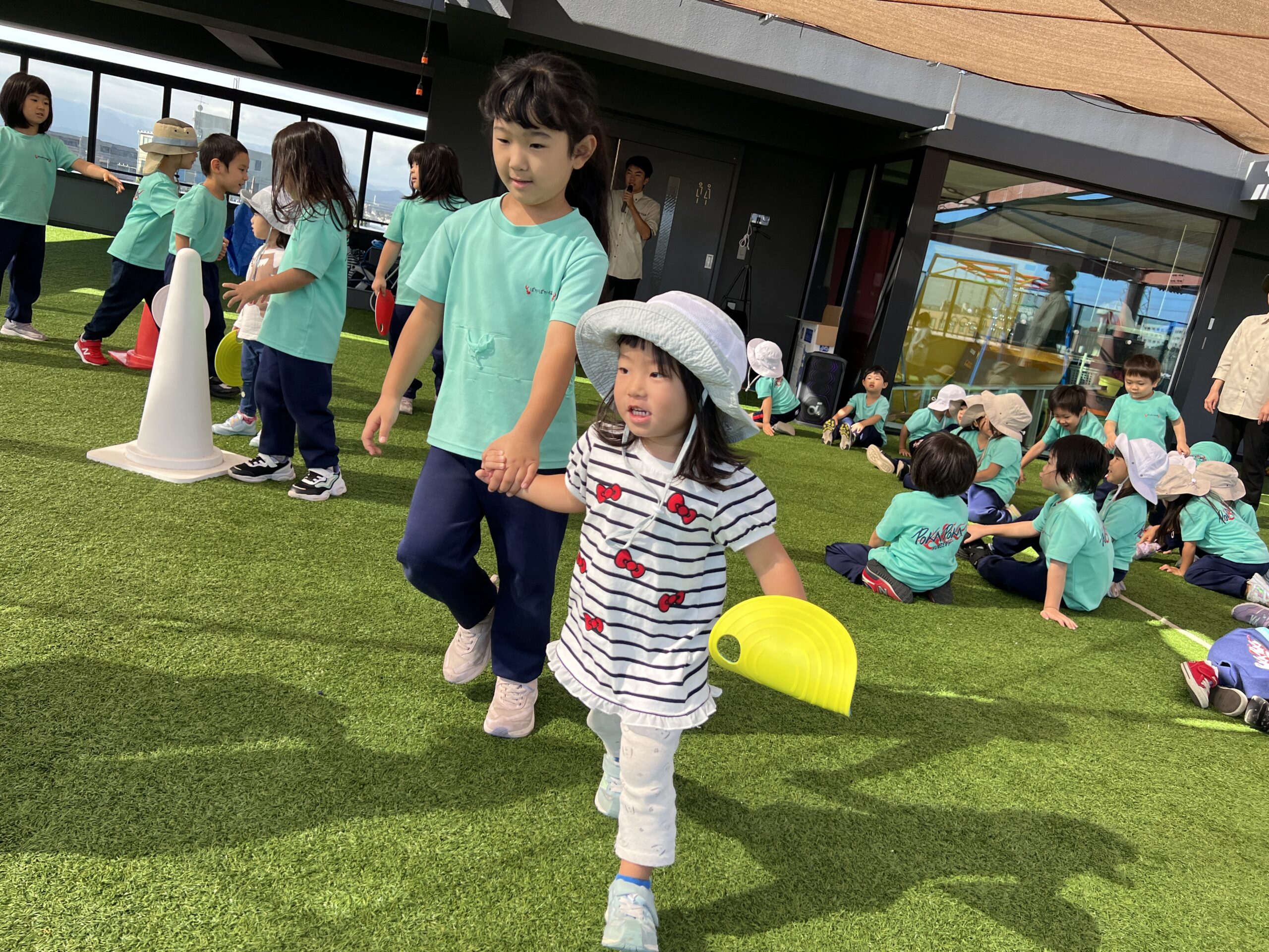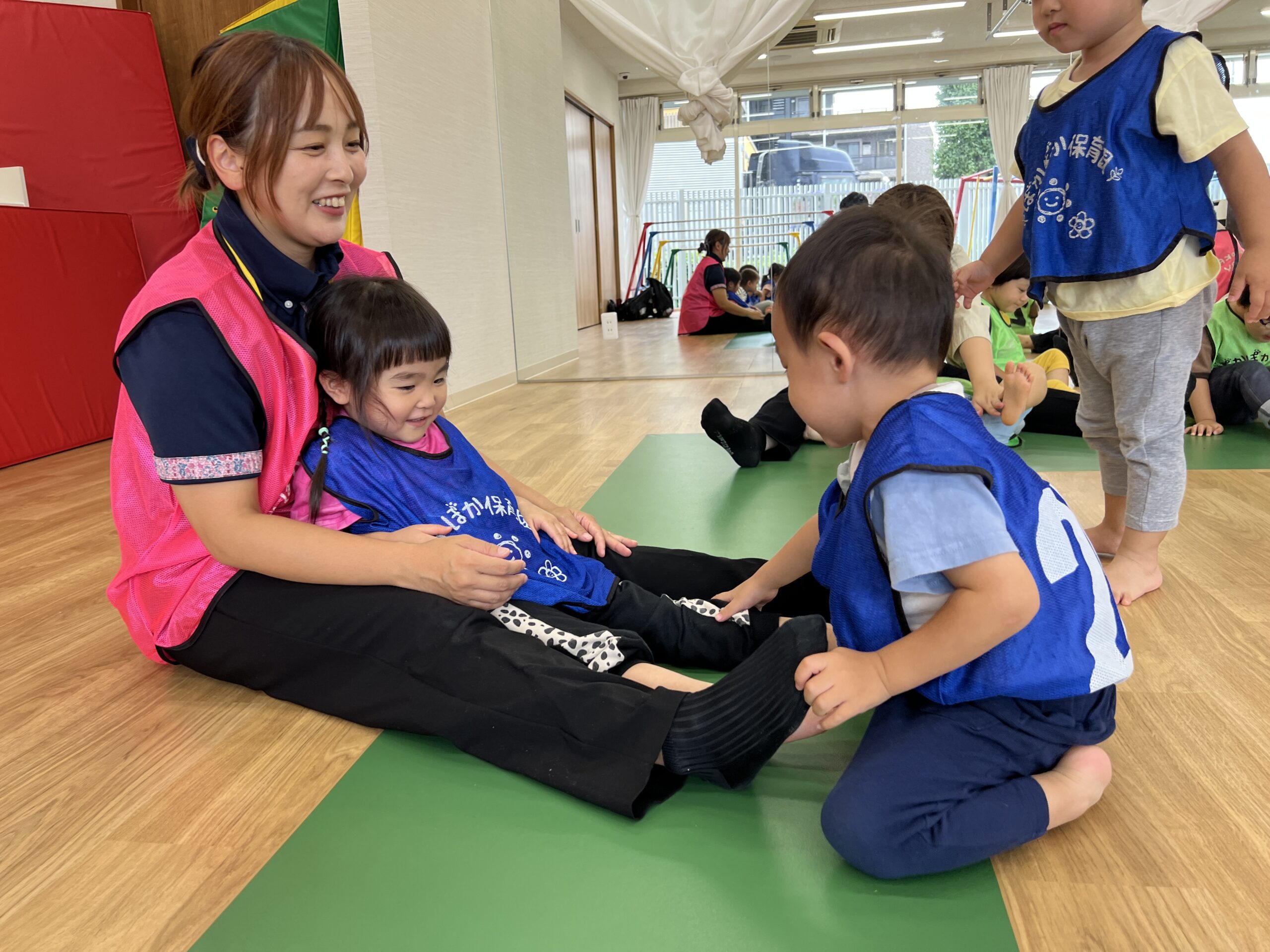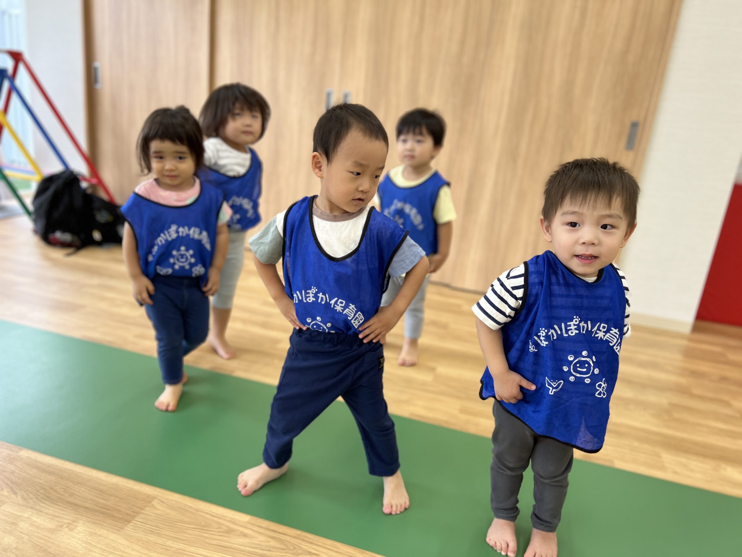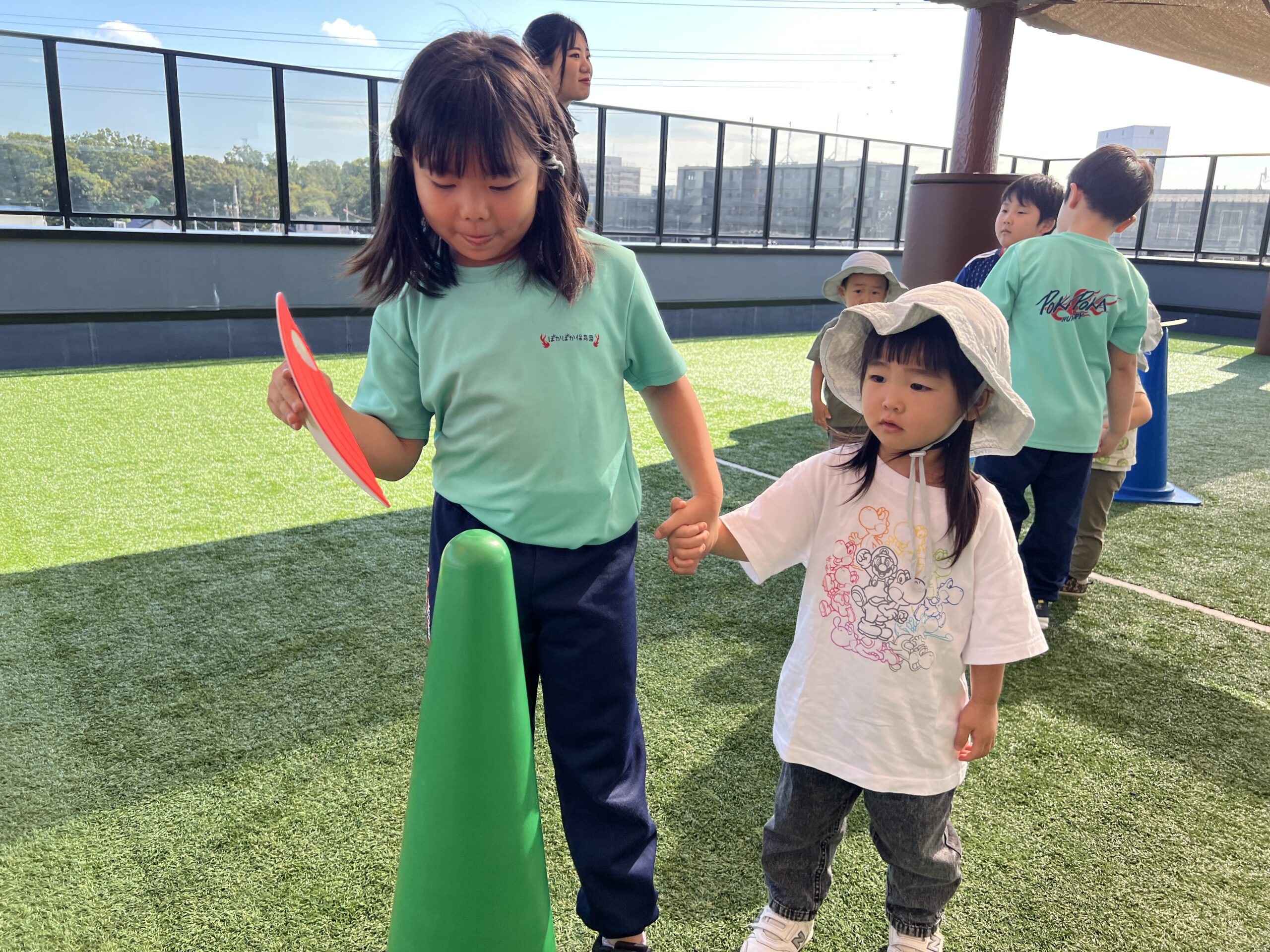 朝の安田式は5歳さんに手を繋いでもらって、3・4歳さんに応援をしてもらって