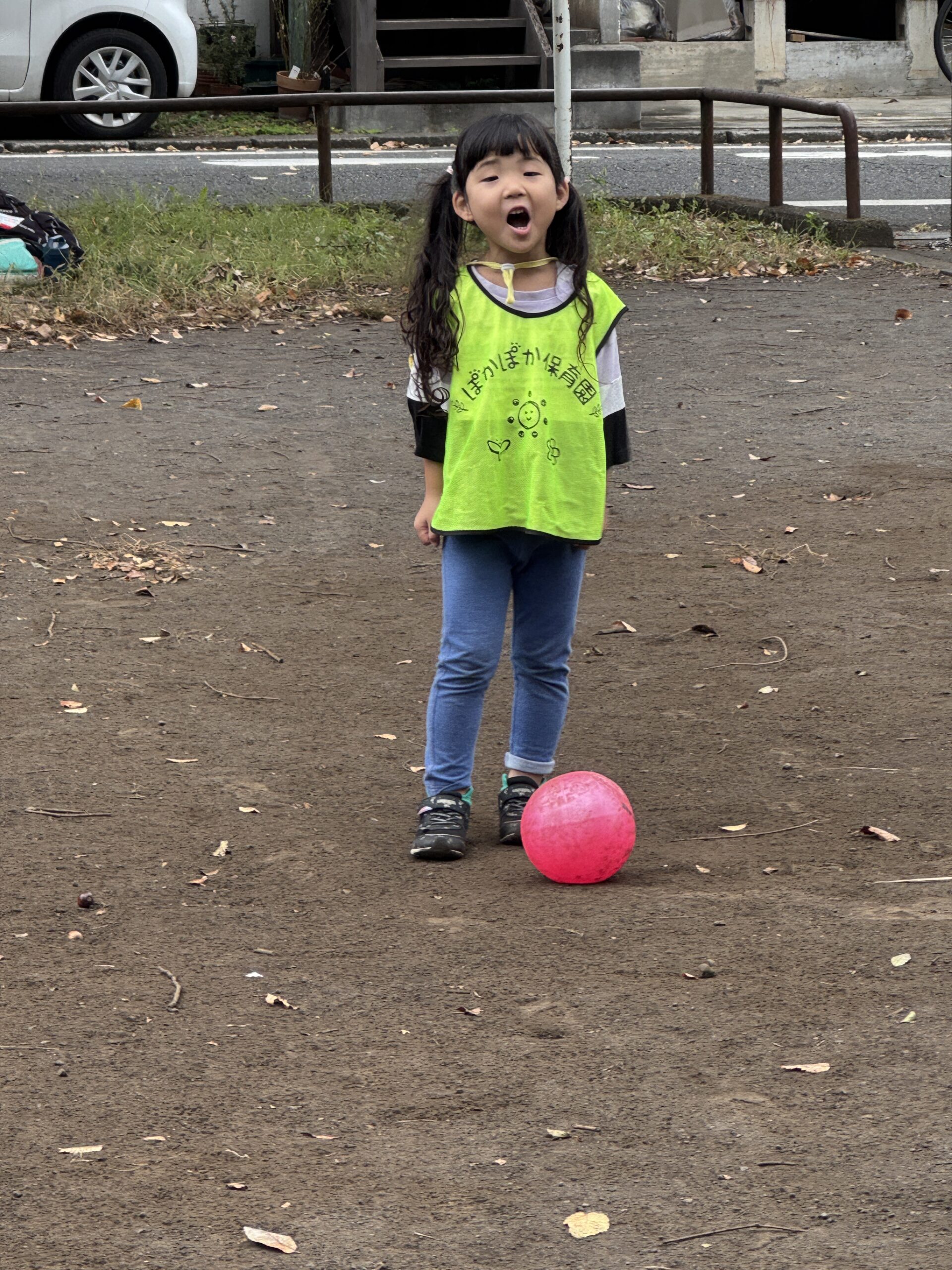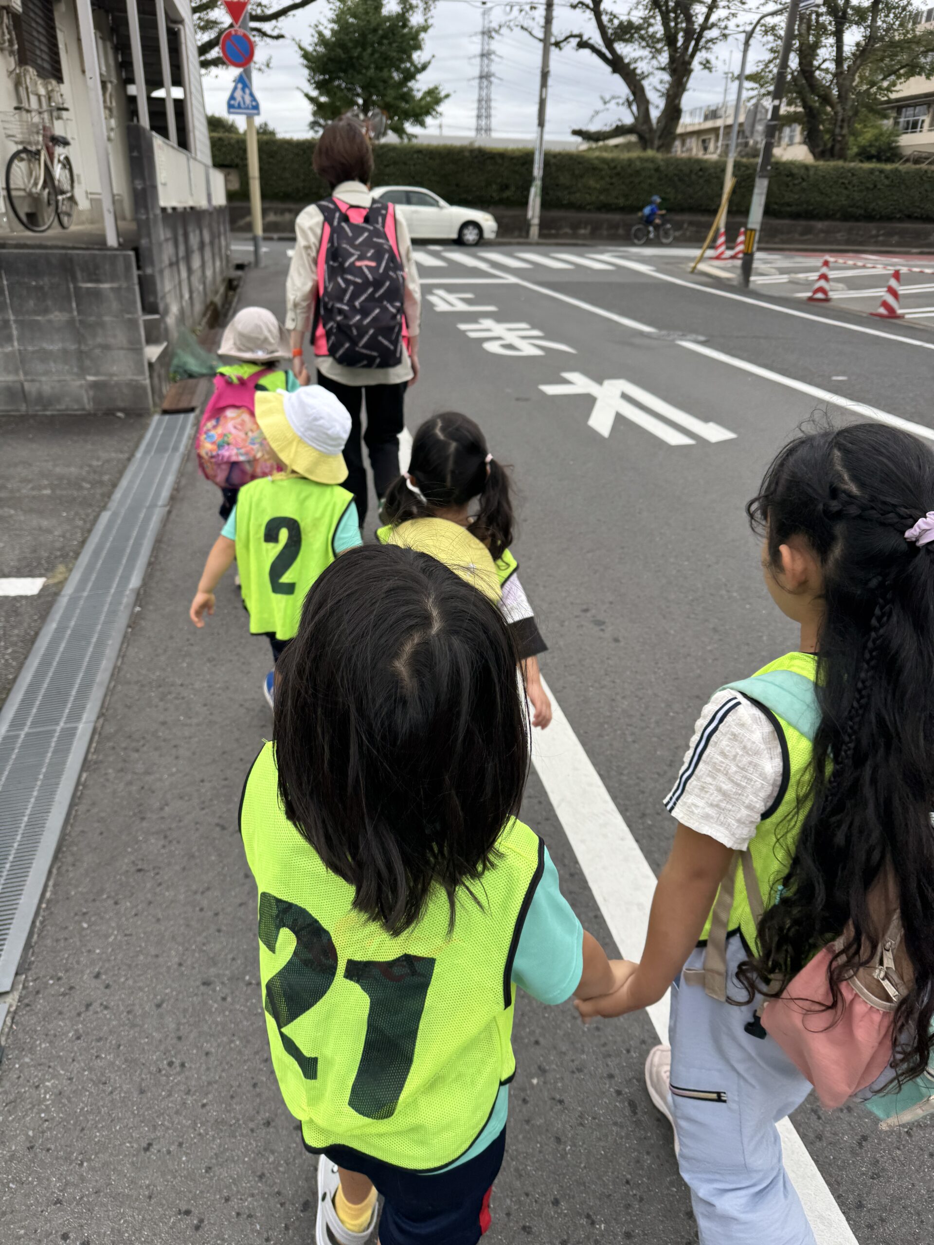 最初は少し遠くの公園まで行く予定でしたが、空からぽつぽつと小雨が…。先生たちと相談し、近くの公園に行き先を変更。