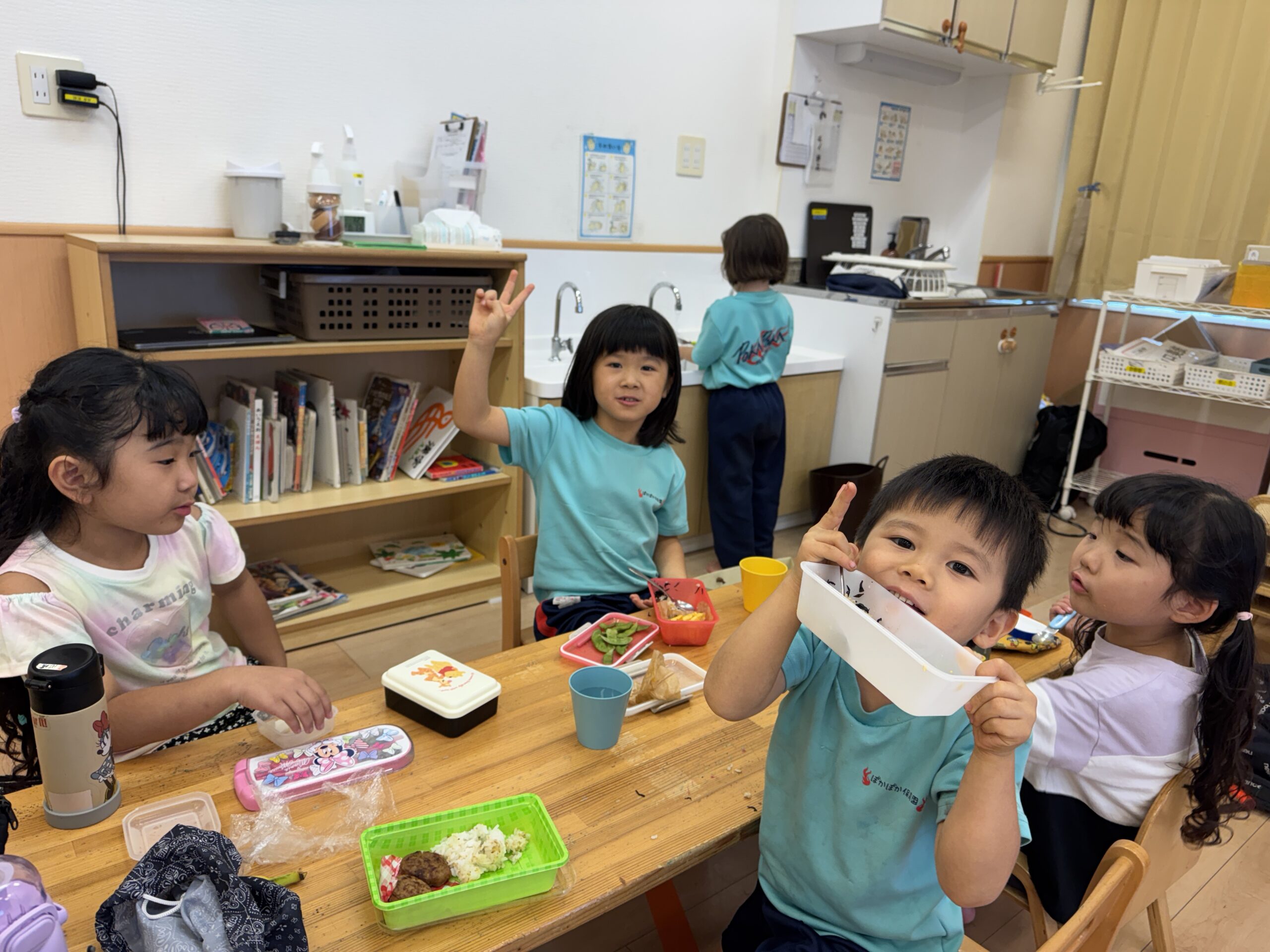 今日は祝日保育。いつもより少人数の登園でしたが、その分一人ひとりとじっくり関わることができ、穏やかな時間が流れました。