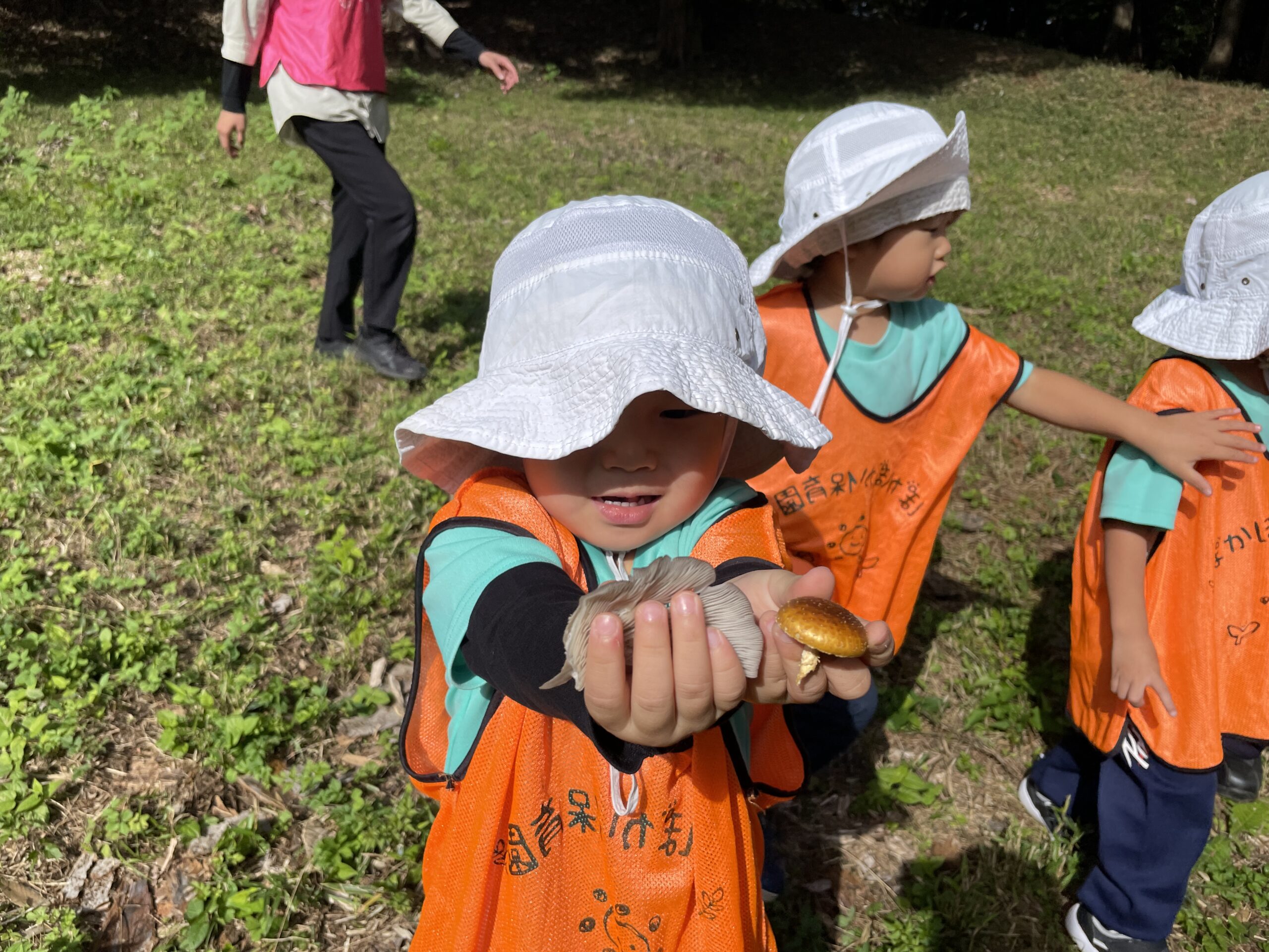 「みてみてキノコ!」「これは毒はないから触っていいんだよ!」と教えてもらった知識を嬉しそうに教えてくれました!