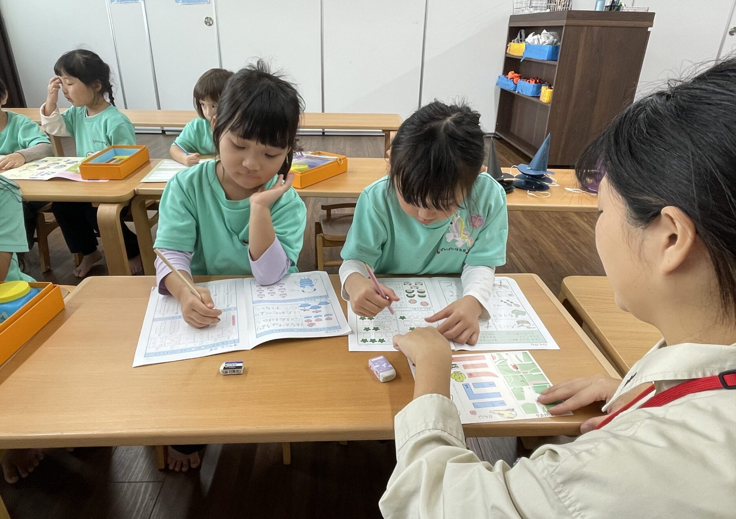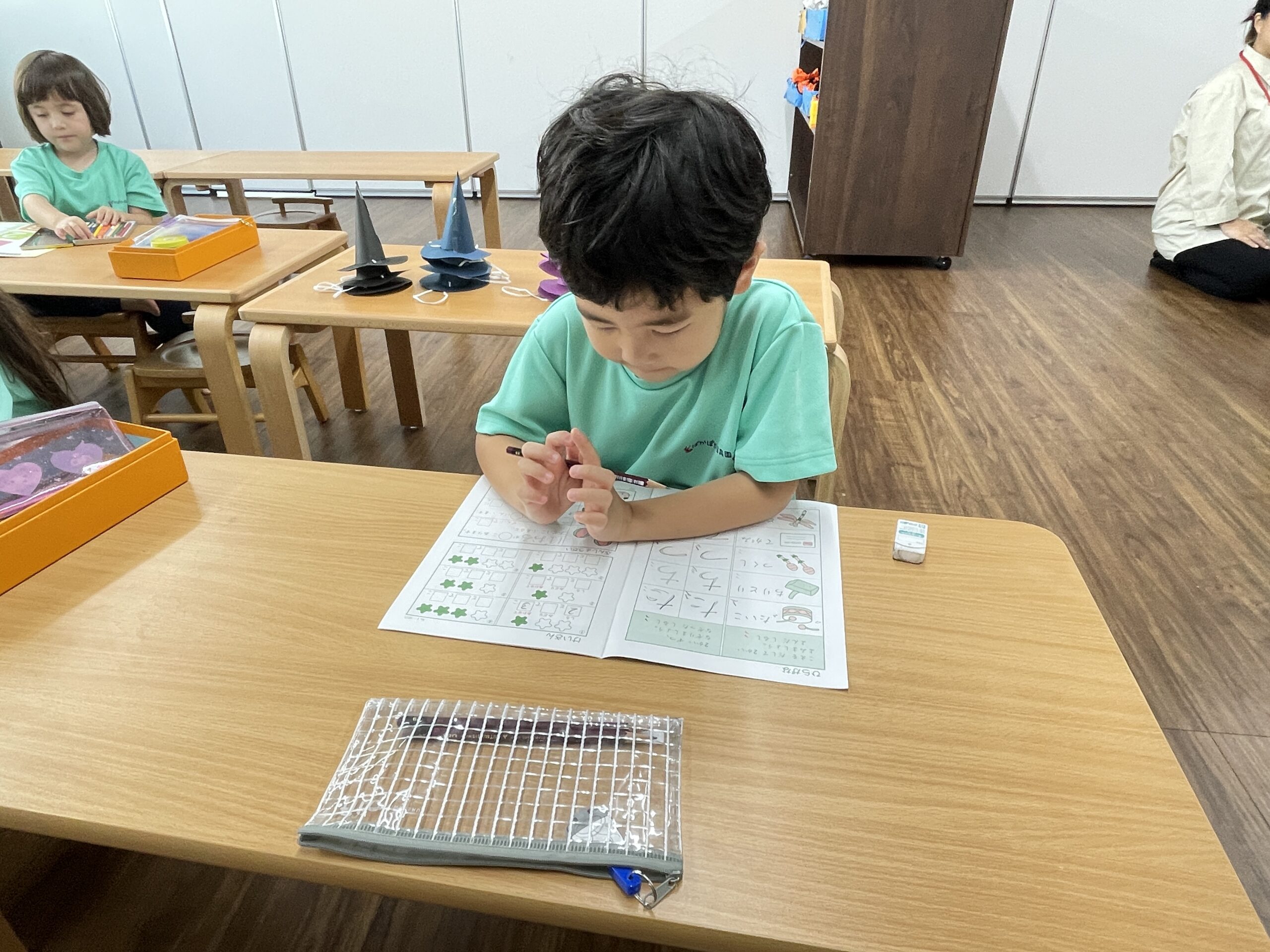 「これ難しいな・・!」と分からない時は先生を呼んでワークを進めていきました。一門教えると理解して自分で進めていくお友達が多かったです。