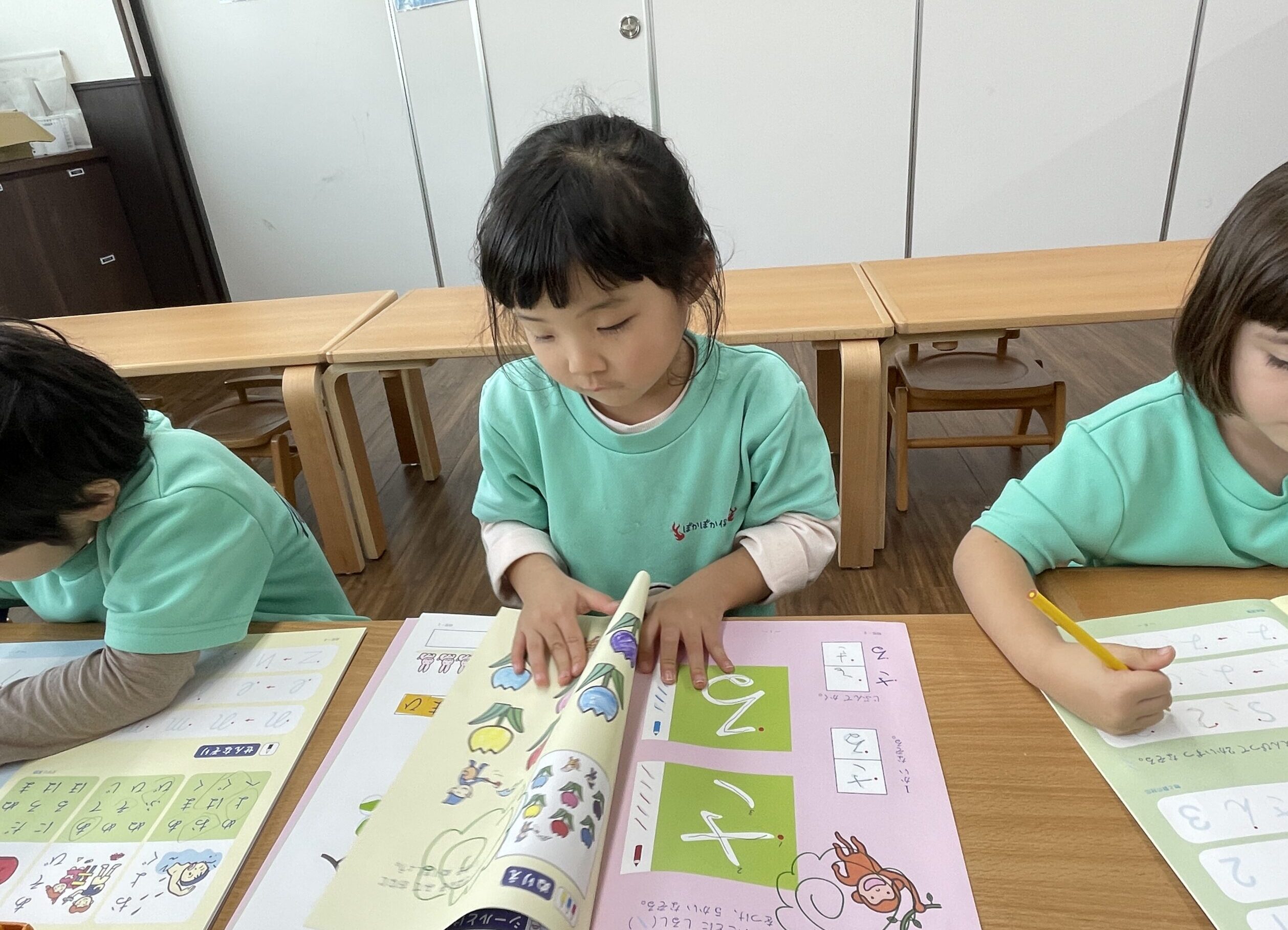 4歳児さんは鉛筆の持ち方や姿勢も少しずつ整ってきており、どの子も真剣な表情で取り組む姿がとても立派でした。
