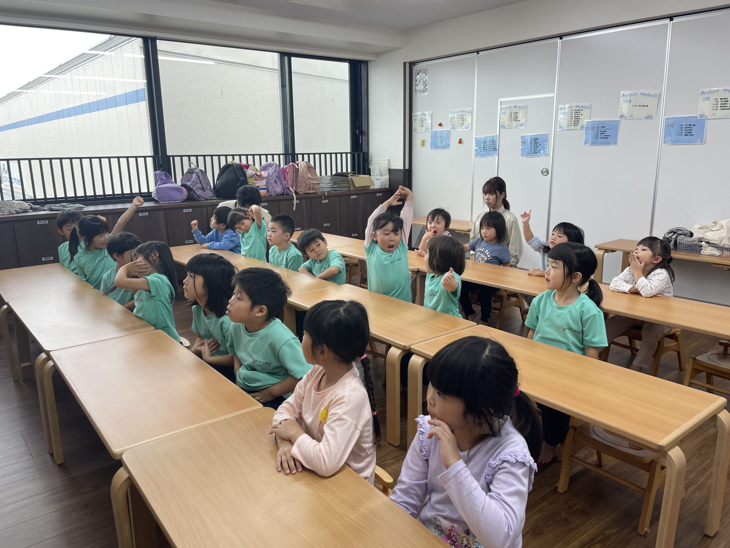 お友達が全員そろうと、みんなで朝の会をスタート!
