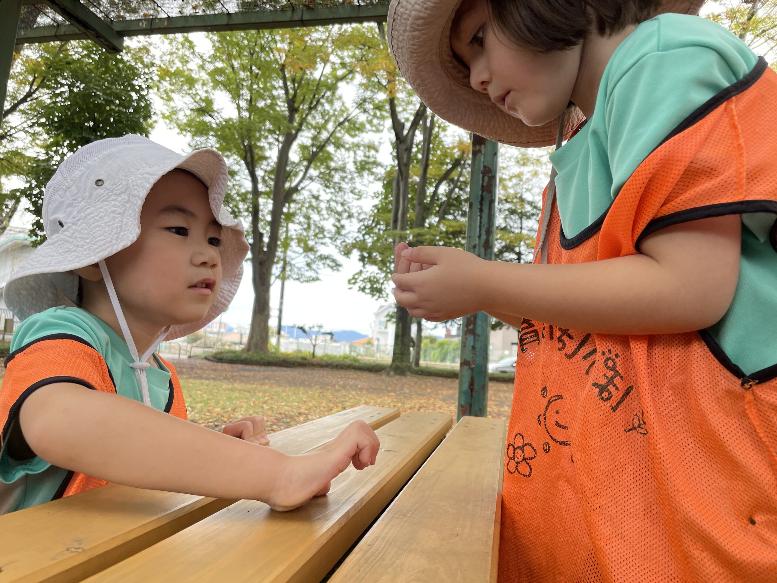 今日は年少・年中・年長さんが中心のグループで公園へお出かけです。