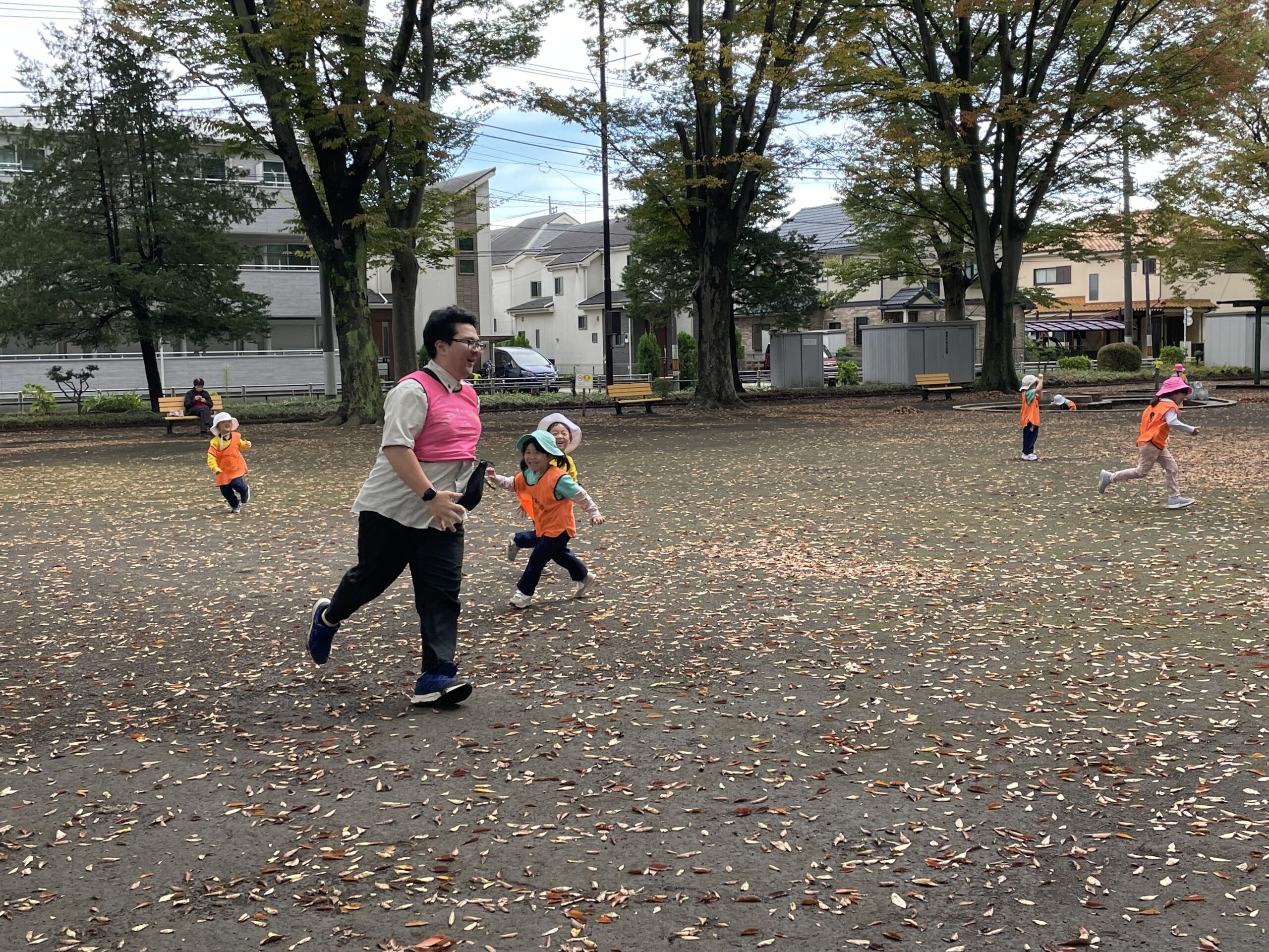 「まてまて〜!」「先生、つかまえた〜!」と笑顔がはじけます。