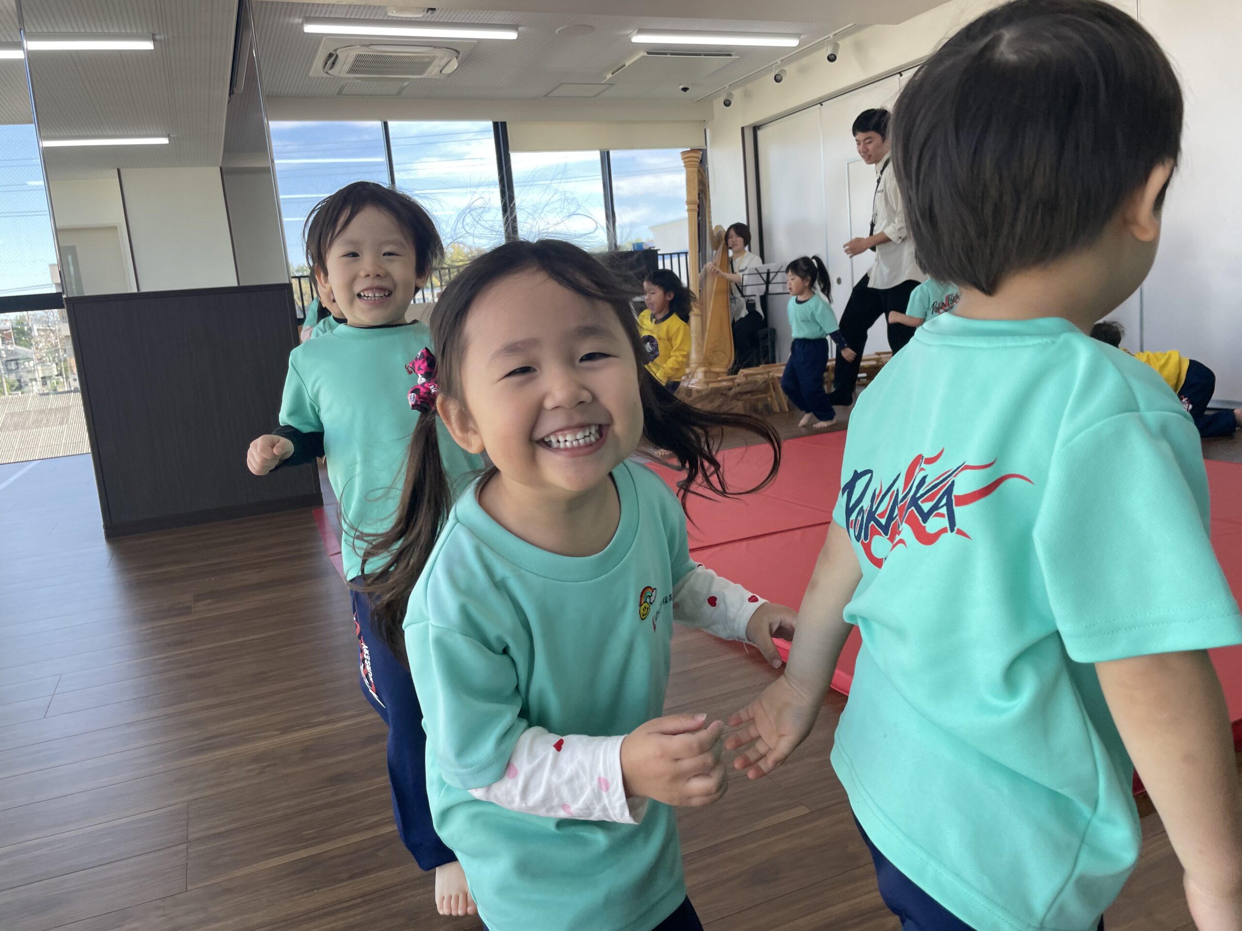 今日も元気いっぱいの子ども達!最初の活動は音楽!