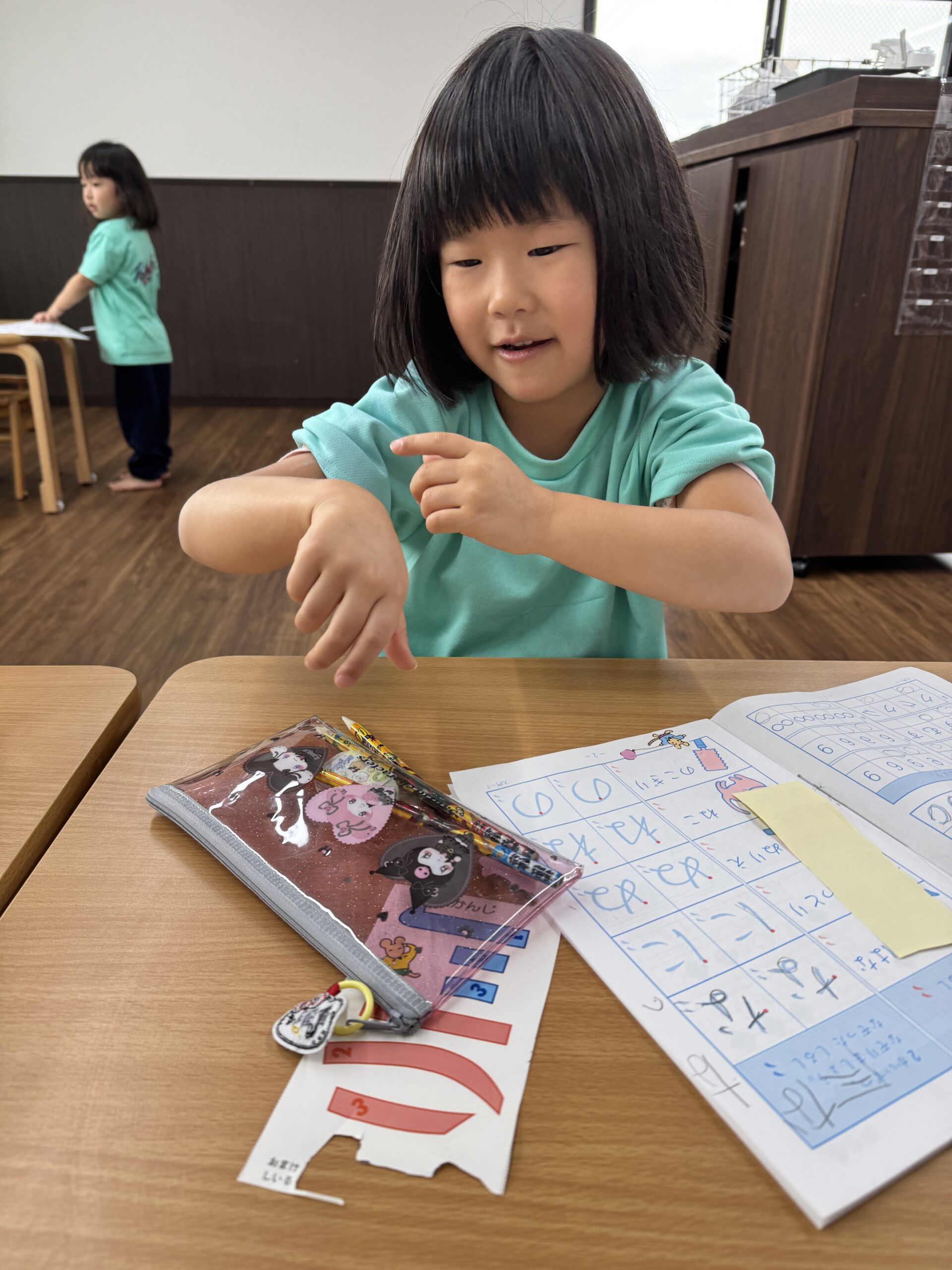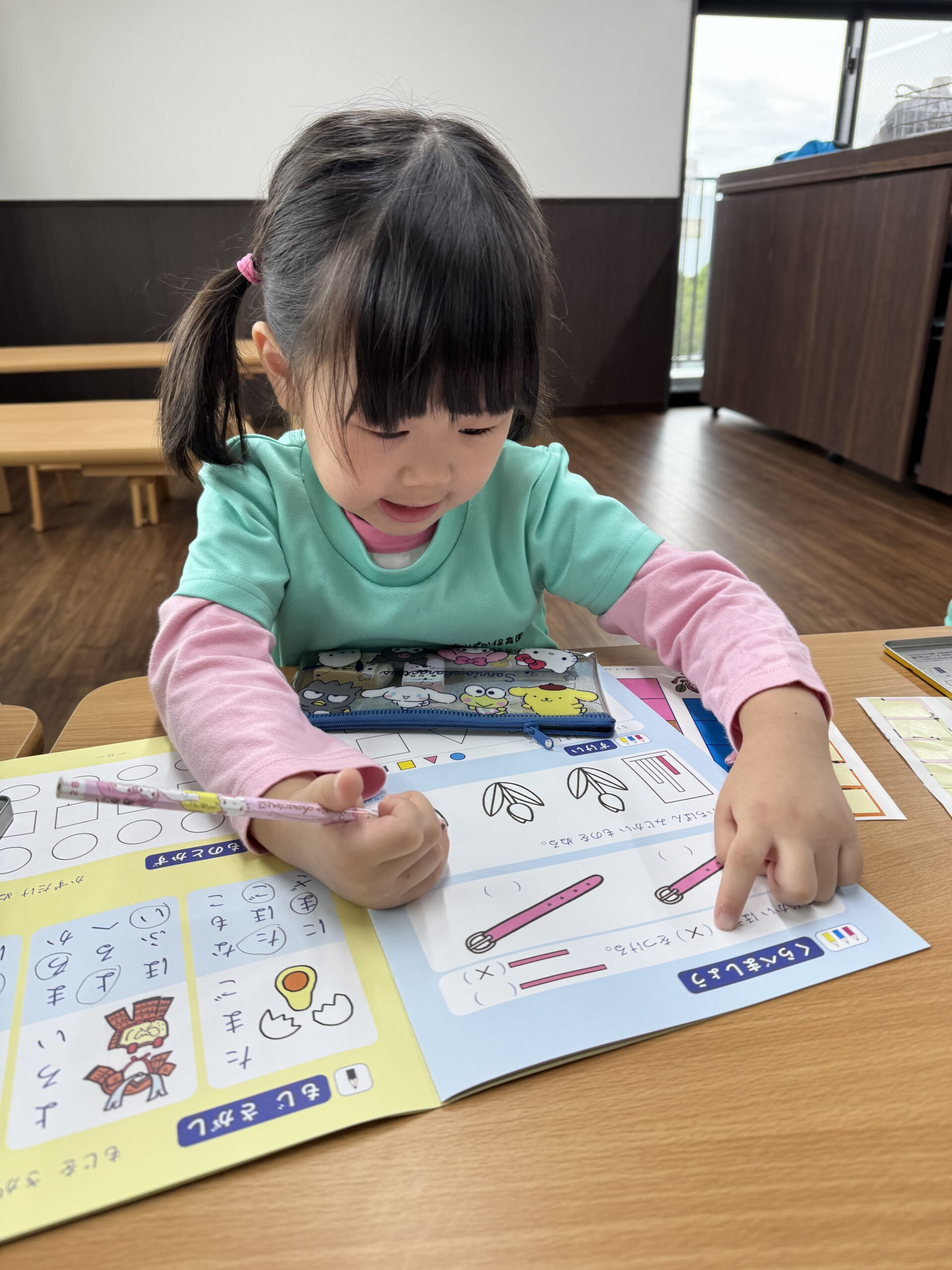 線をなぞったり文字を書いたりと、集中して机に向かう姿に成長を感じます。