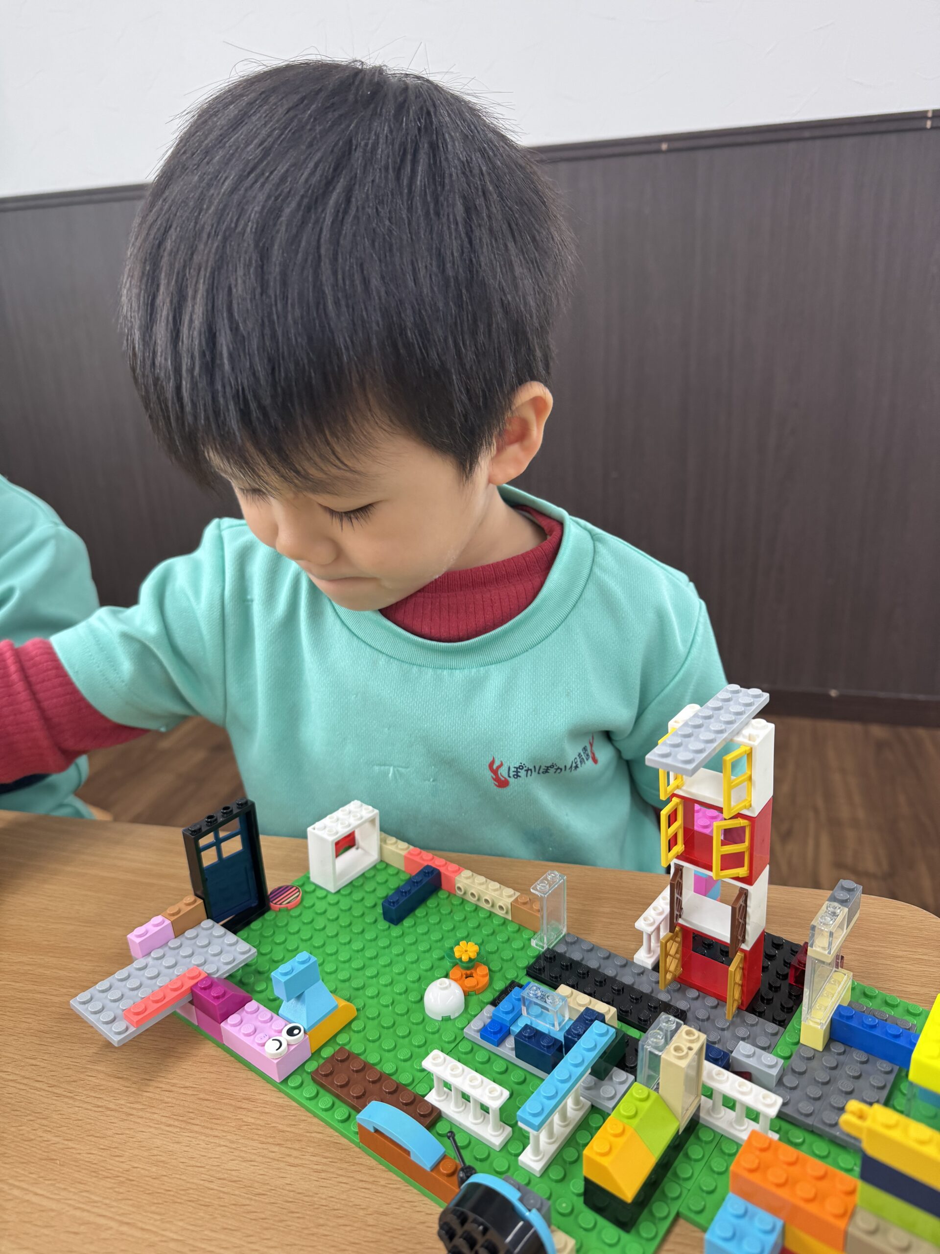 お友だちと協力しておうちを作ったり、お店屋さんごっこをしたり、笑い声があふれるお部屋の中でゆったりと過ごしました。