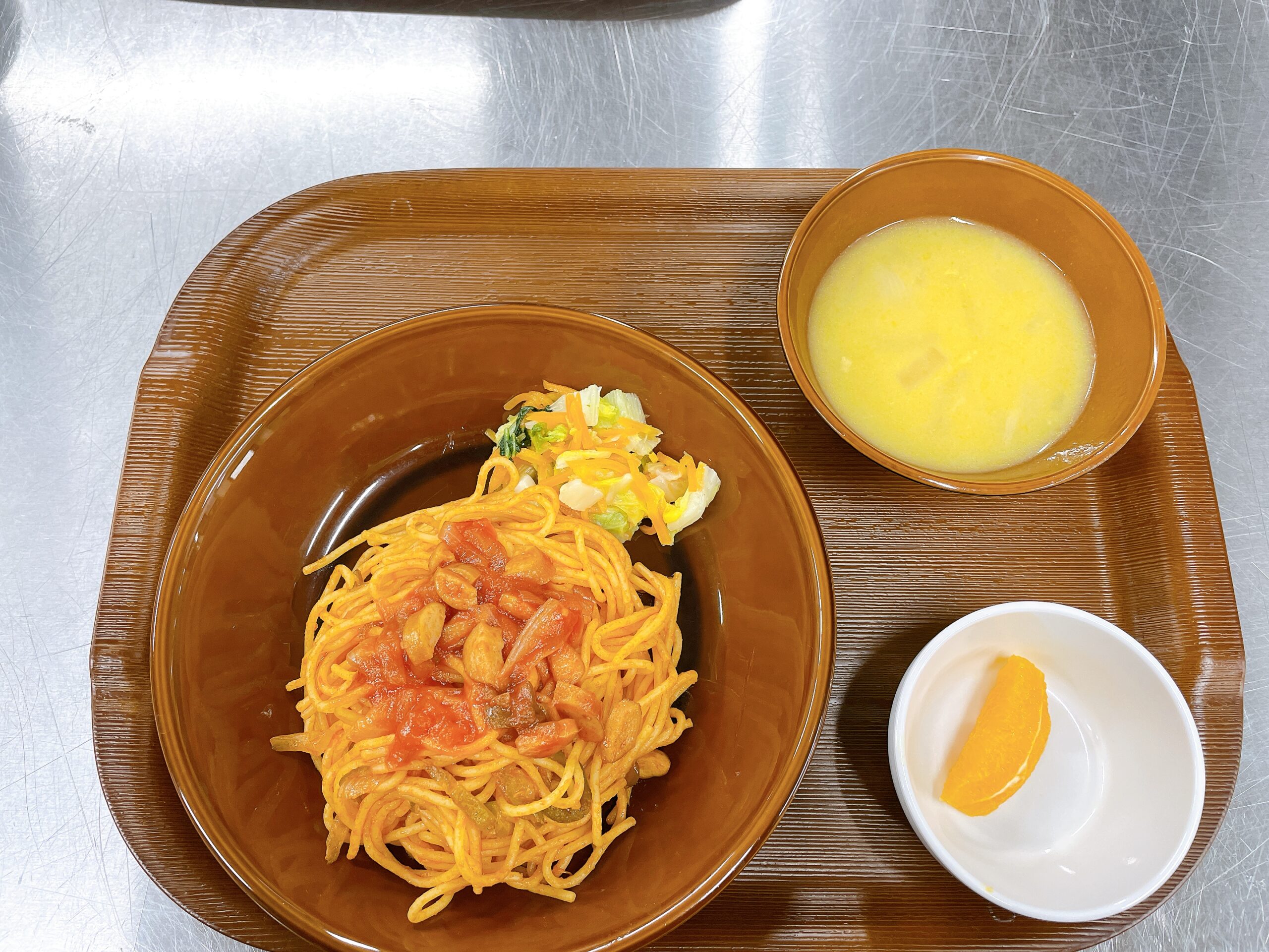 【メニュー名】ナポリタン、コーンスープ、フレンチサラダ、オレンジ