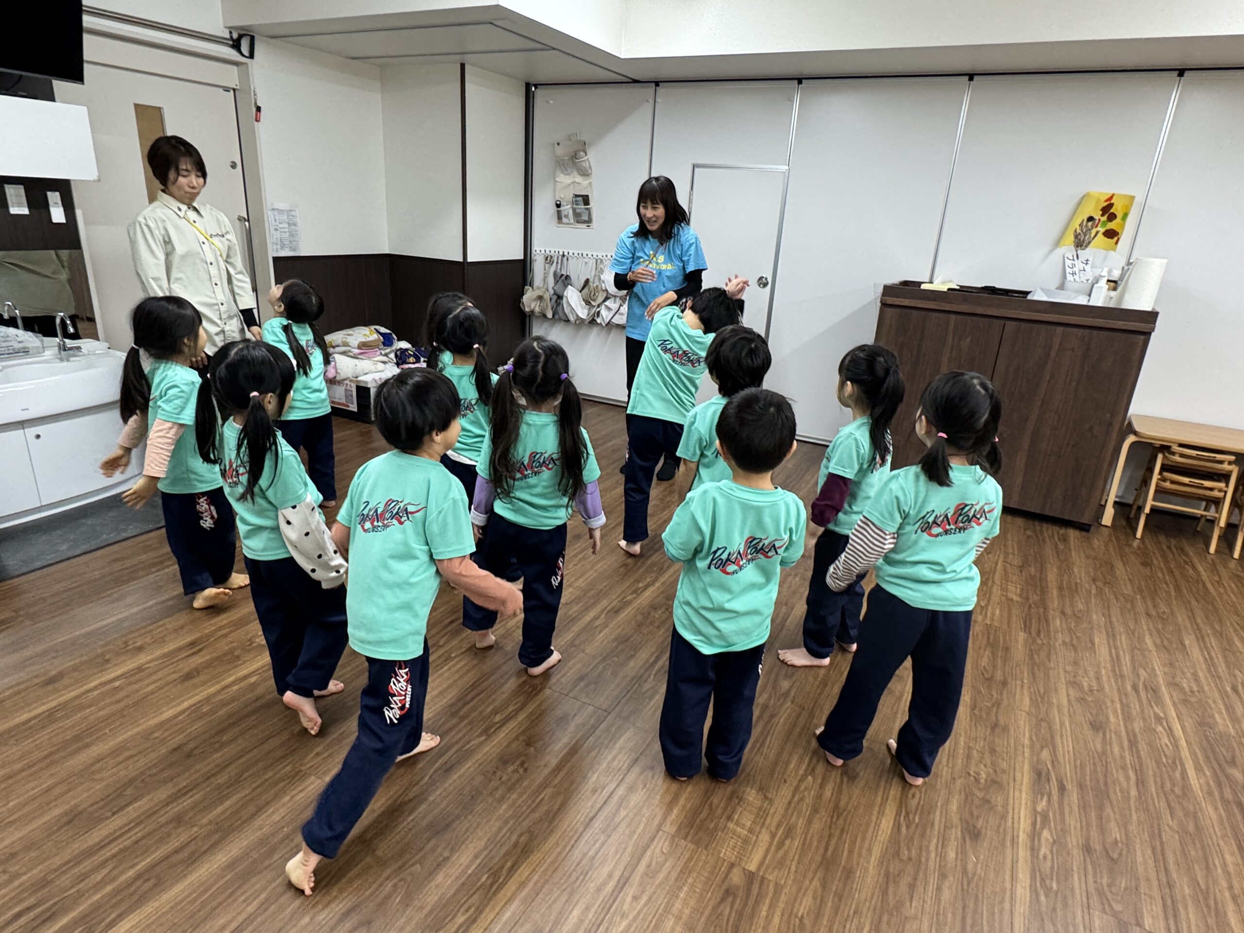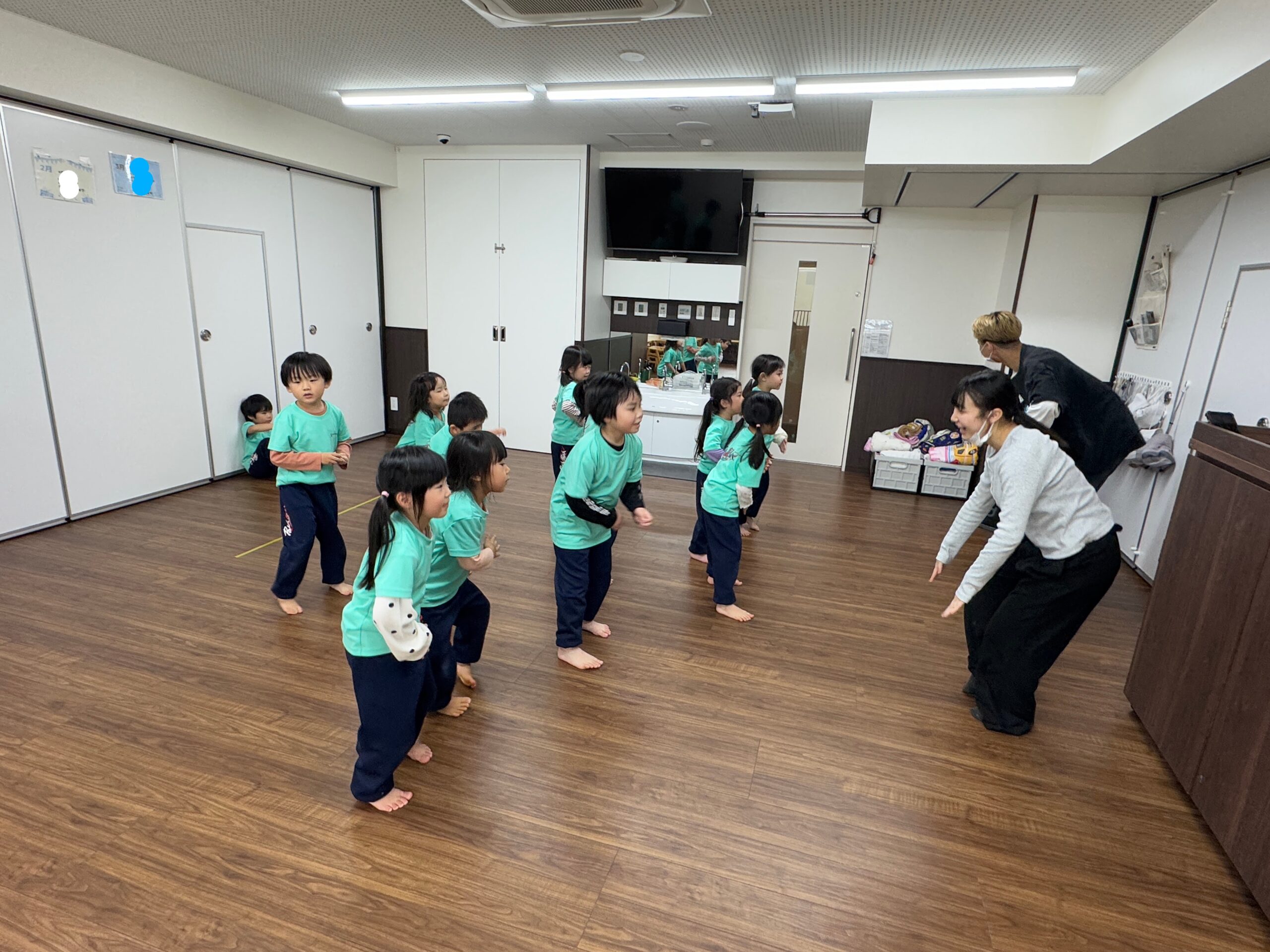 続いてはダンスの時間。準備体操代わりのリズムダンスで体を温め、