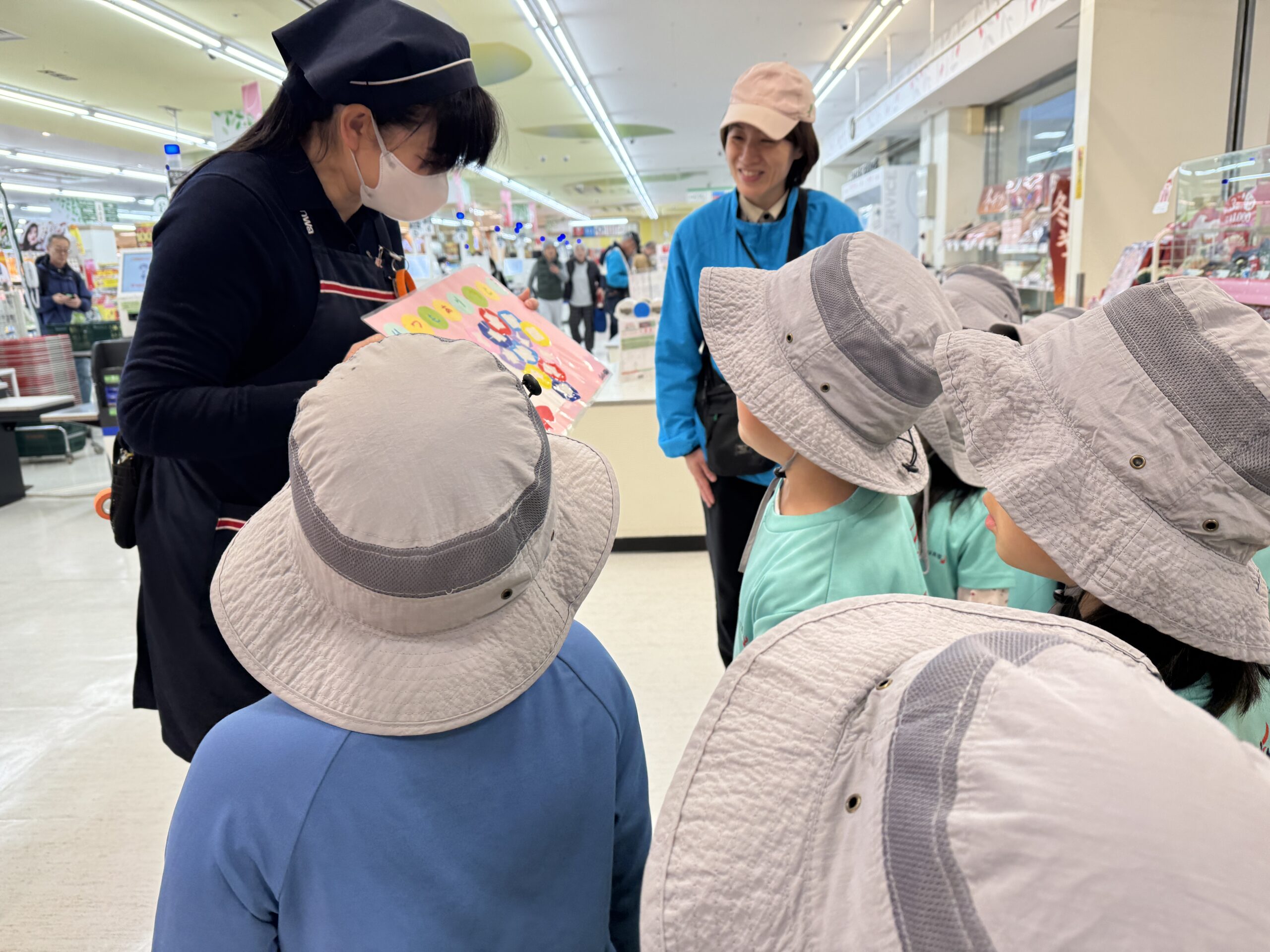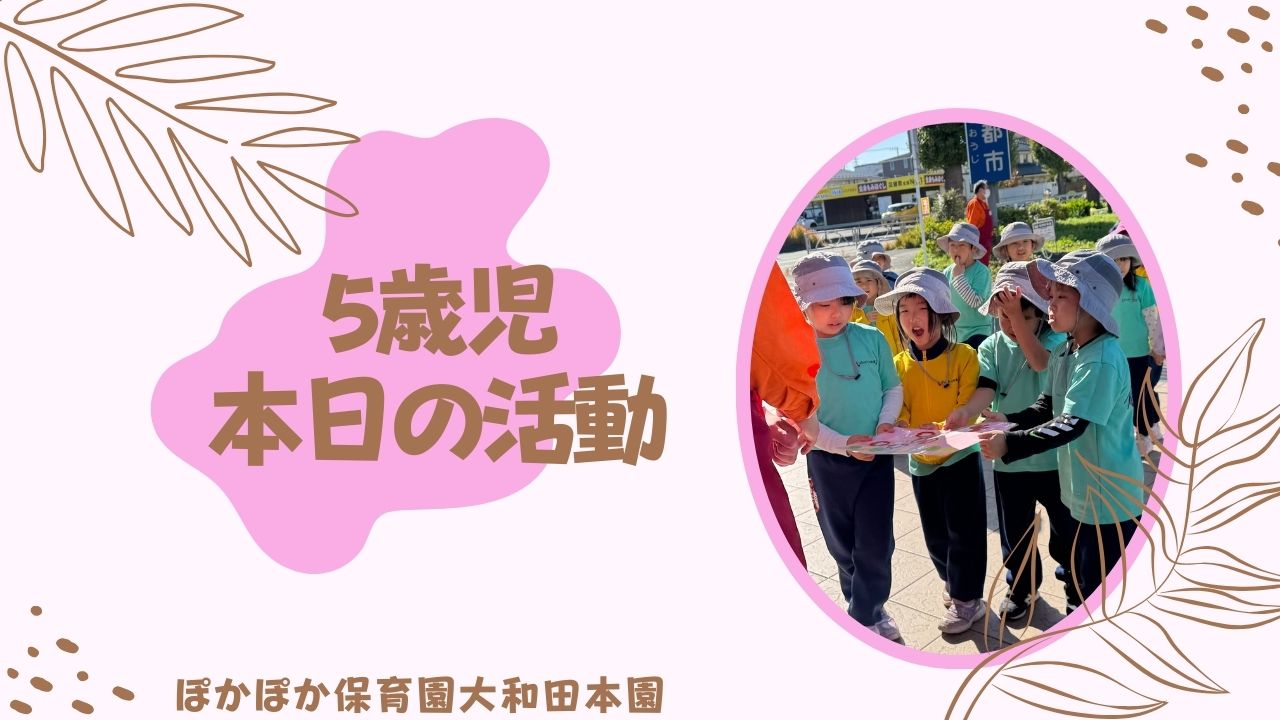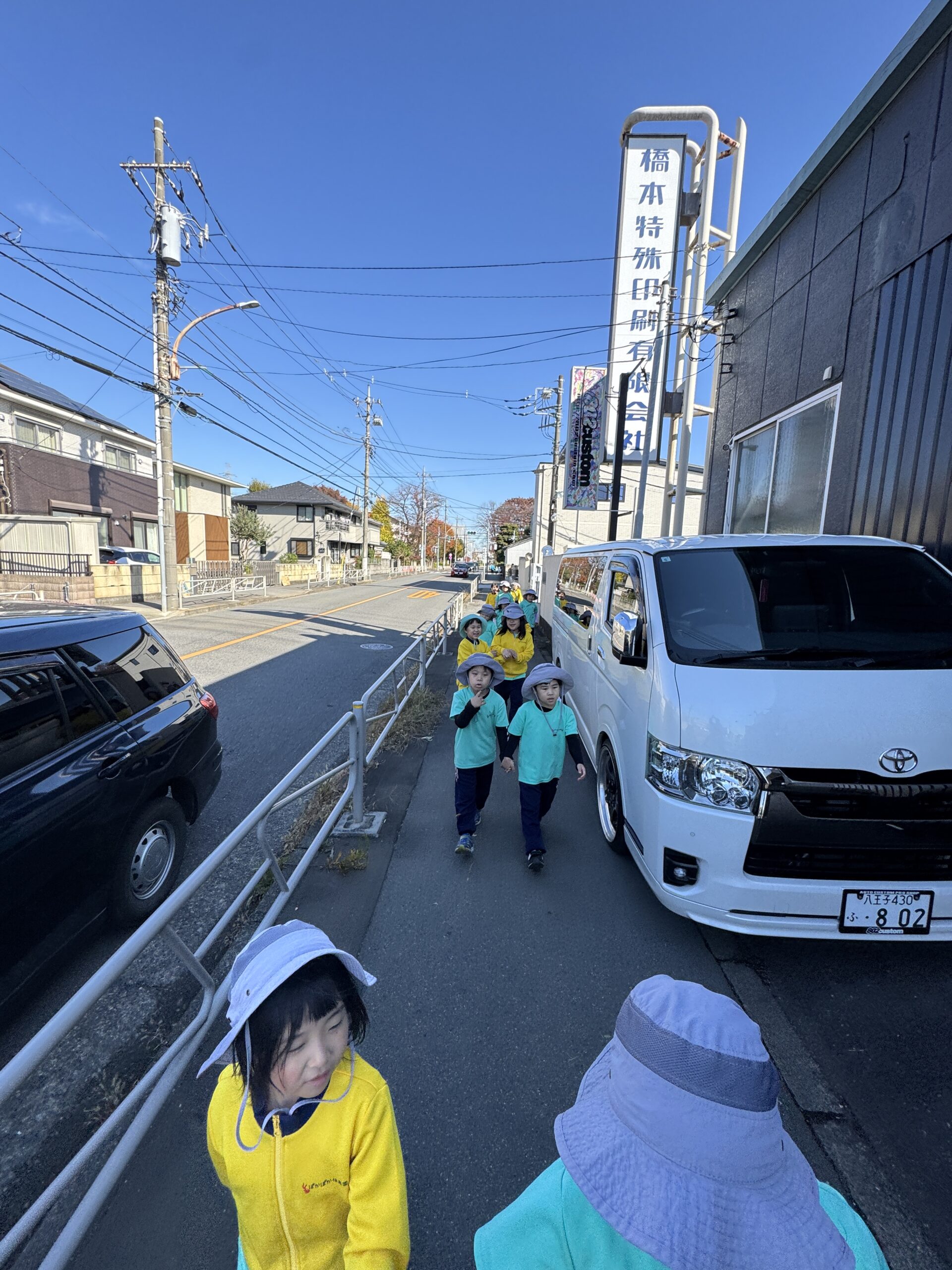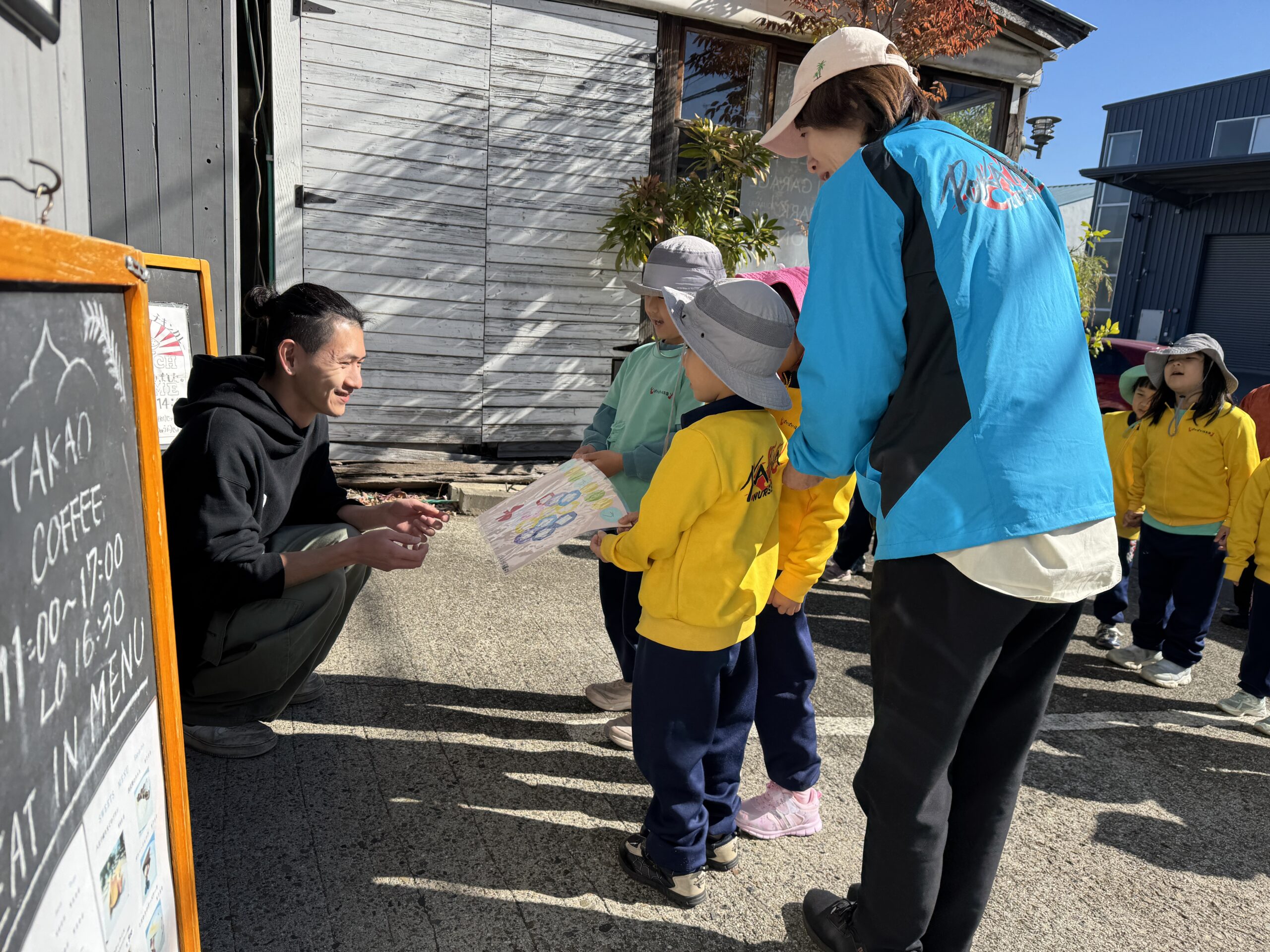 今日は勤労感謝の日に向けて、ぽかぽか保育園の代表として、年長さんが園外へ「ありがとう」を伝えに回りました。