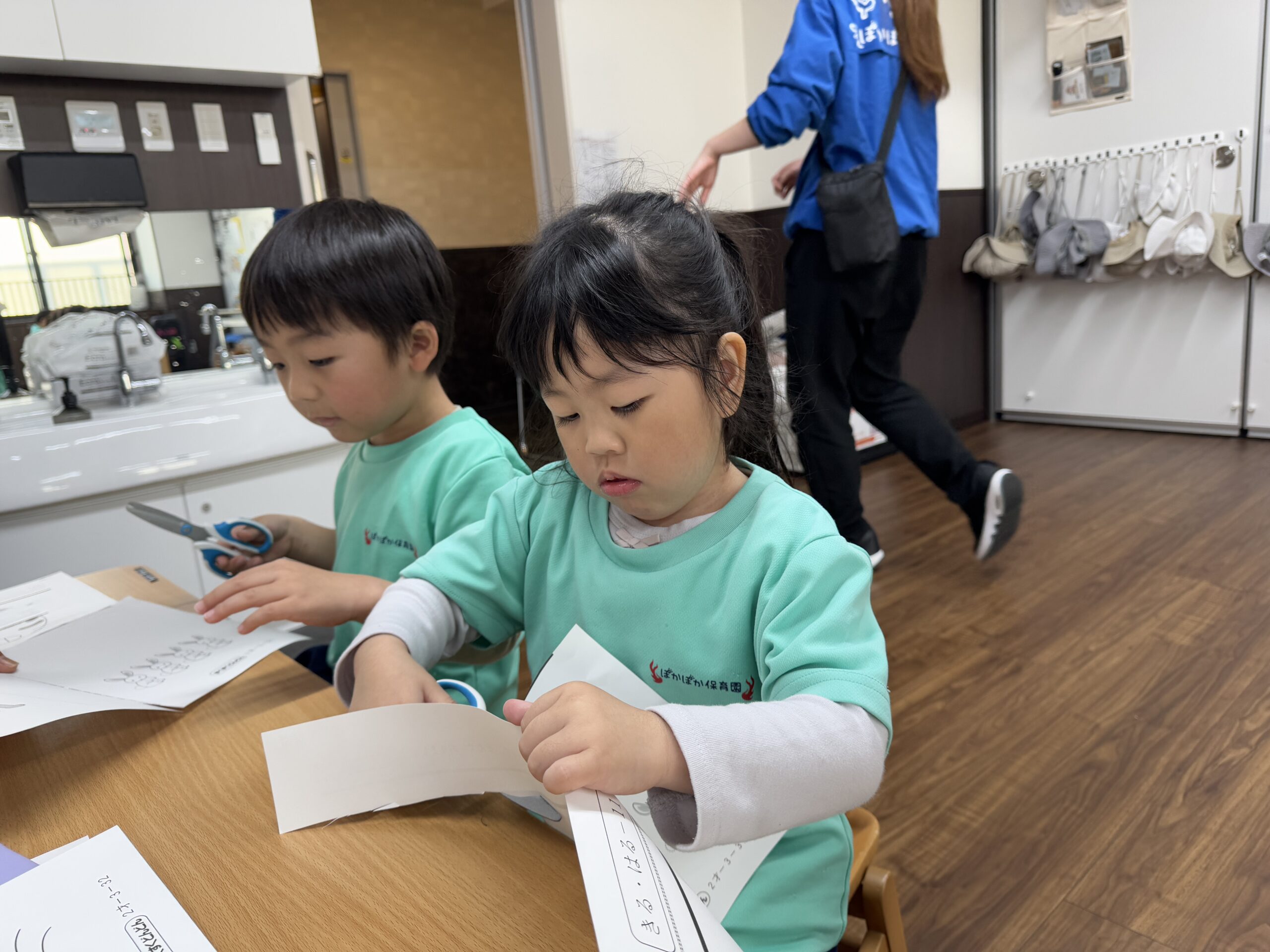 「もう一枚やってみる!」「ここ難しいけど頑張るね」と、やる気の声がいろんなところから聞こえてきて、成長を感じるひとときに。