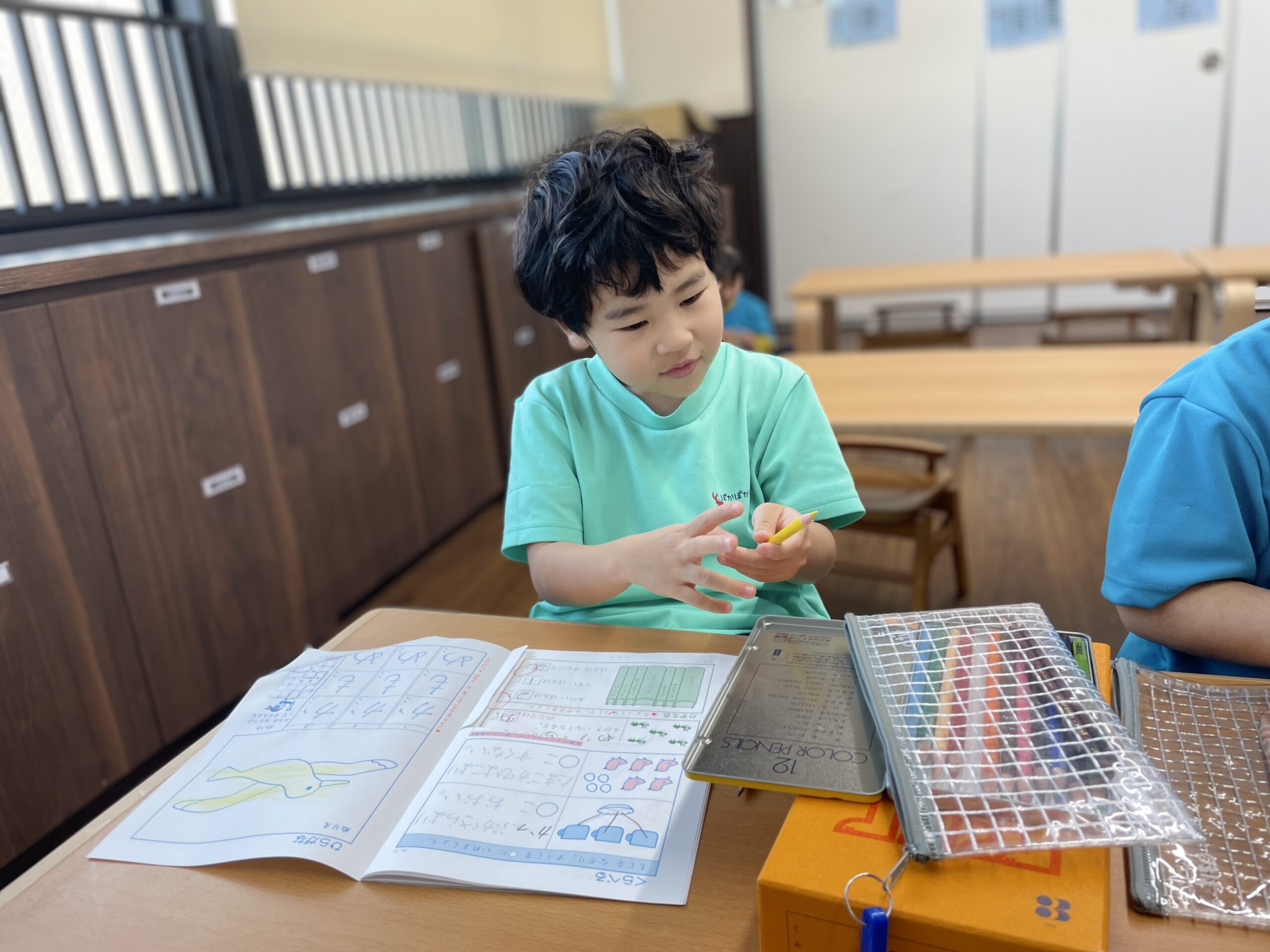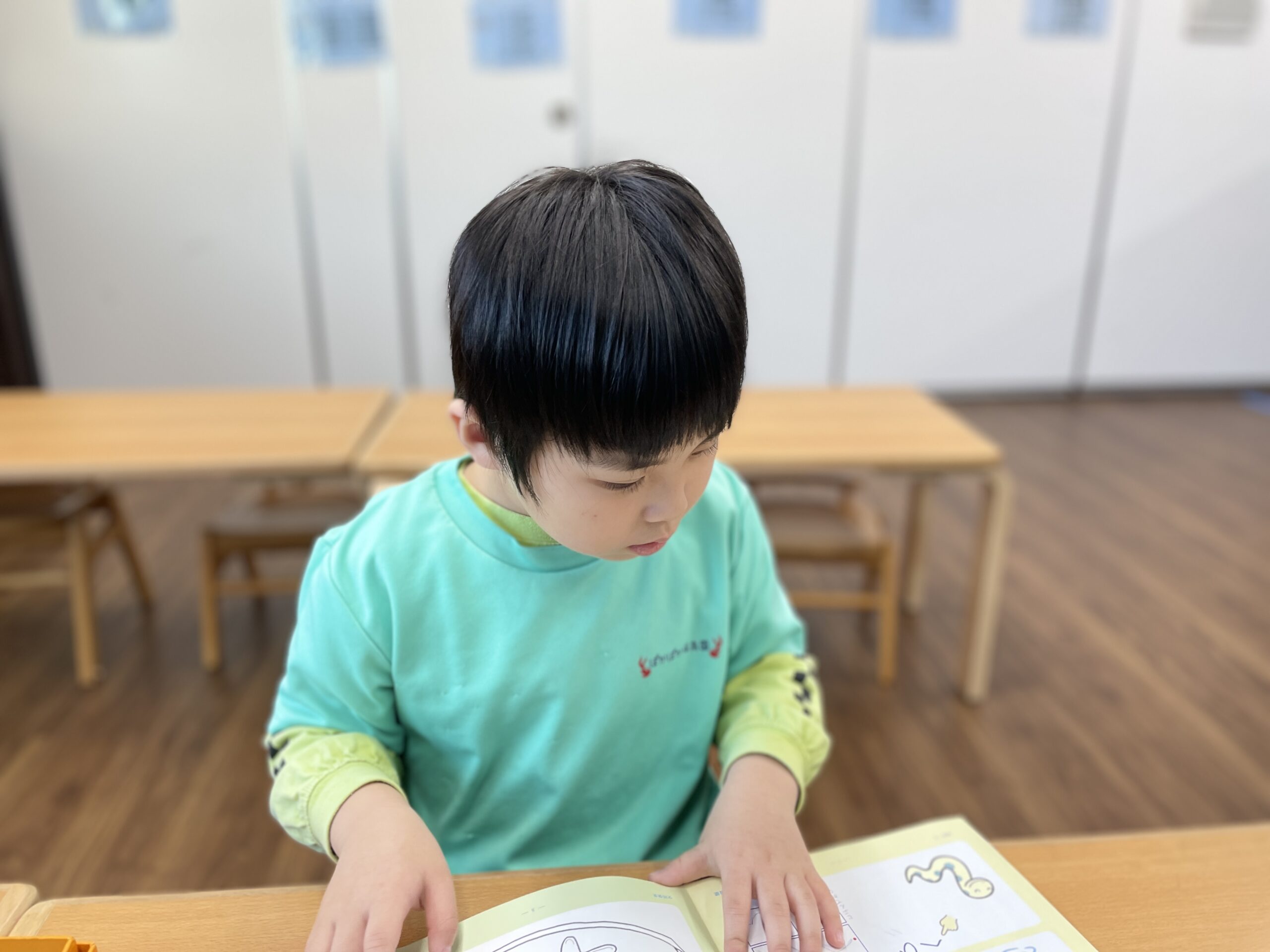 「これはこうやるんだよ!」とお友達と助け合ったり、「ここが分からないから手伝ってください!」とワークを保育士に持ってくる姿も!