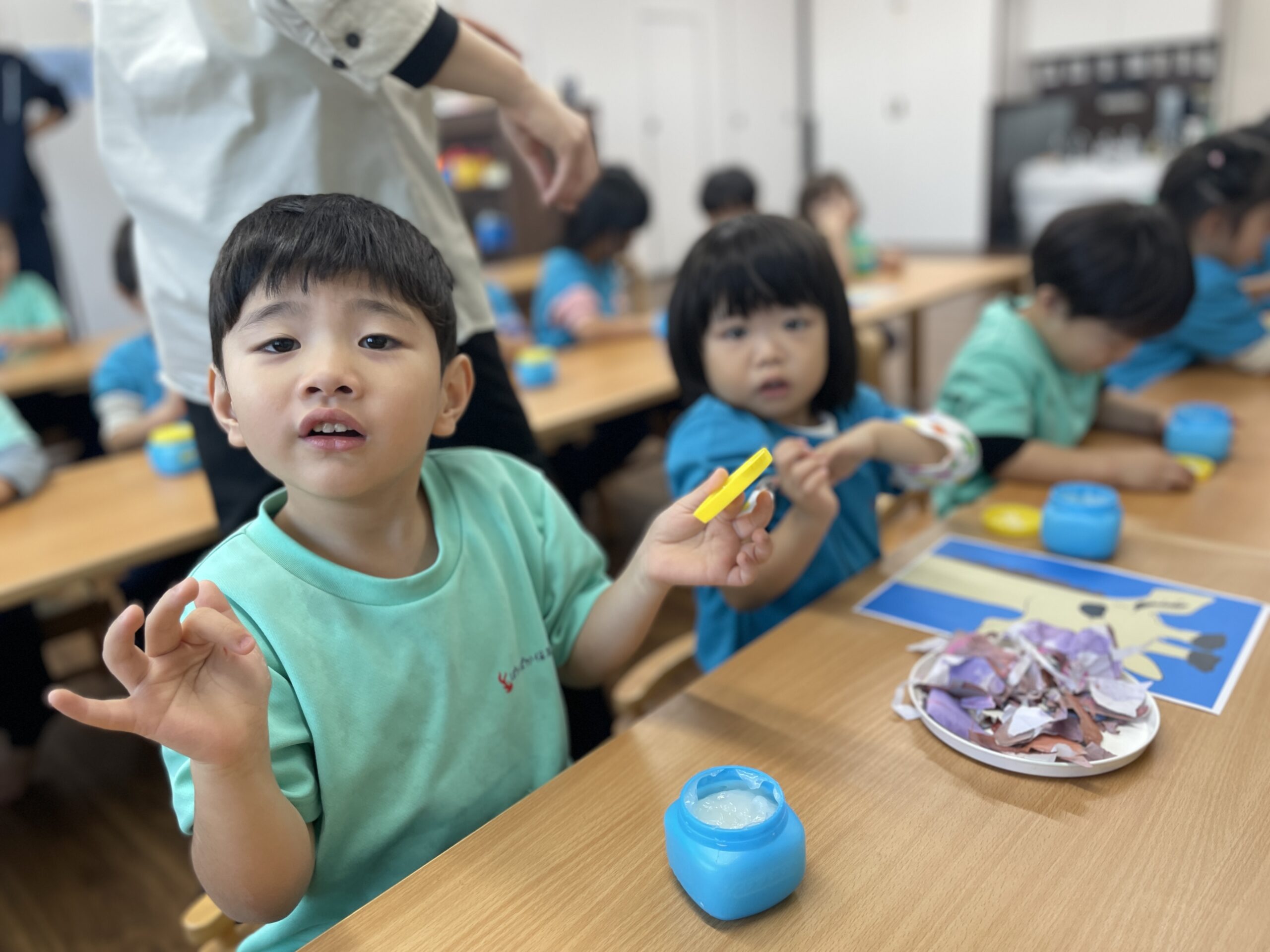 キリンの体に貼りつけてオリジナル模様を作りました。
