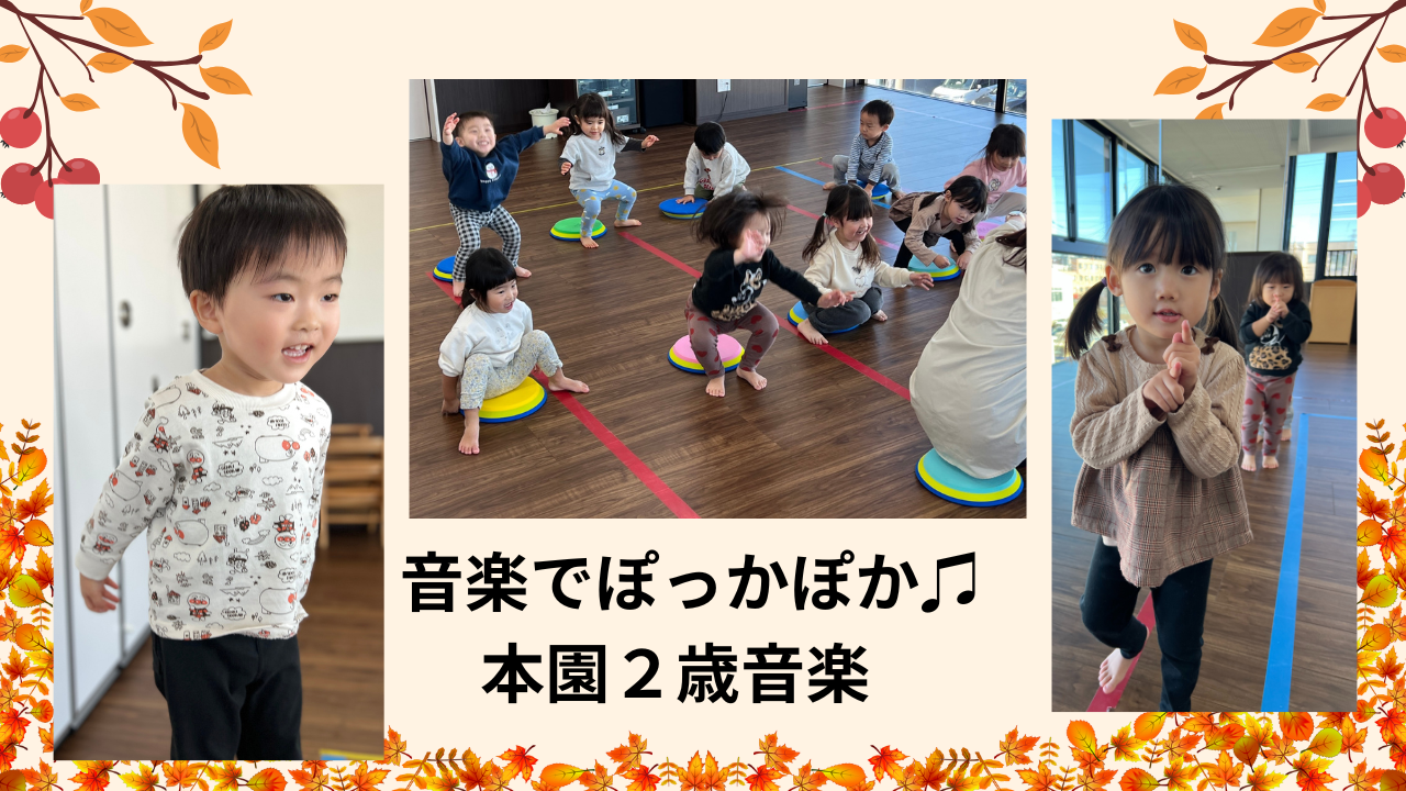 音楽でぽっかぽか♫本園2歳音楽 2025 / 12 / 04 お知らせ 目次 - シェア こんにちは!音楽講師の小林です。 12月最初の2歳音楽は、音楽でぽっかぽか♫ をテーマに行いました。 リトミックは忍者の動きから。忍び足と早足♪ « 12/3 サイエンス 分園 ラブチームの一日 »