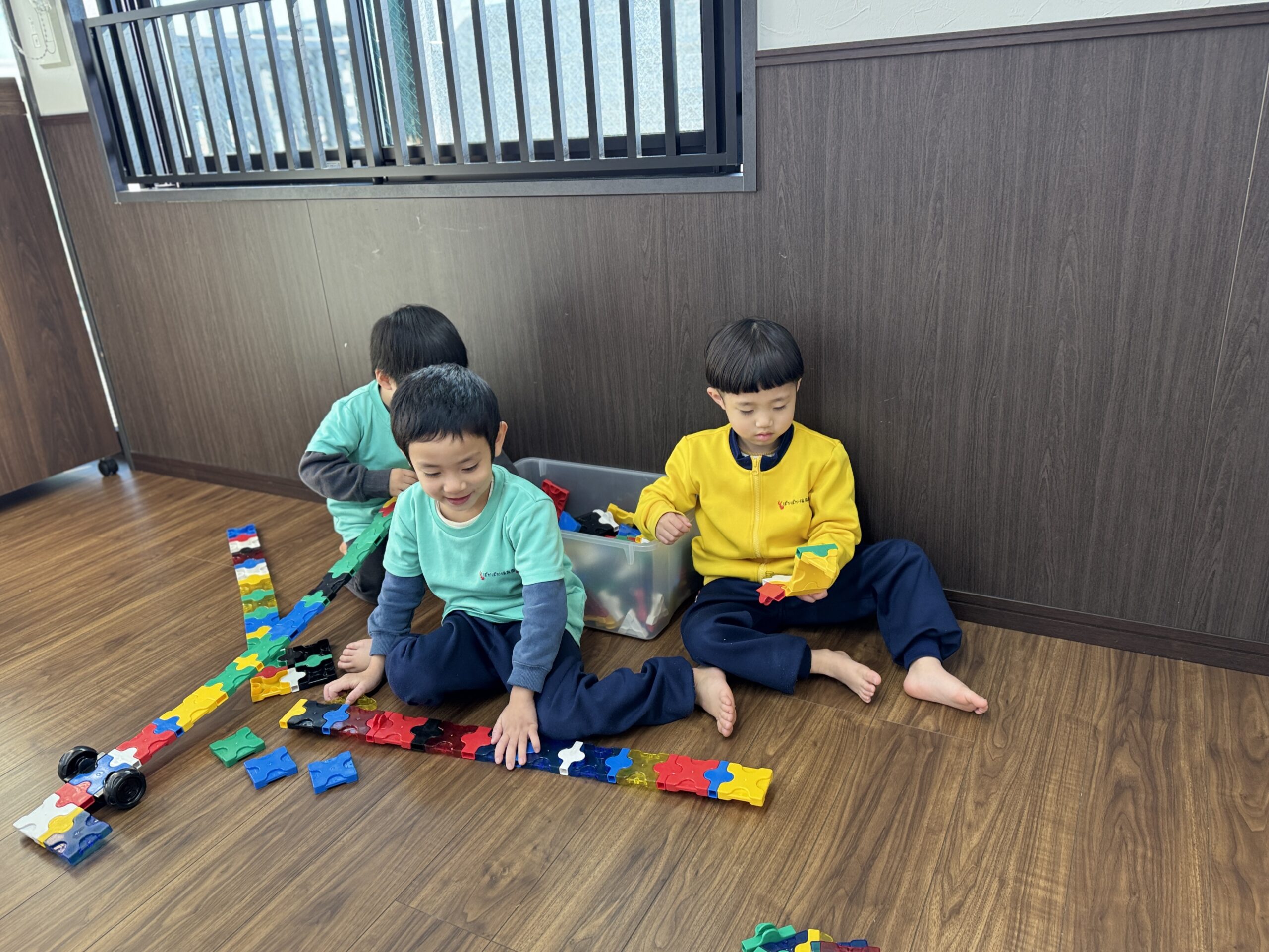 お部屋に戻った後は、仲良くつなげて掃除機を作りました!