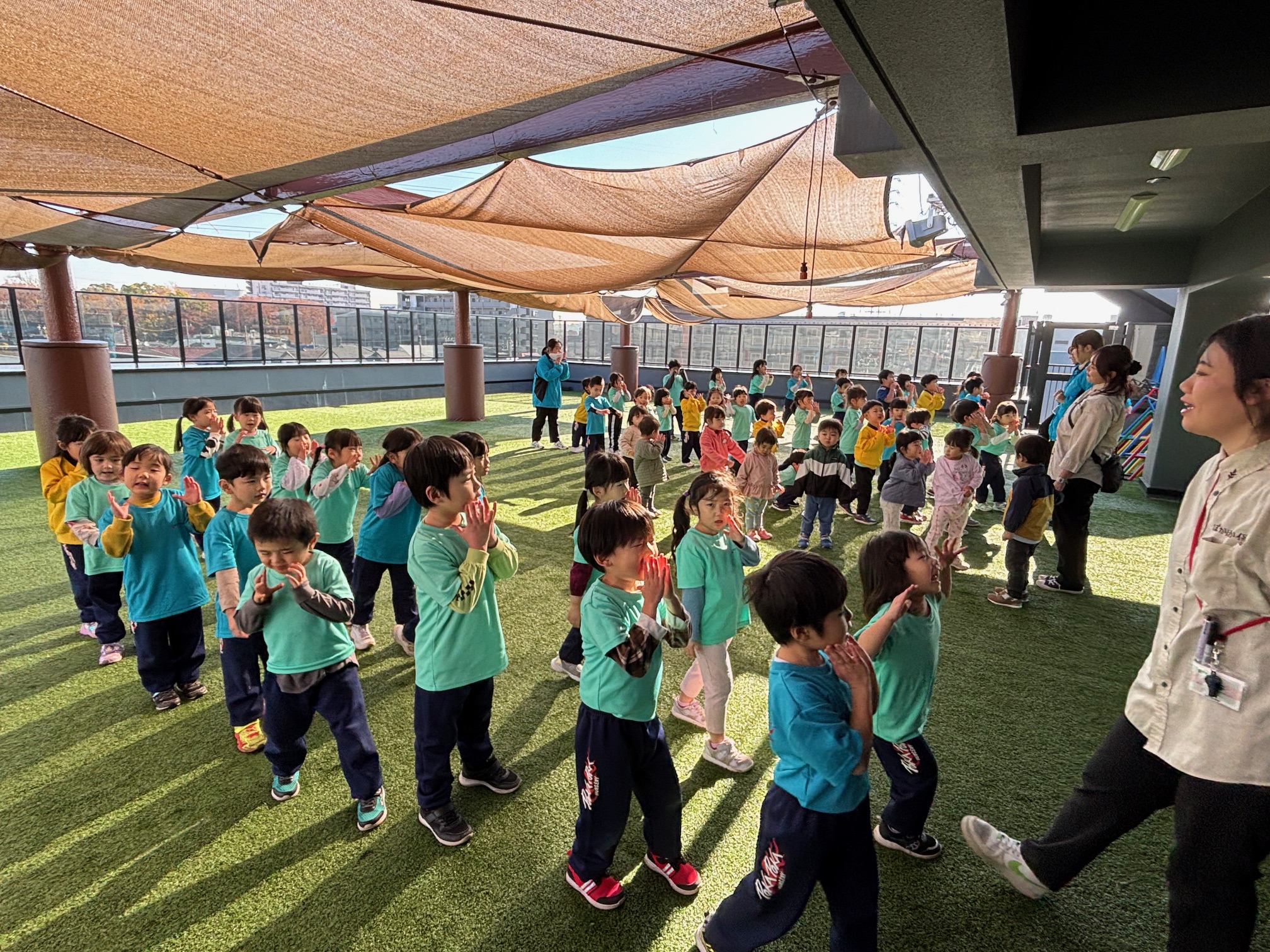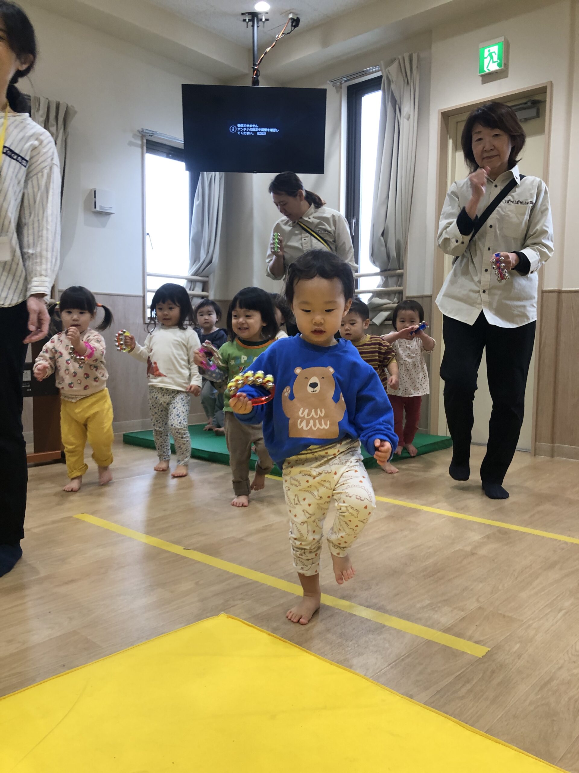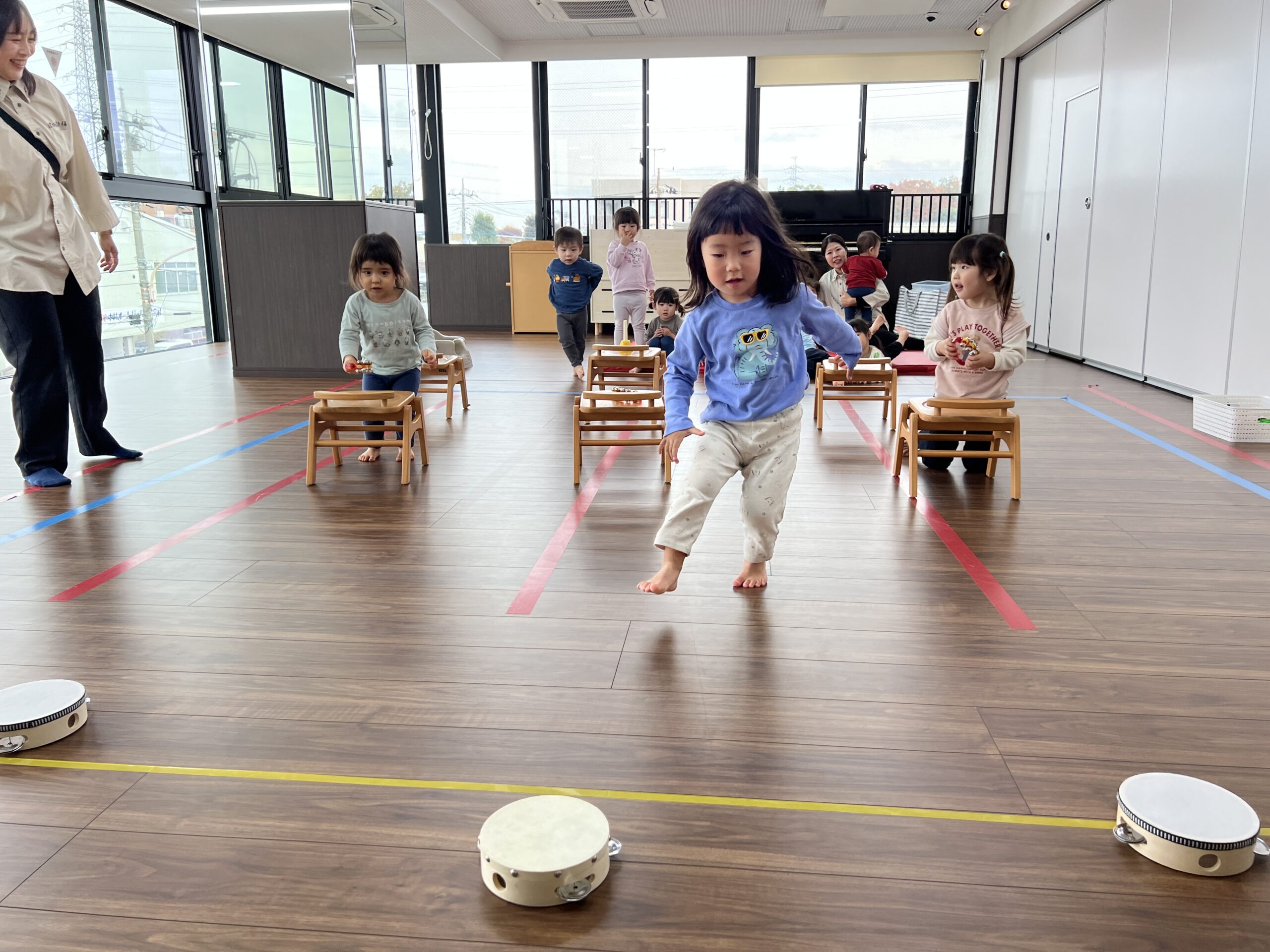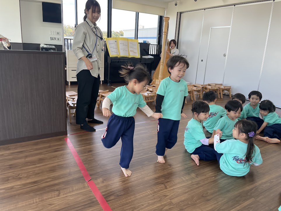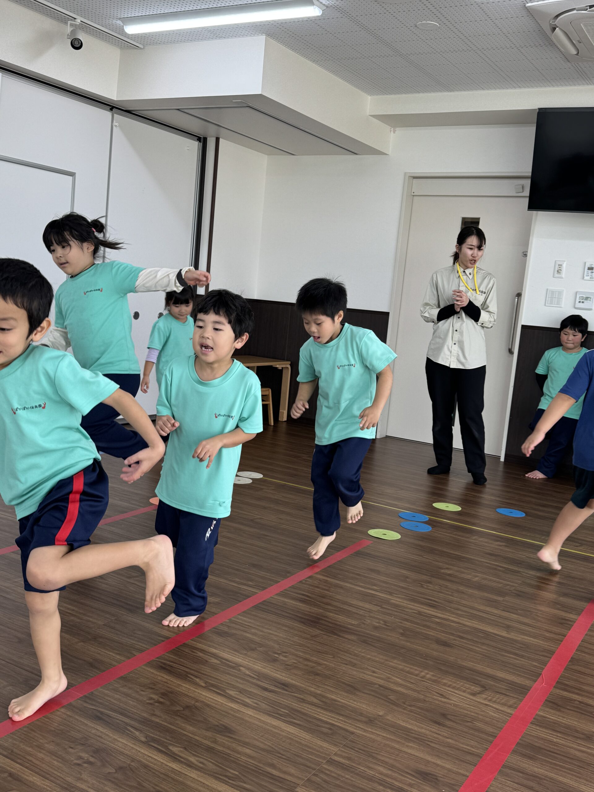 集中してチャイムの音に耳を傾け、お友達を向かいながら楽しくジャンプが出来ました!