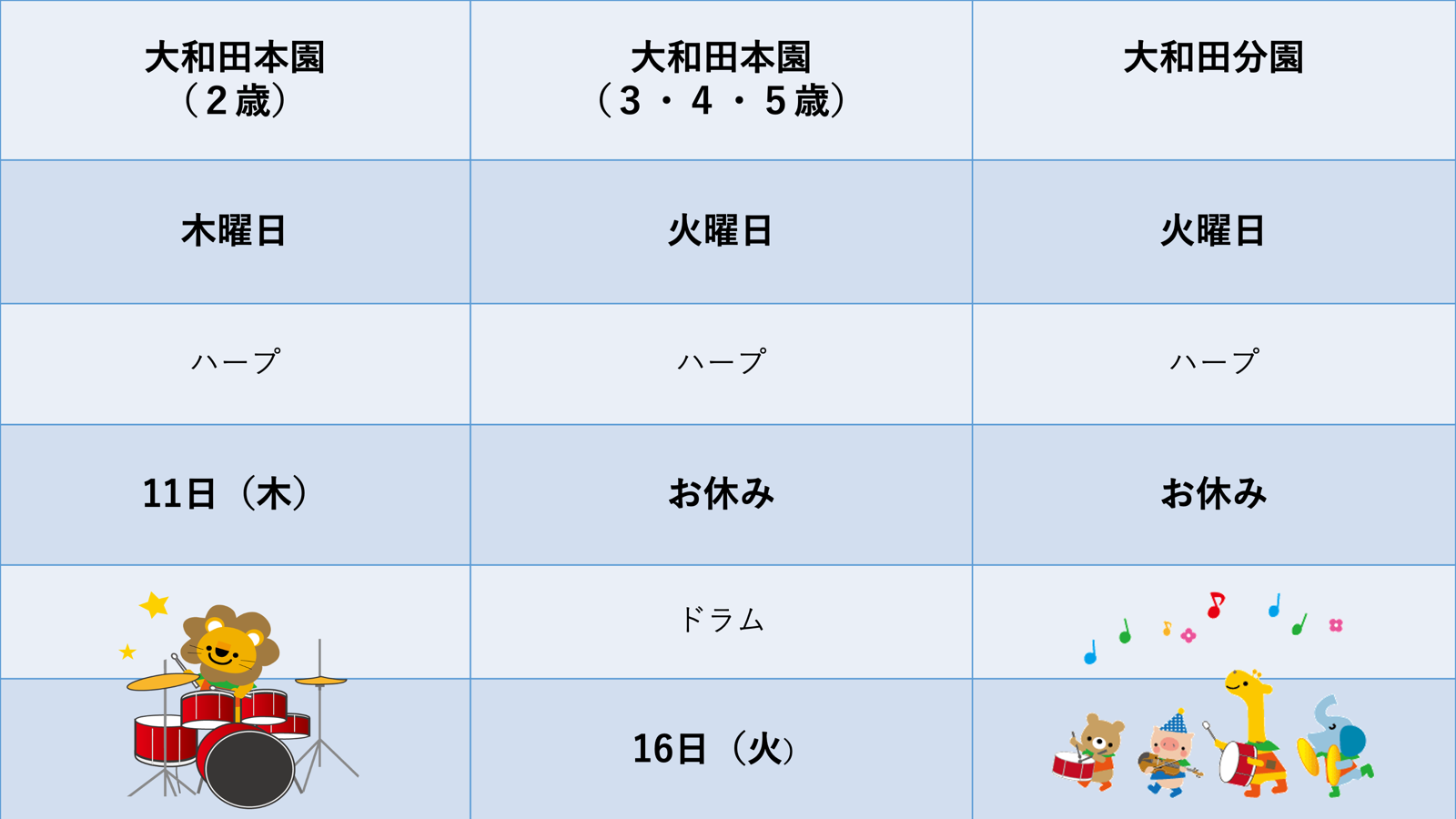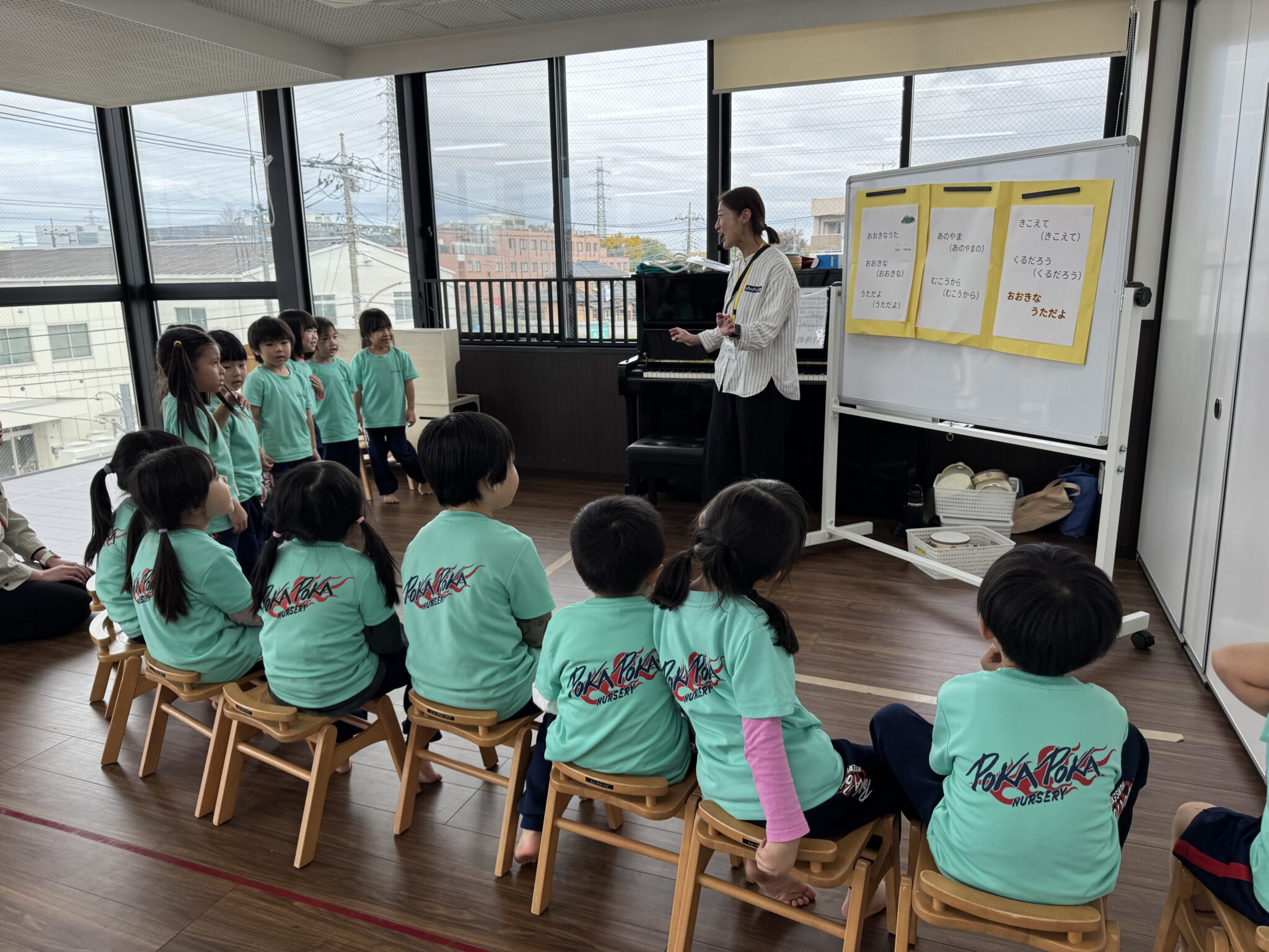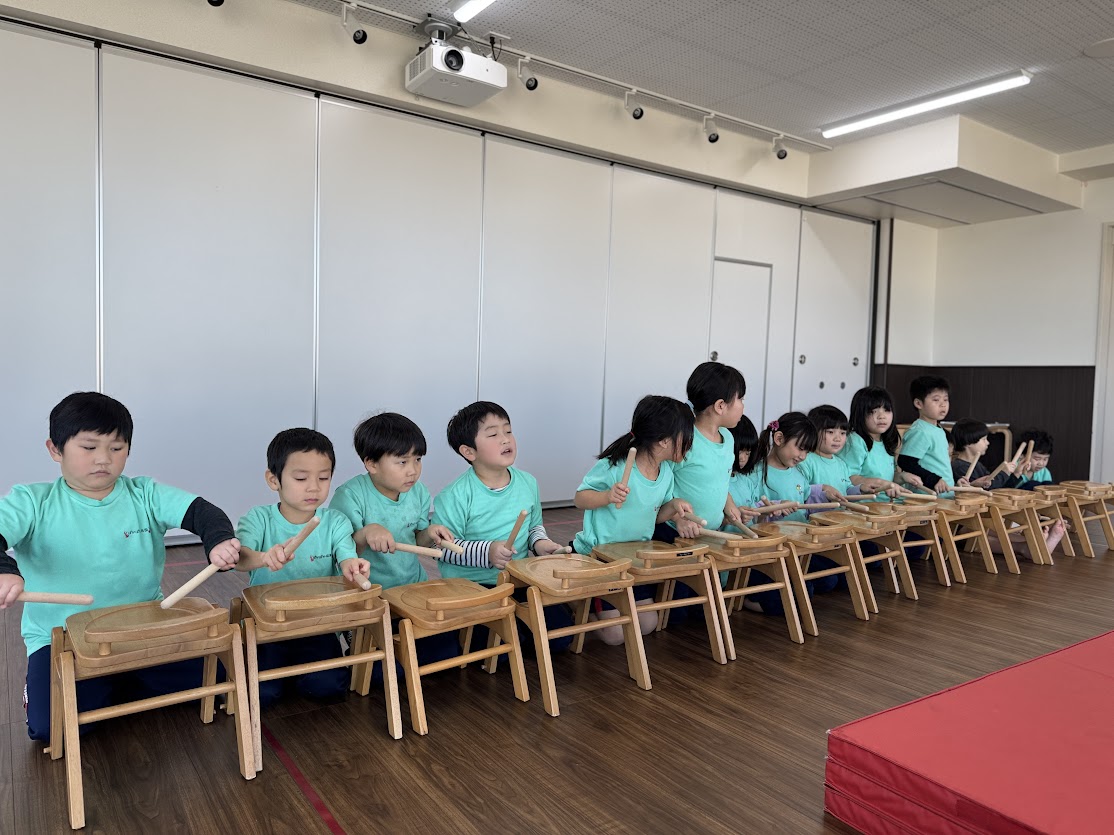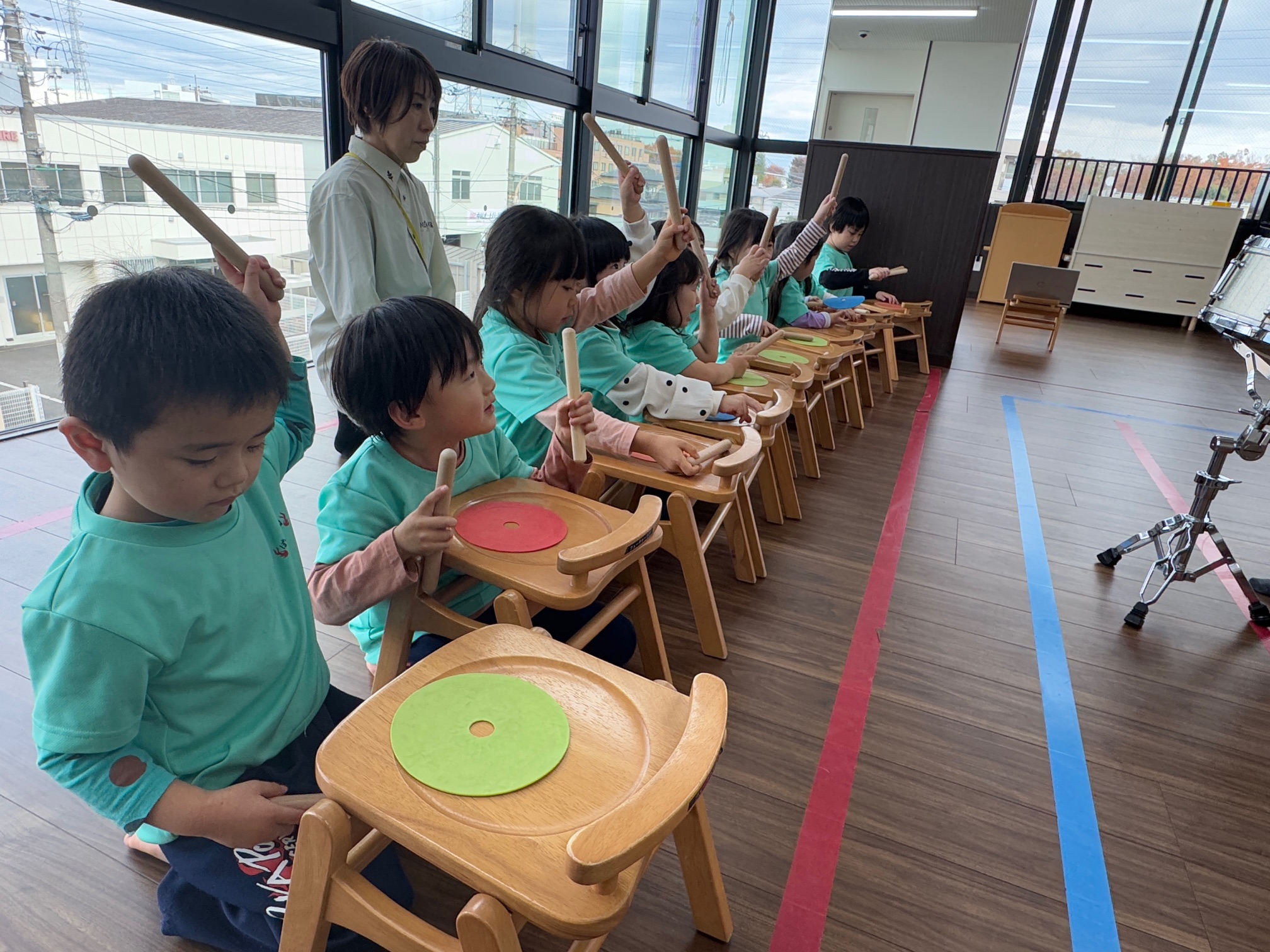 子ども達がリズムや音楽にも興味を持ち、さまざまな場面でトライし続けていく力を、今後もサポートしていけたらと思います。