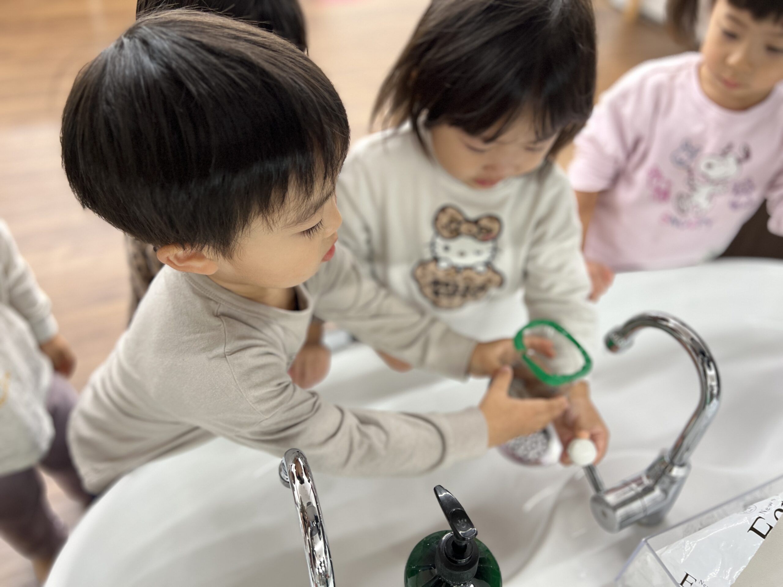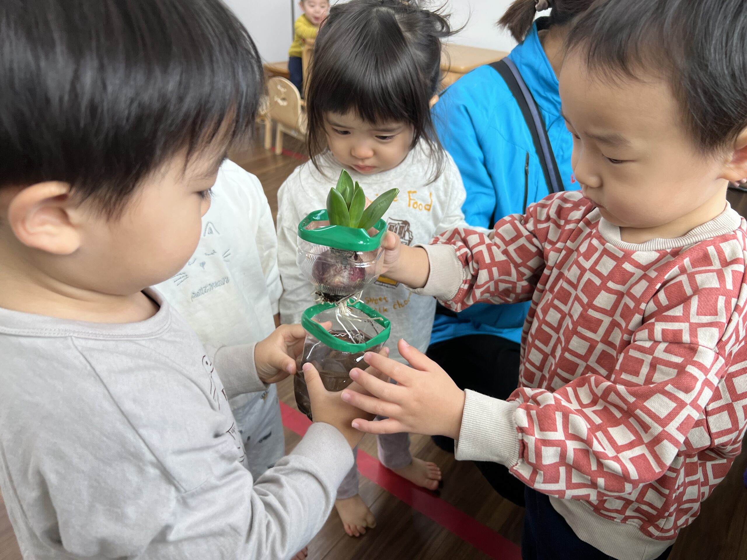朝はお部屋に飾ってあるヒヤシンスにお水をあげてくれた子どもたち♡