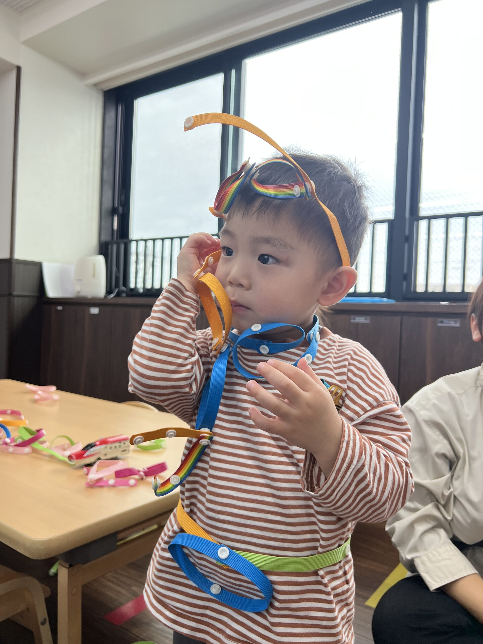 先生たちと一緒に、ネックレスやメガネを作りました👓