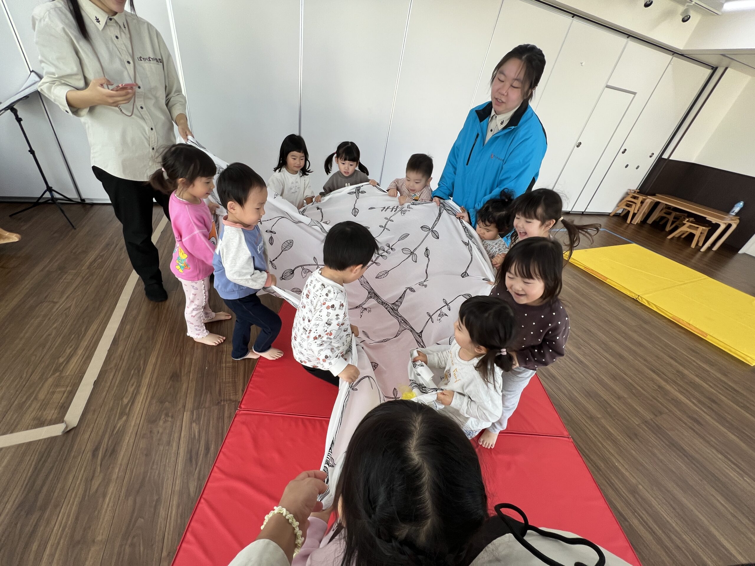 タンバリンをボウル、マラカスをたまごにして音と一緒にケーキ作りを楽しみました♡