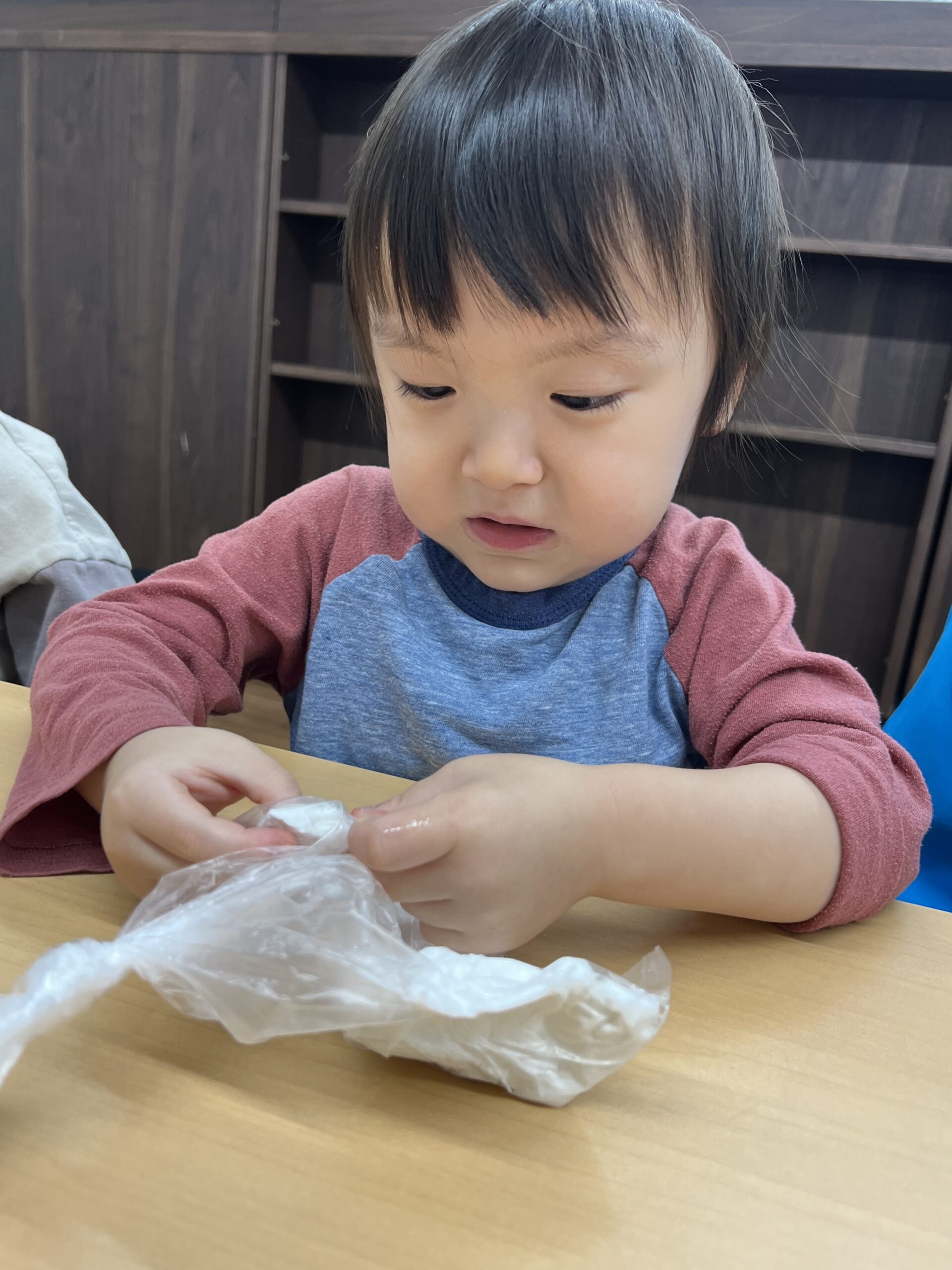 紙粘土・お水・ベビーオイルを袋に入れて~