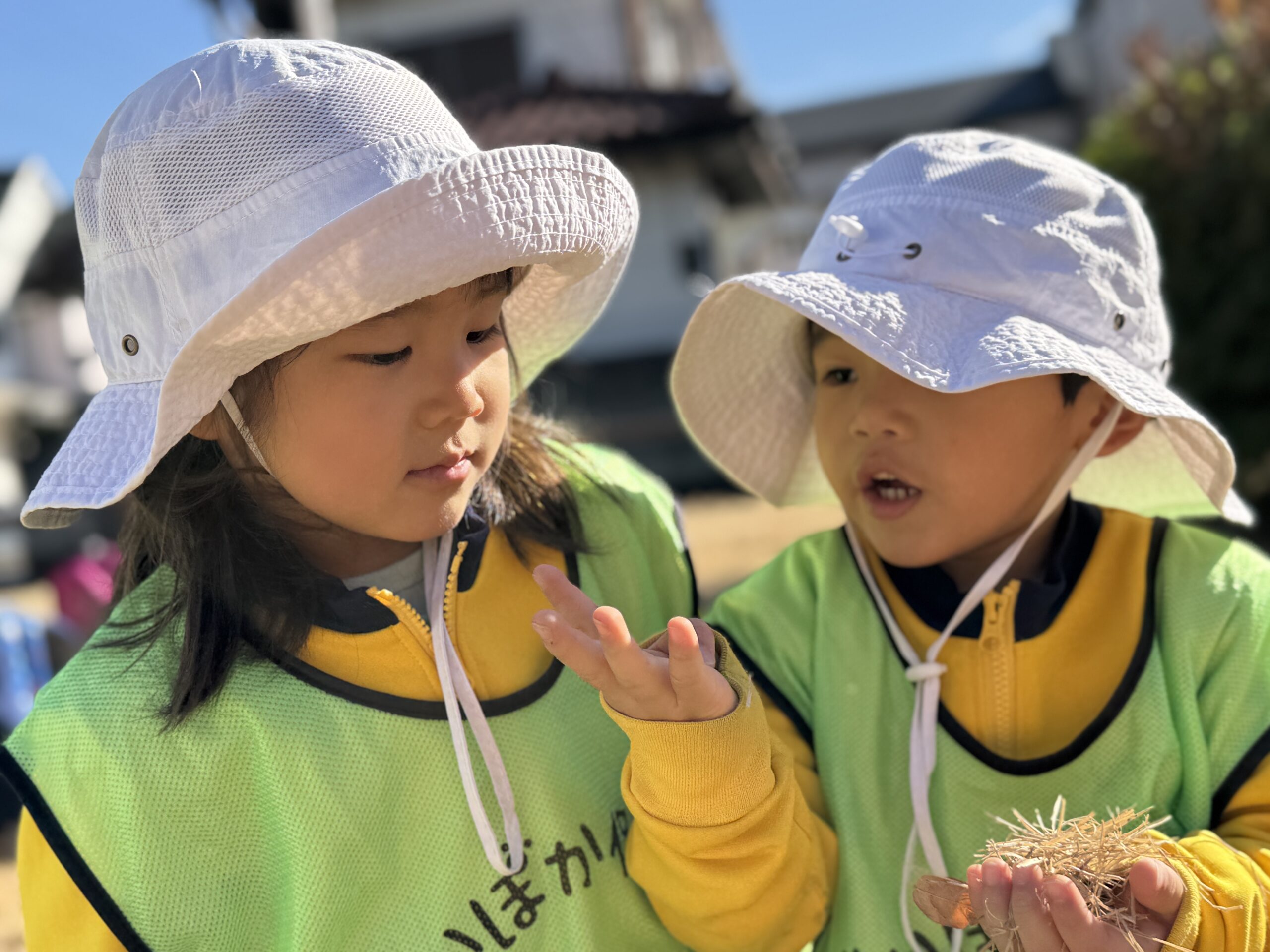 自然の中で想像力を働かせる遊びは子どもにとってとても大切なものですね。玩具がなくても遊びを発展させている姿がとても活き活きとしていて私たちもとても楽しい気持ちになりました♫