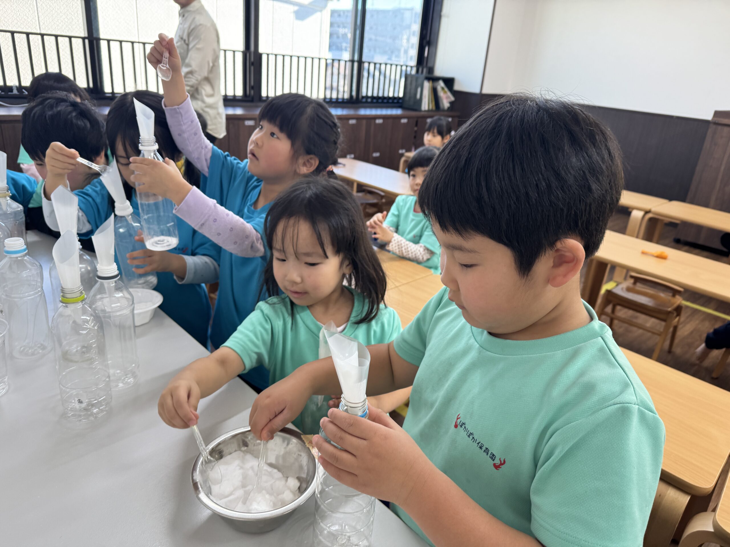 先生の話をしっかりと聞いて、友達と譲り合いながら実験を行うことができ、子ども一人一人の成長を感じることができました。