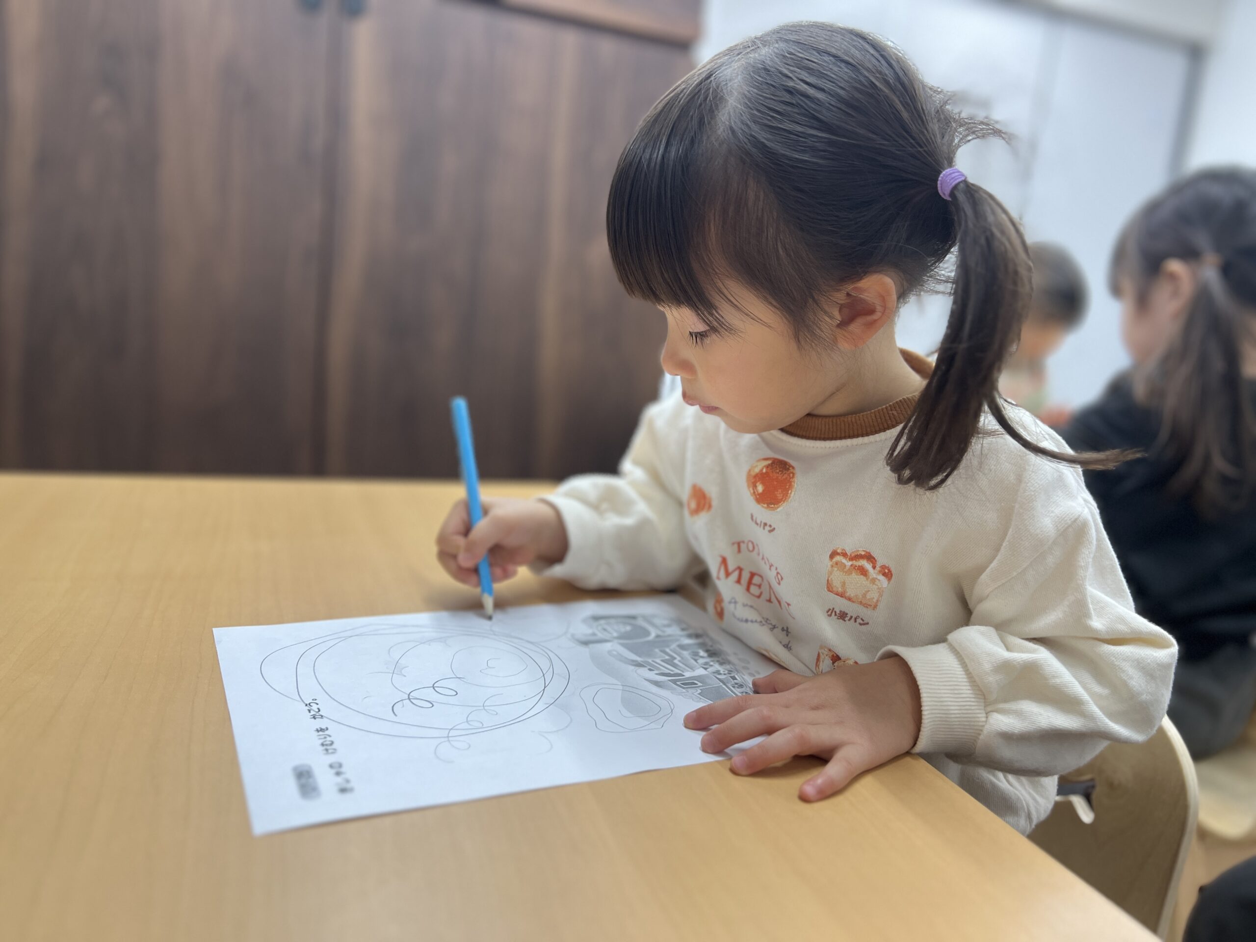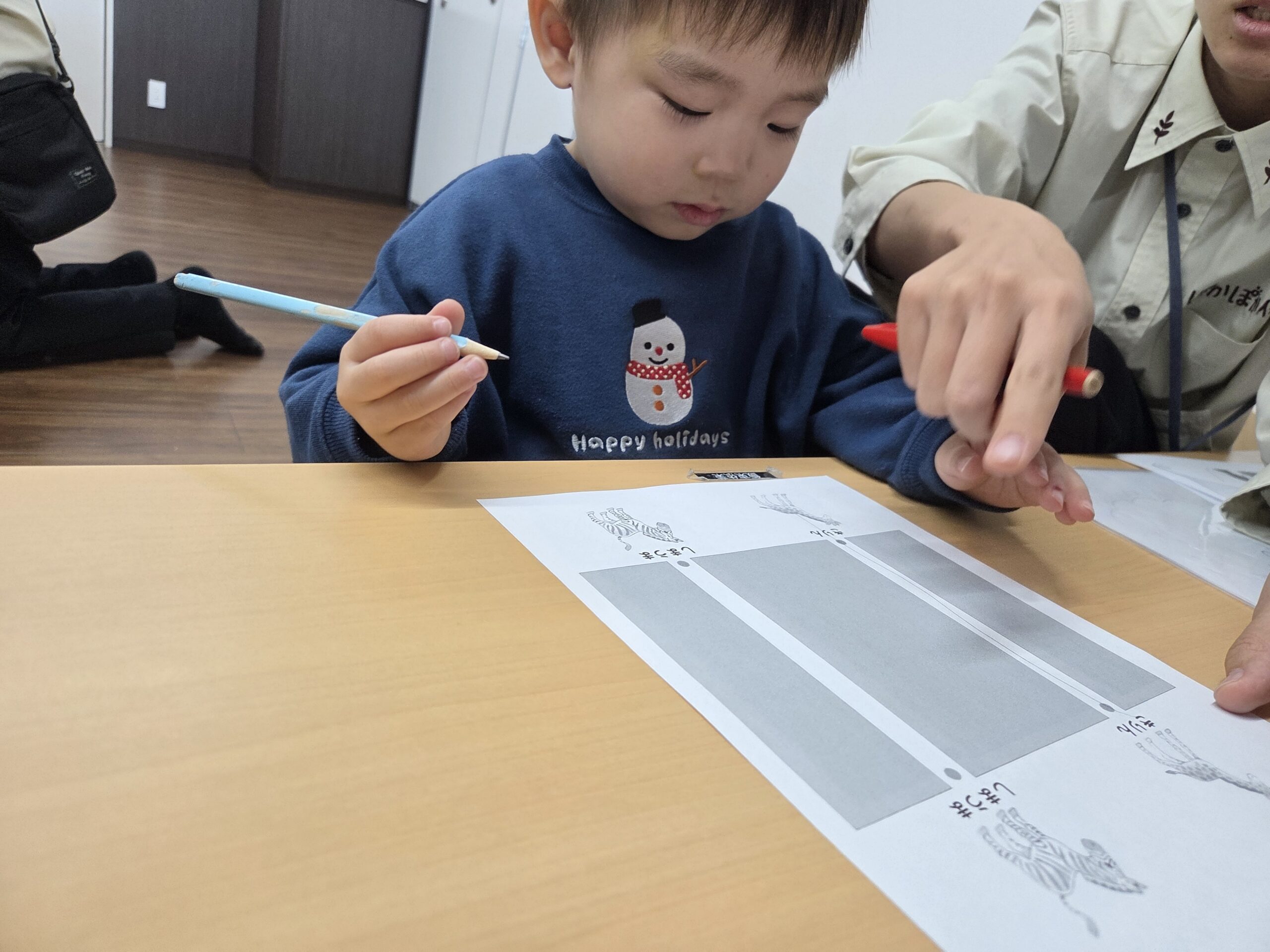 鉛筆でなぞったり書いたり、クレヨンで塗ったり楽しそう~
