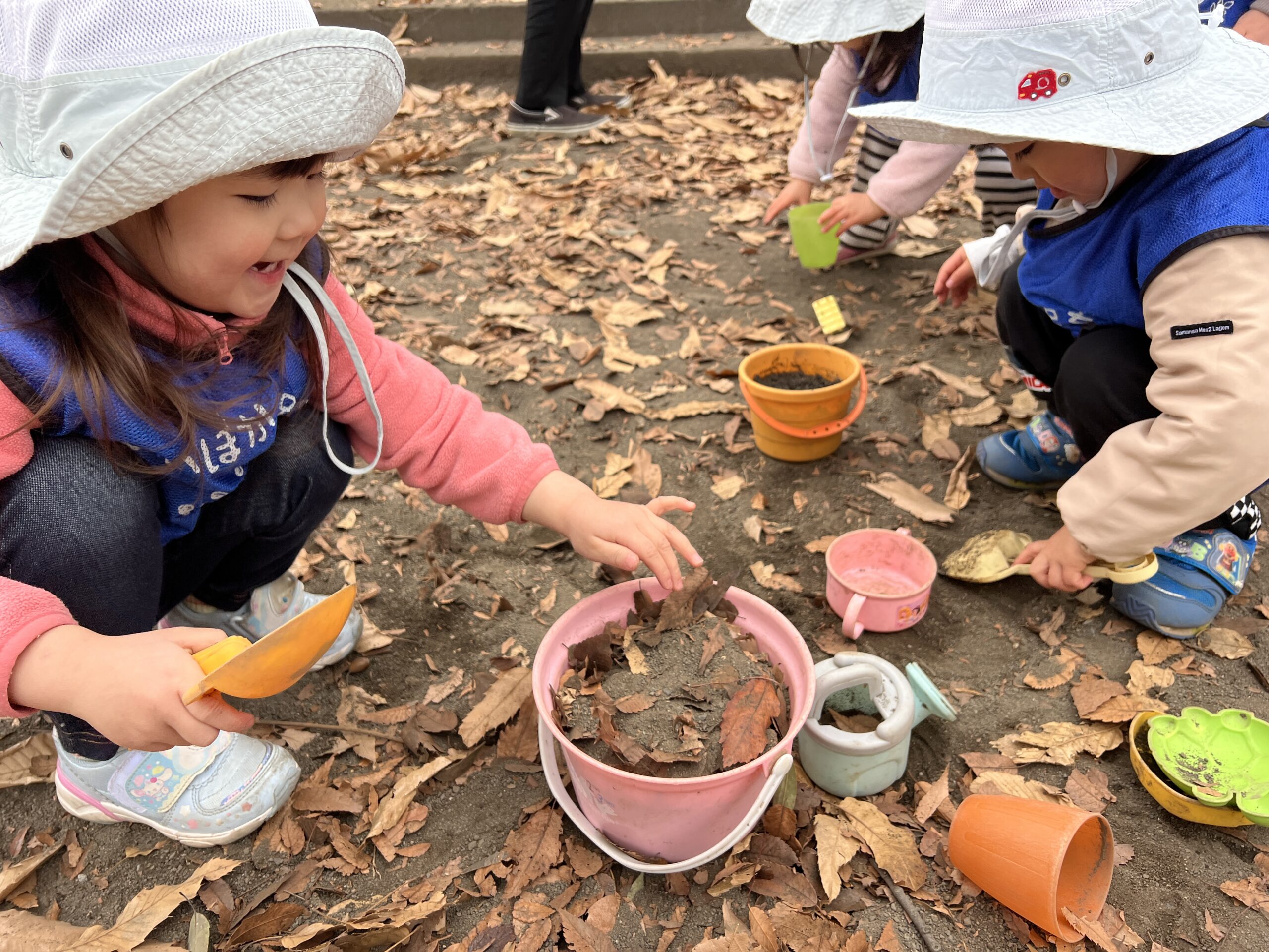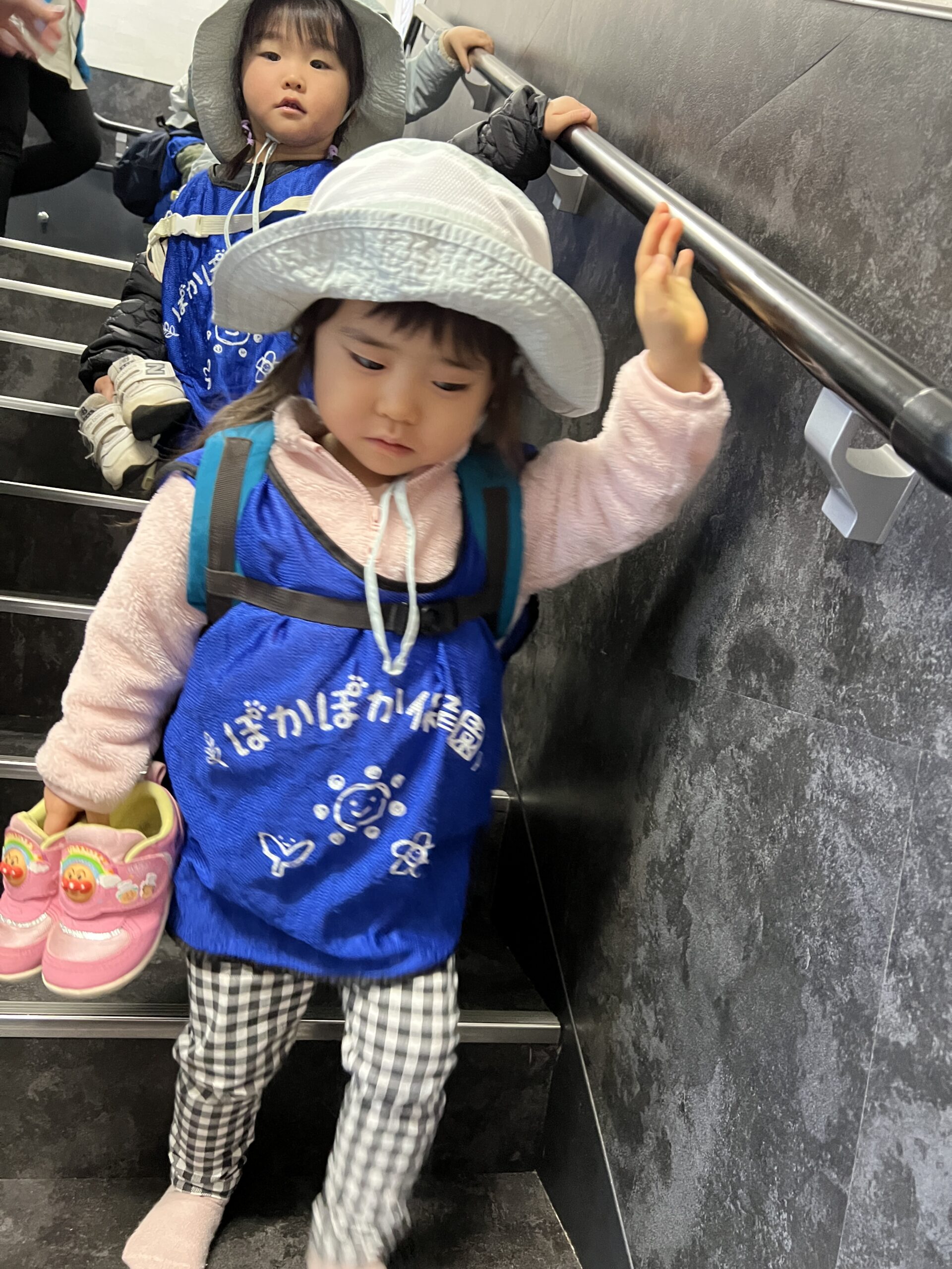 今日はおにいさんおねえさんと同じようにリュックに水筒を入れて、みんなで背負って行きました!