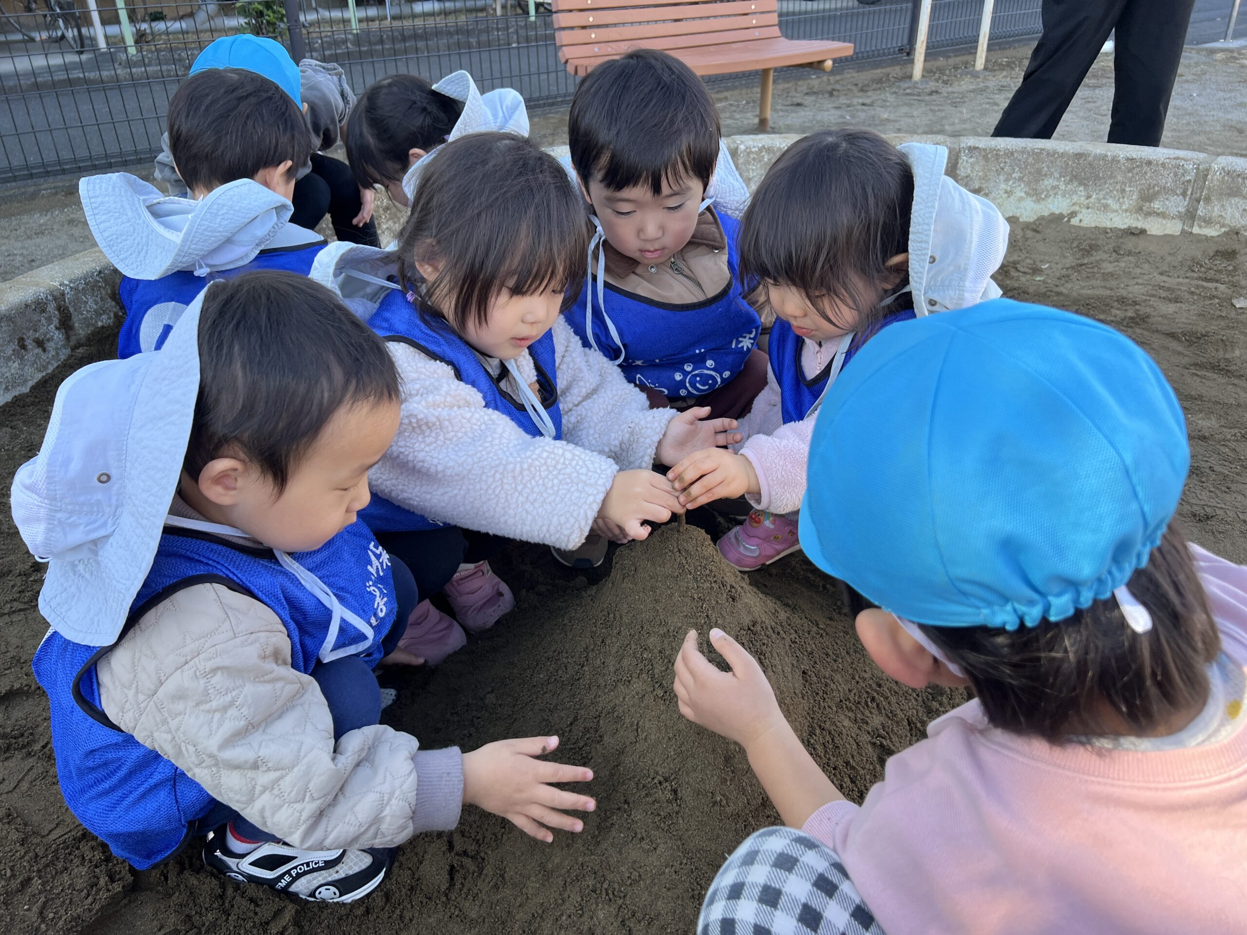 お砂場遊びも楽しいね!倒したら負けゲームかな?