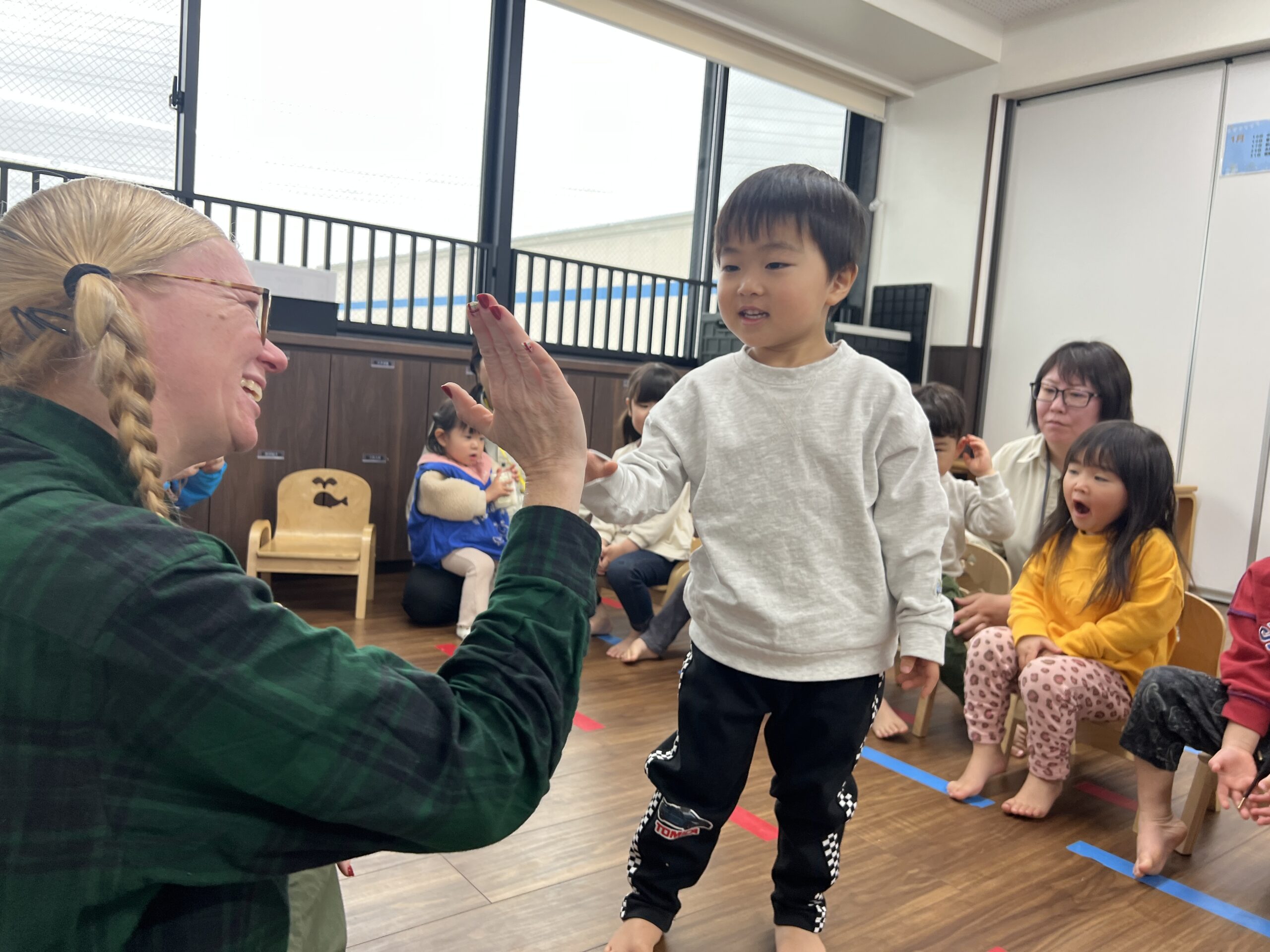 上手に出来たらハイタッチ!