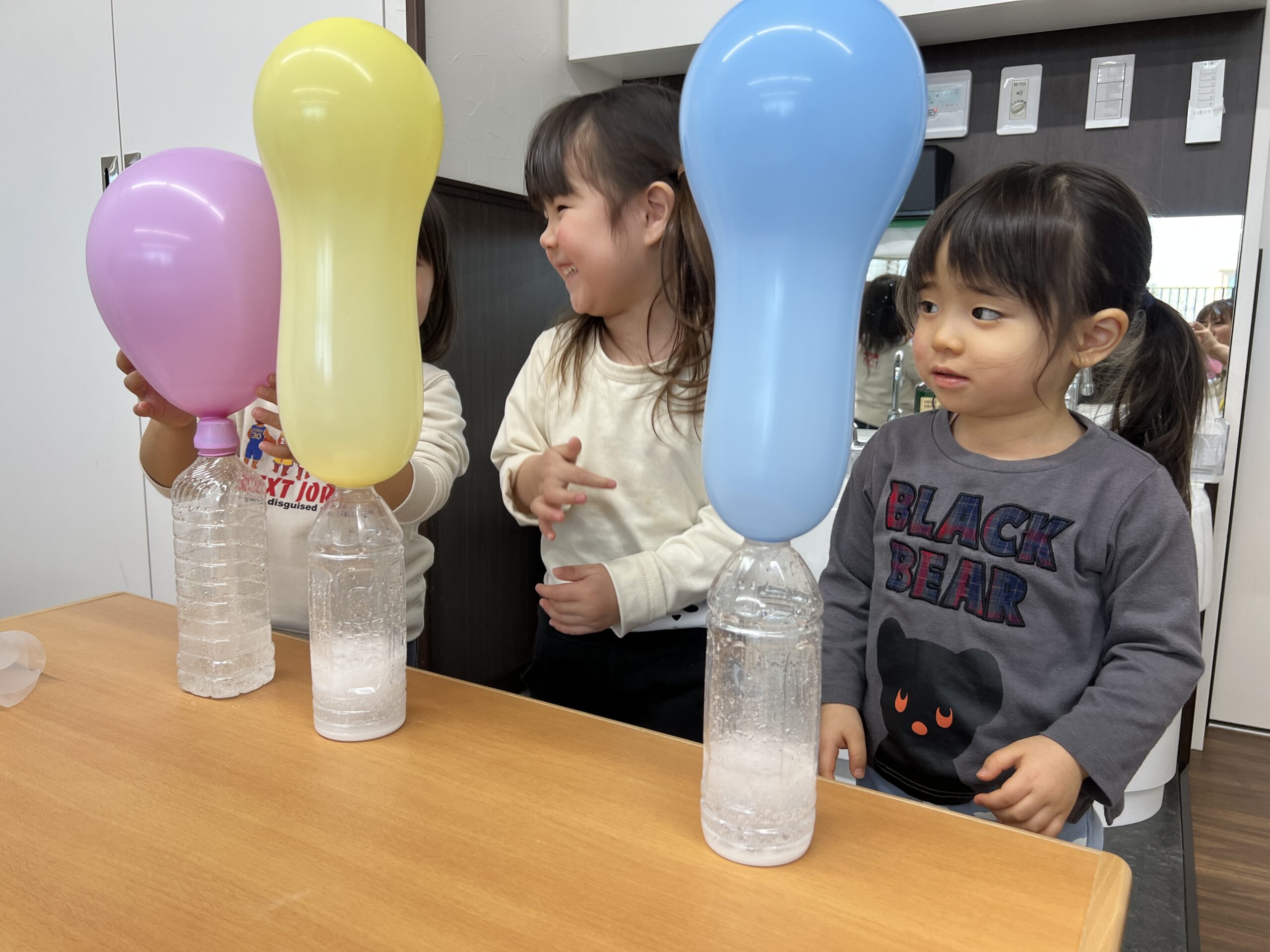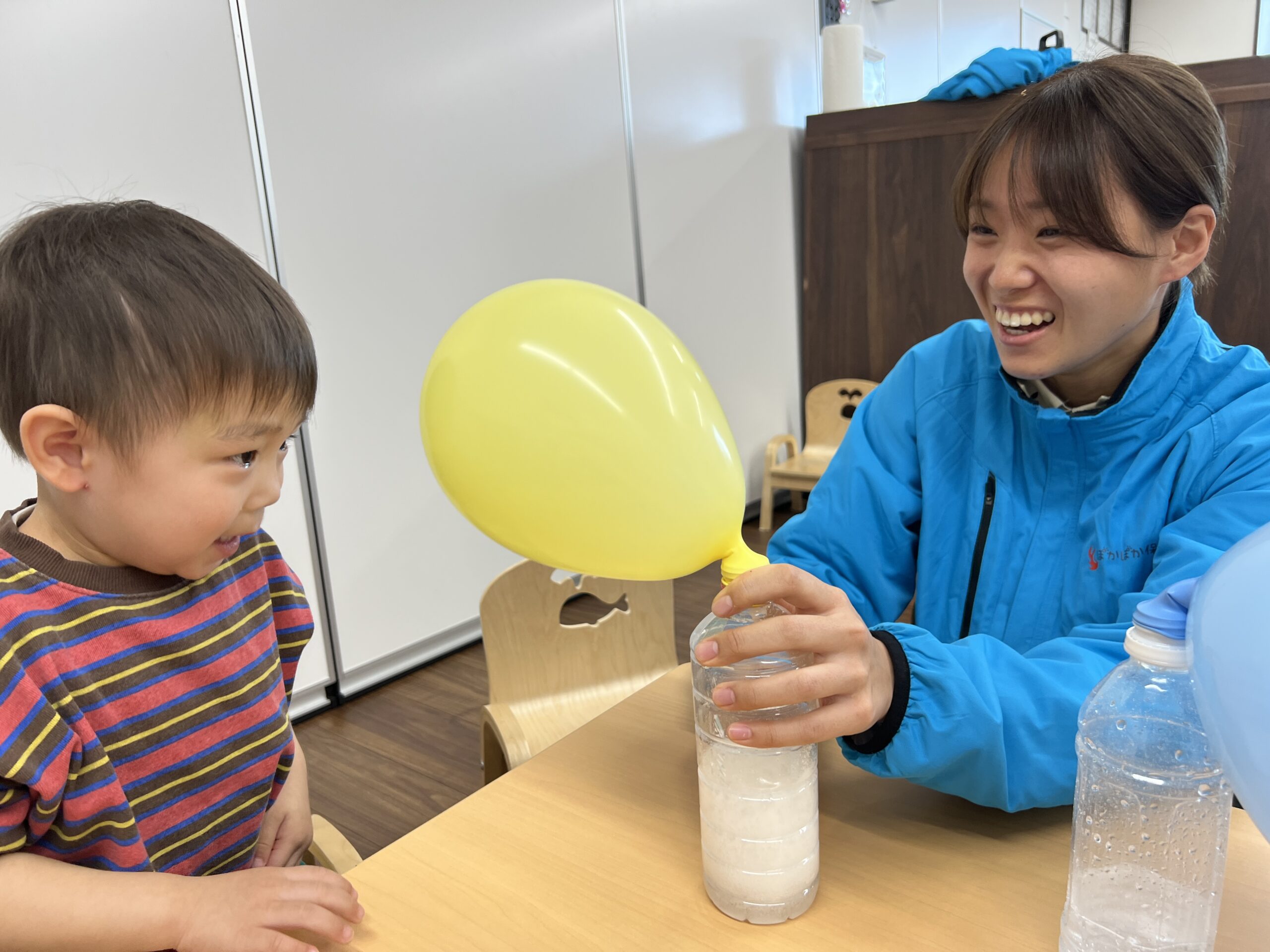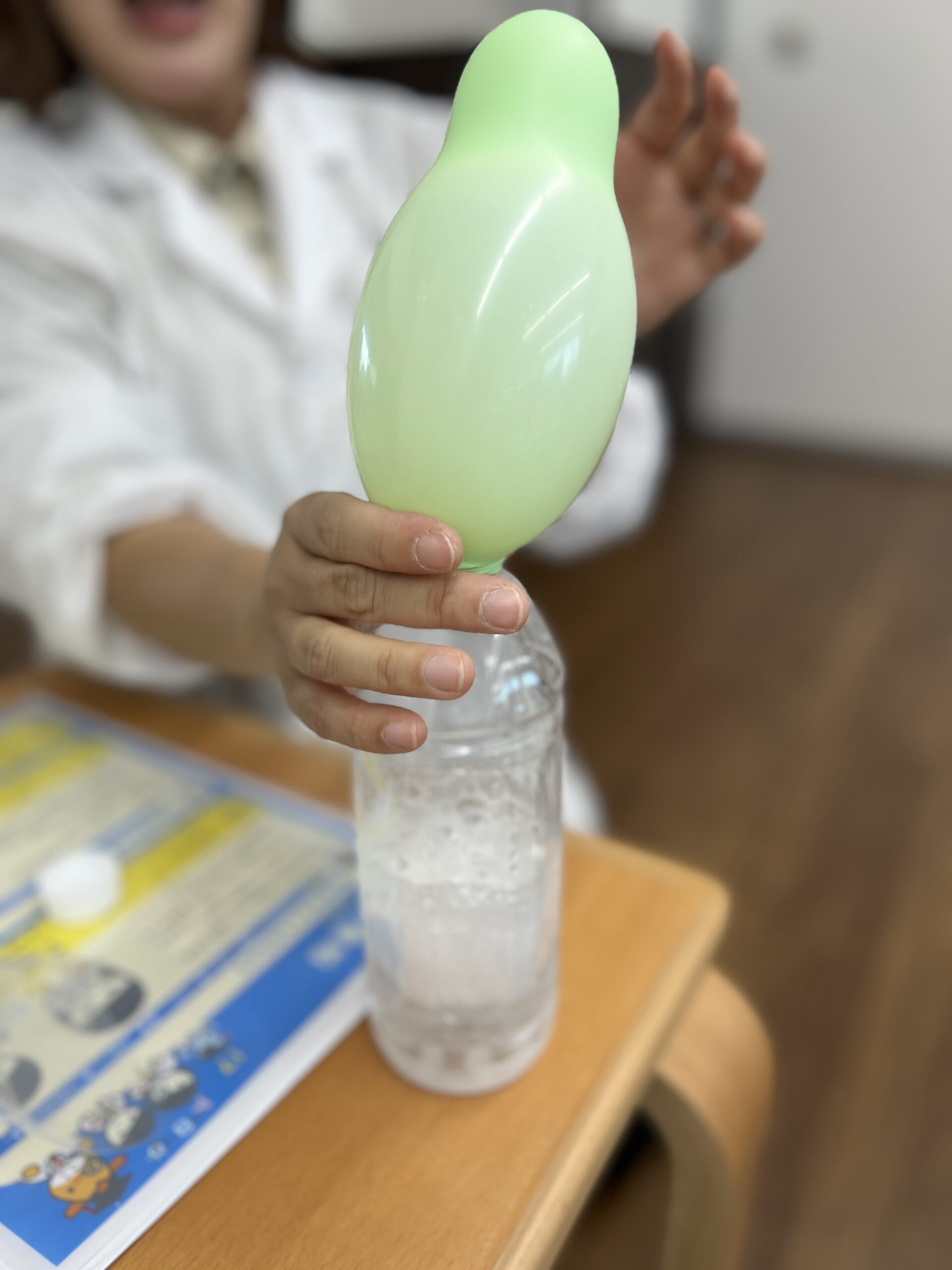 気体が発生して、風船が膨らむという実験でした!
