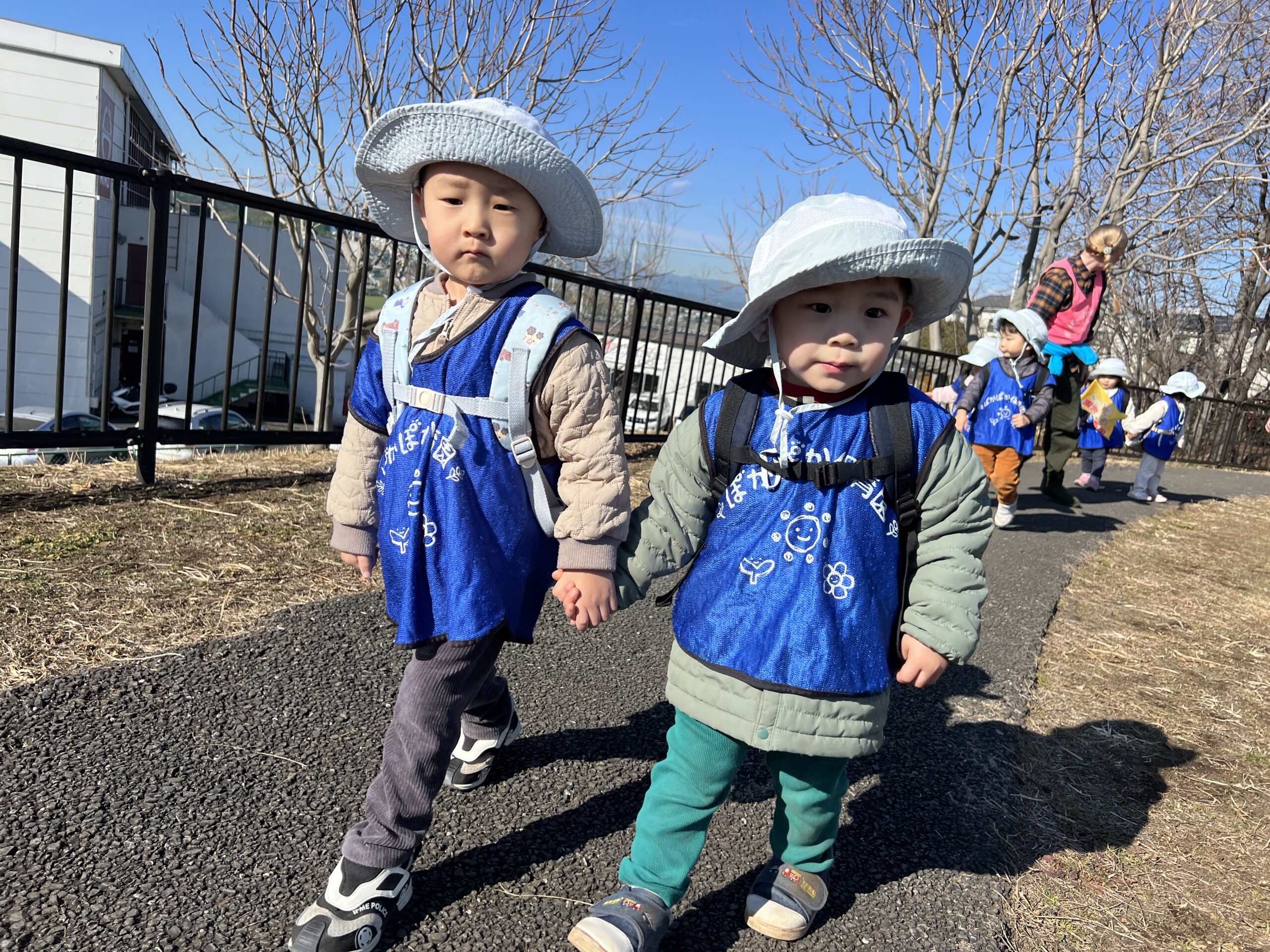 今日はおにいさんおねえさんと同じようにリュックに水筒を入れて、みんなで背負って行きました!