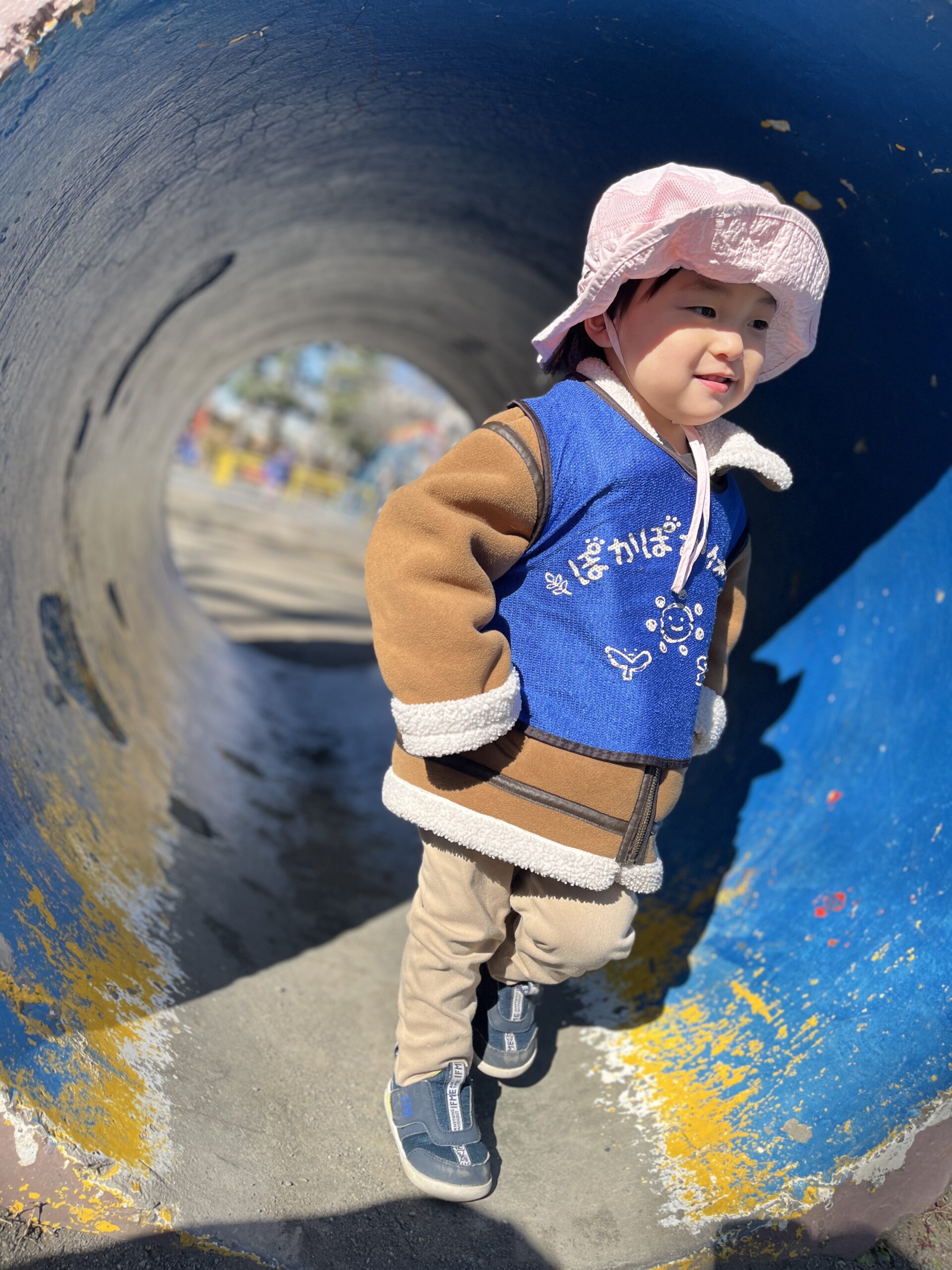 公園ではトンネルをワーッと駆け抜けたり、トンネルの上をそっと歩いたりチャレンジ精神がいっぱい。